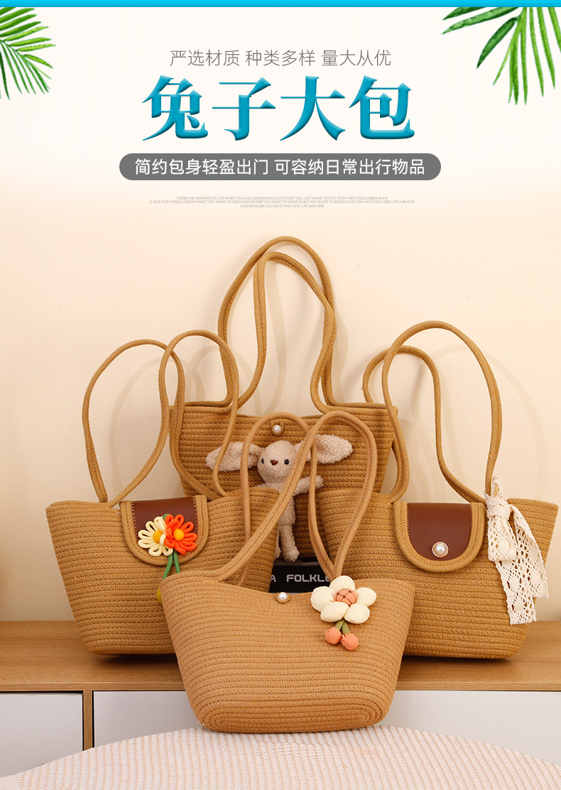 해변 휴가 밀짚 가방, 여성용 세련되고 인기 있는 토트백, 2025년 신상 해변 직조 대용량 숄더백