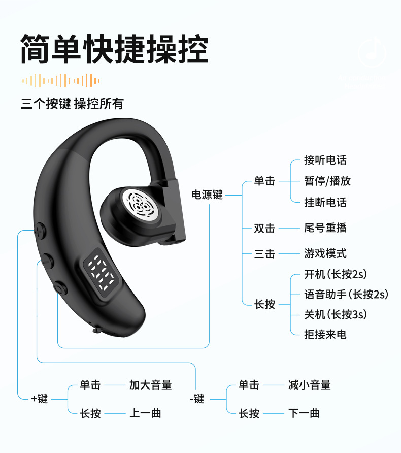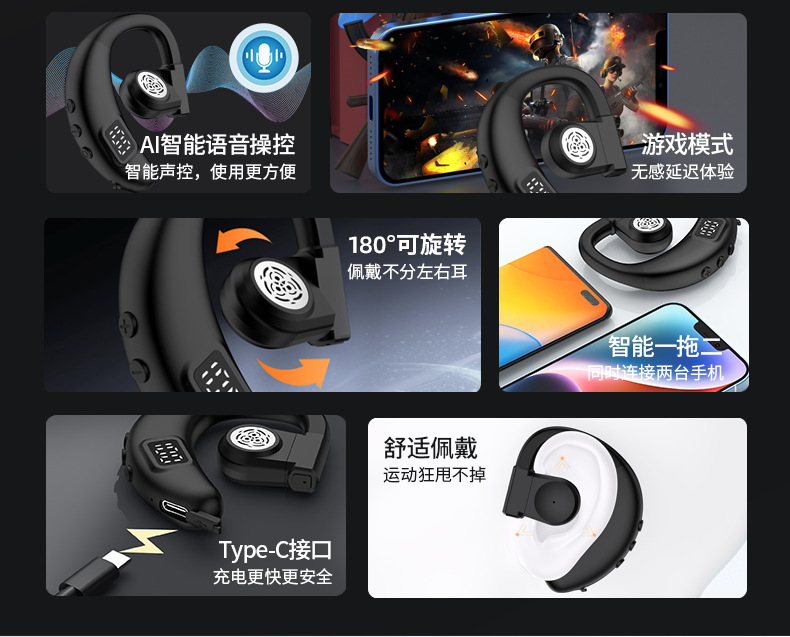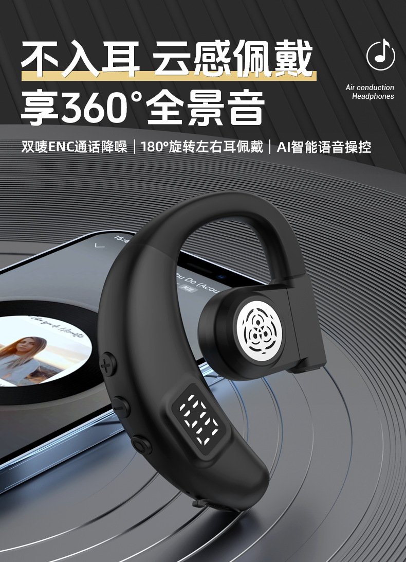 I6 새로운 블루투스 헤드셋 단일 귀 귀 OWS 귀걸이 헤드셋 디지털 디스플레이 스포츠 회전 가능한 비즈니스 도매