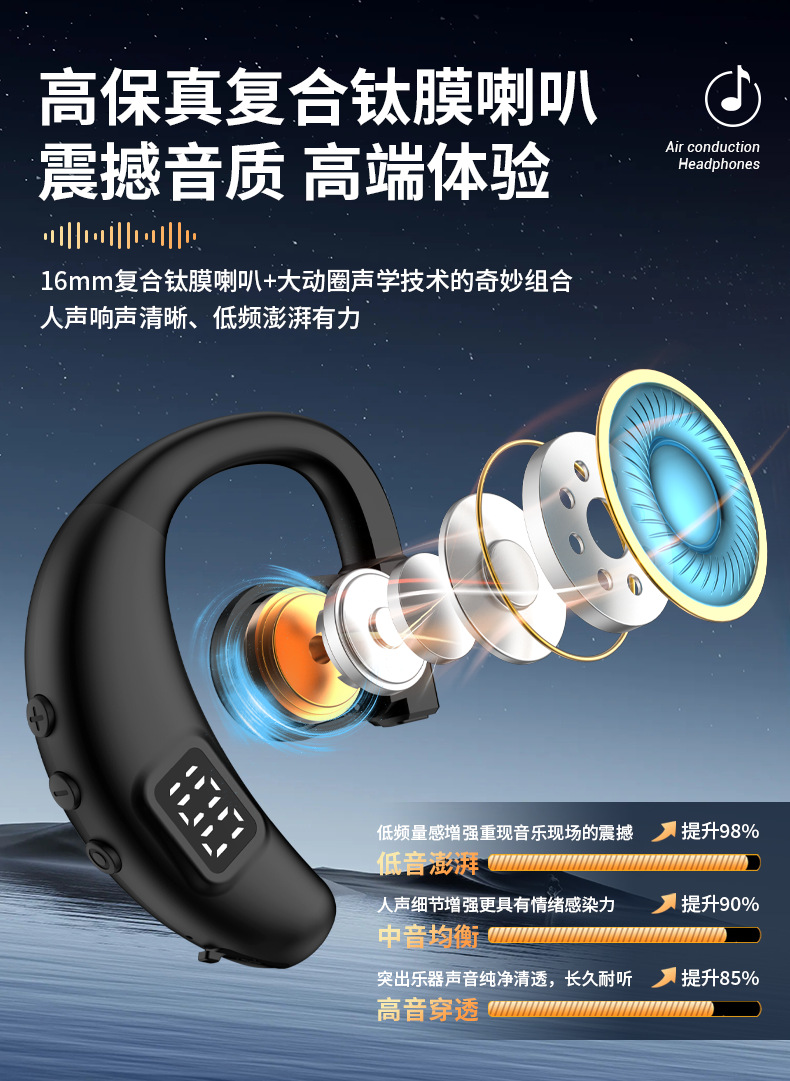 I6 새로운 블루투스 헤드셋 단일 귀 귀 OWS 귀걸이 헤드셋 디지털 디스플레이 스포츠 회전 가능한 비즈니스 도매스토어 가기