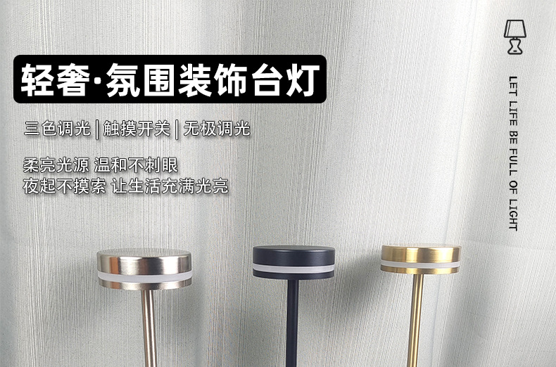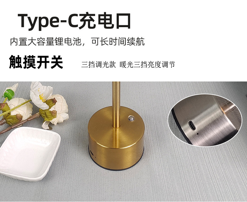 국경 간 뜨거운 판매 무선 터치 LED 충전 대기 테이블 램프 바 청바 레스토랑 간단한 금속 장식 테이블 램프