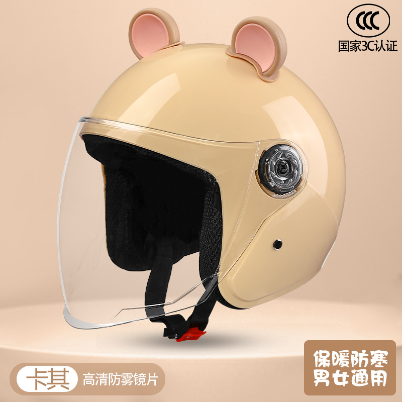 [해외 무역] 전기 자전거 헬멧 여성용 겨울 보온 방한 사계절 오토바이 남성용 두꺼운 안전모