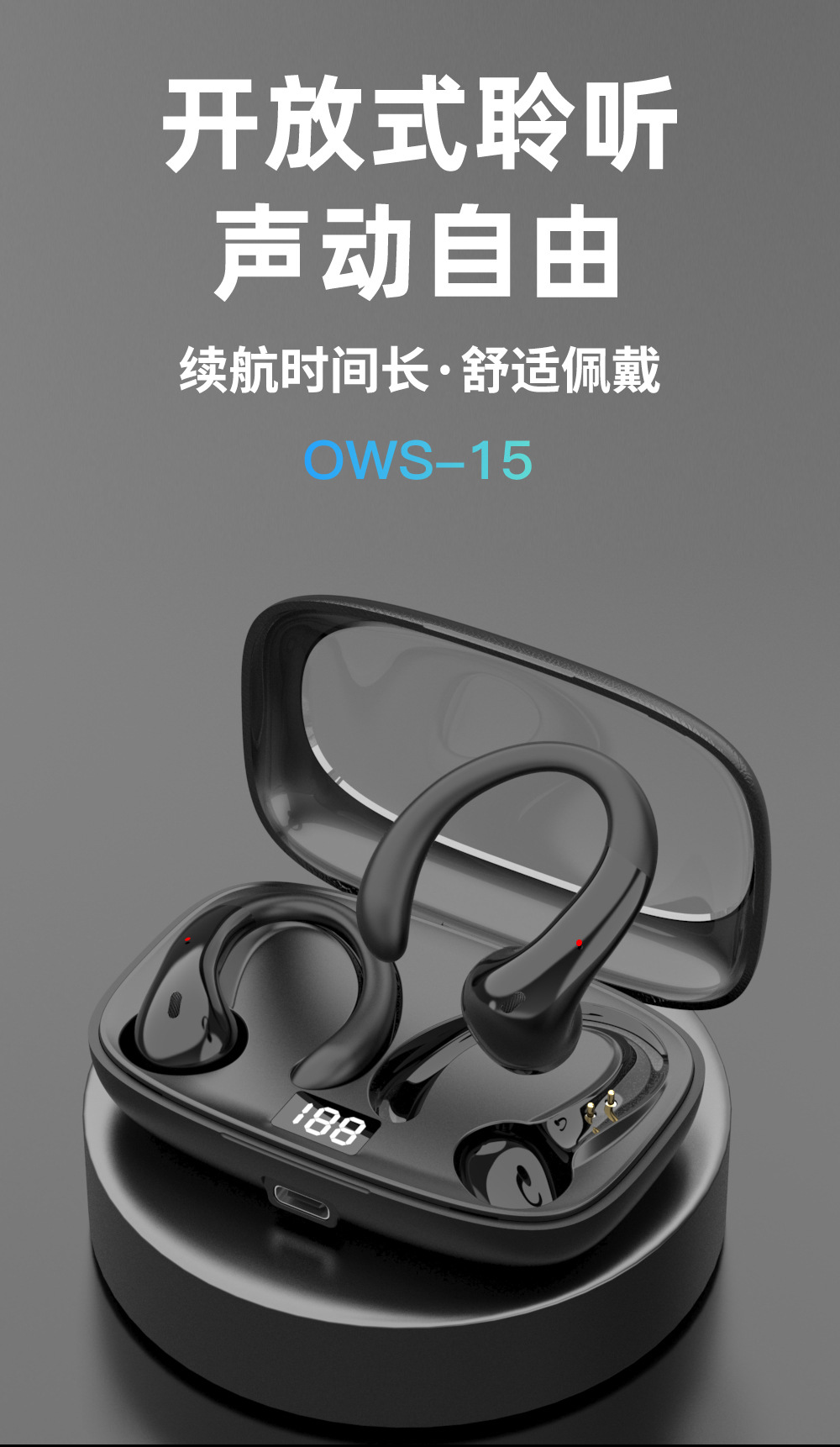 OWS-15 무선 블루투스 헤드셋 귀 매달려 헤드셋 블루투스 유니버설 스마트 터치 장수 도매