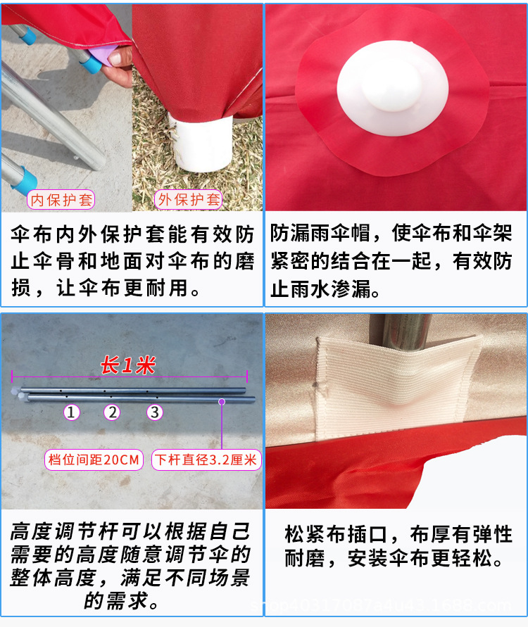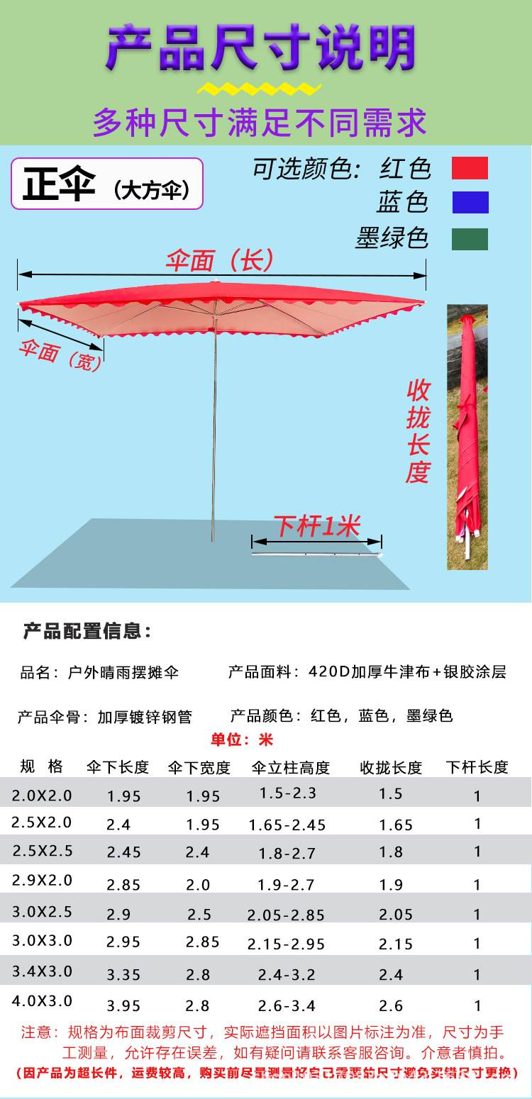 길거리 판매용 직사각형 파라솔, 긴 손잡이 야외 특대형 차양막, 노점용 특수 자외선 차단 우산