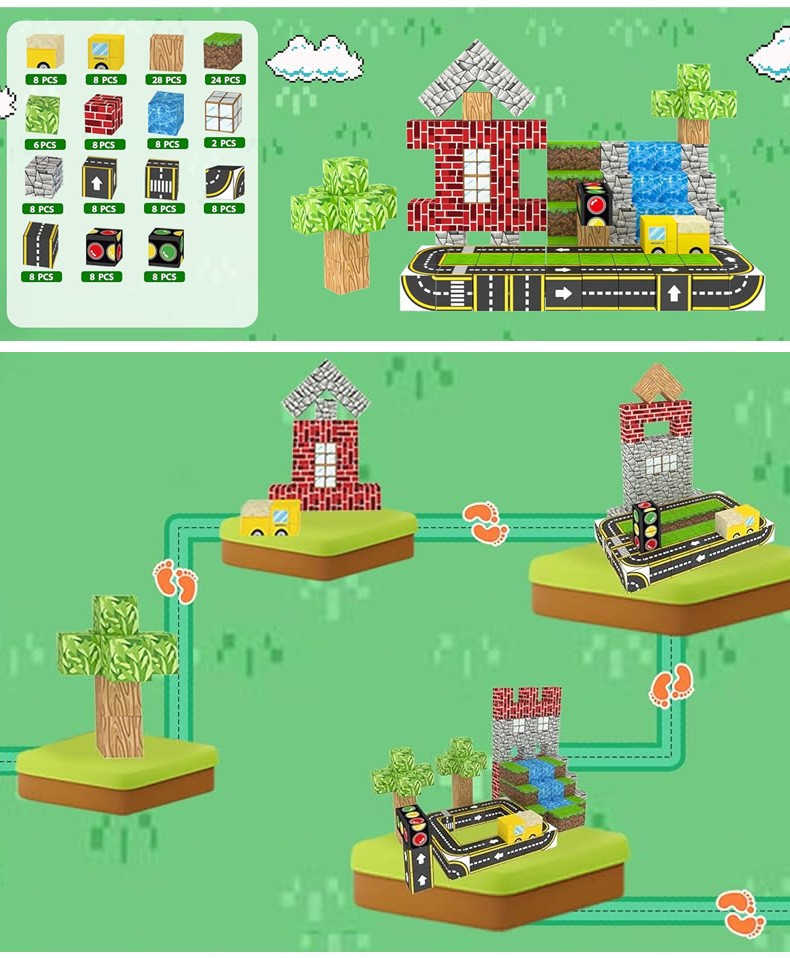 국경 간 자기 블록 빌딩 블록 자석 자기 블록 어린이 교육 숲 도로 장난감 빌딩 세트 세계스토어 가기