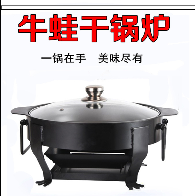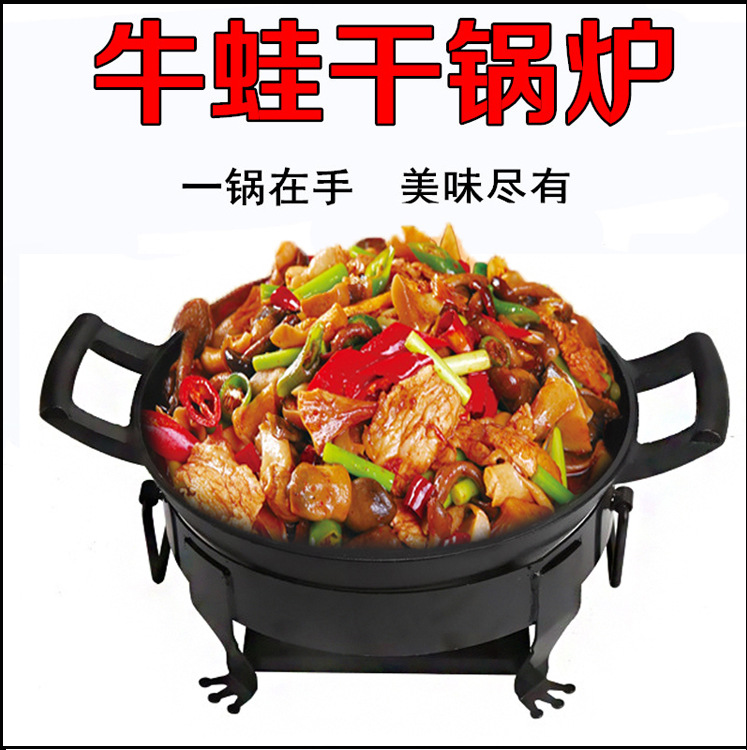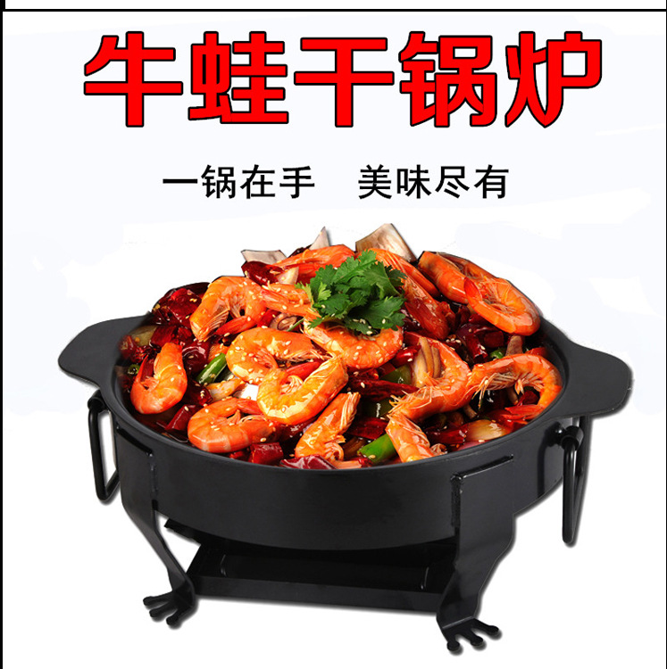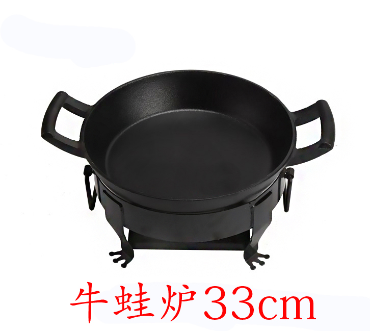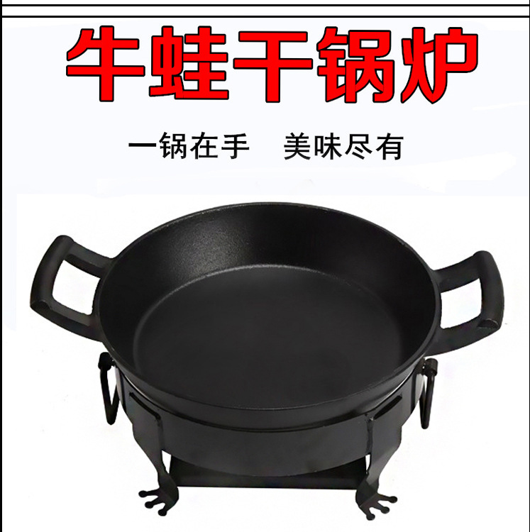 주철 둥근 생선 구이 스토브 불개구리 마른 냄비 오븐 왕새우 드라이 포트 개구리 발 냄비 레스토랑 드라이 팟 해산물 건조 보일러