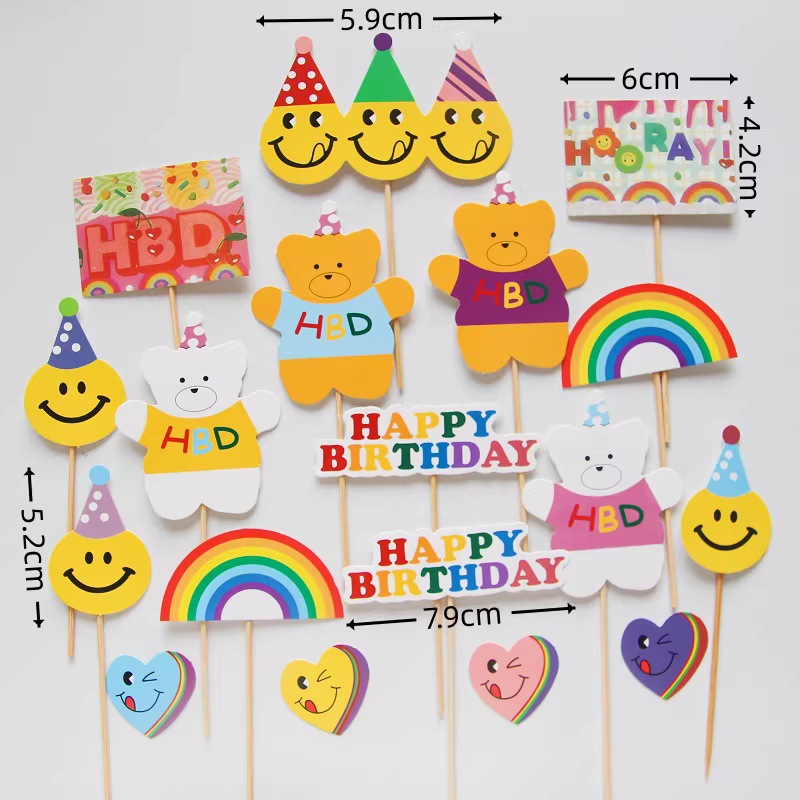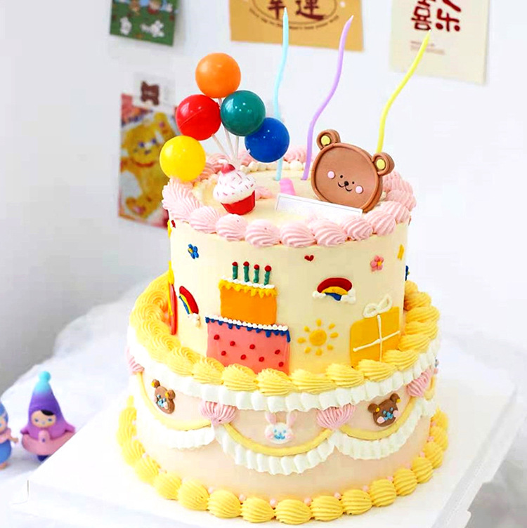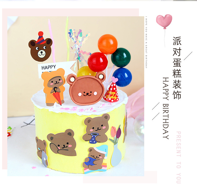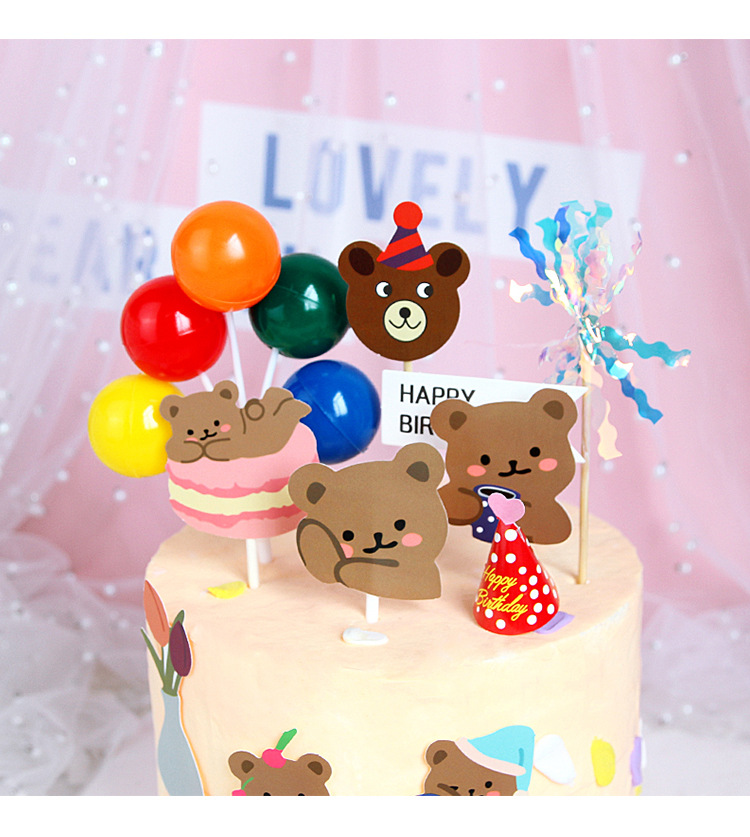 인스 생일 케이크 장식 플러그인 인터넷 유명 캐릭터 소프트 클레이 곰 장식품 캔들 풍선 디저트 테이블 플러그인스토어 가기