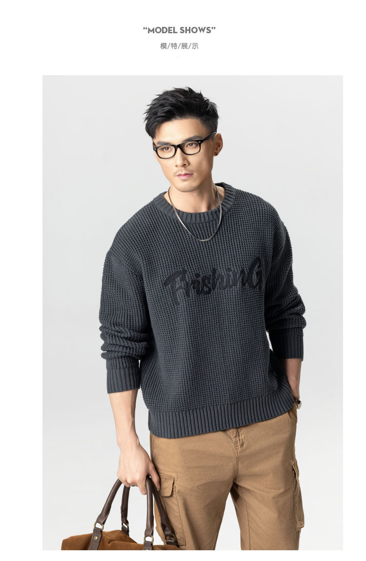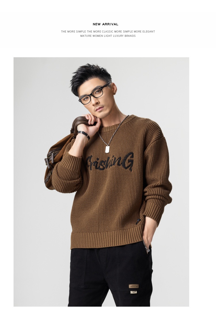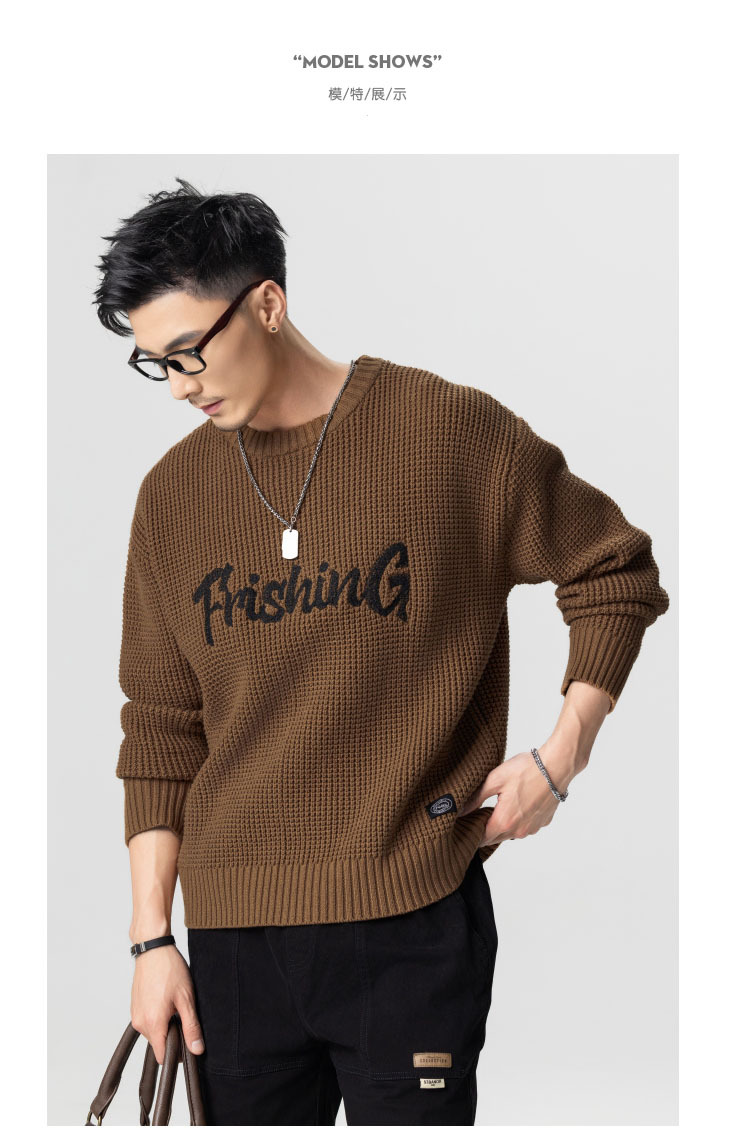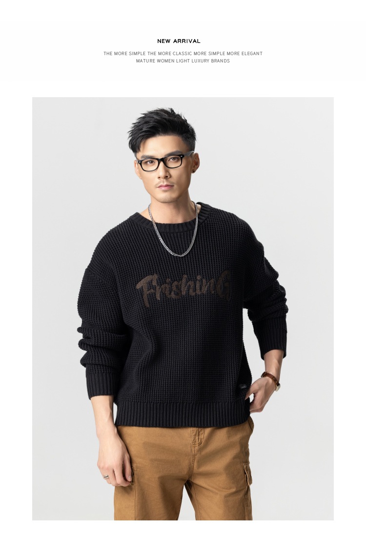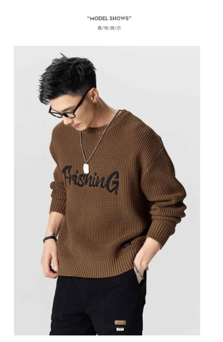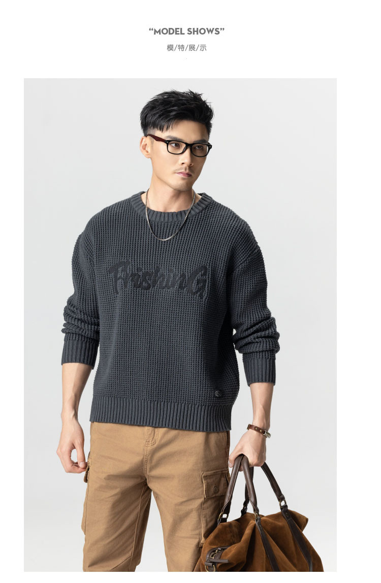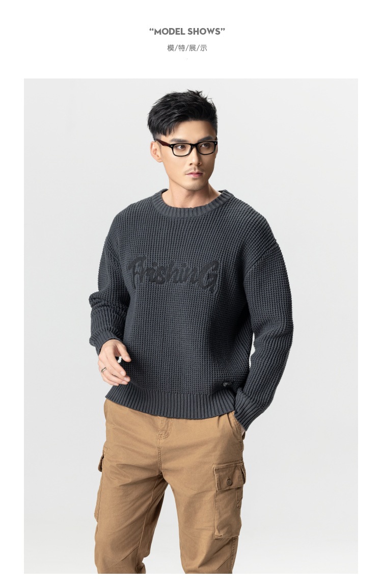 2024秋季男式刺绣针织衫宽松休闲百搭男士毛衣圆领套头大码上衣潮