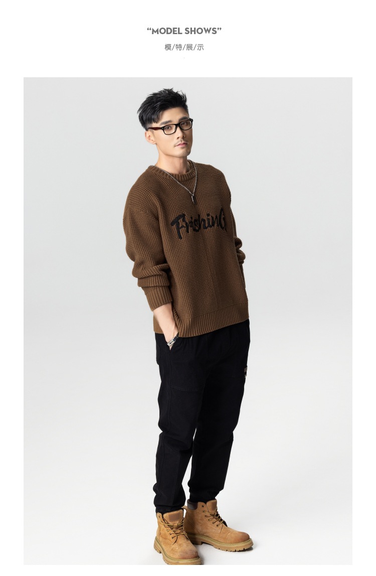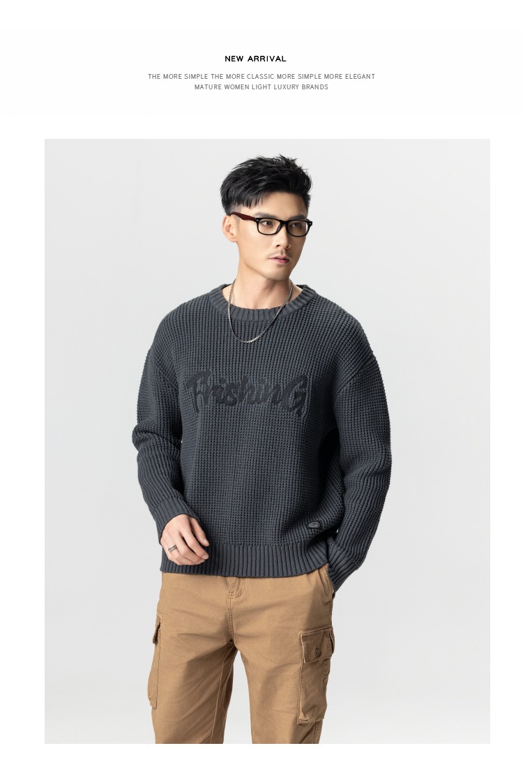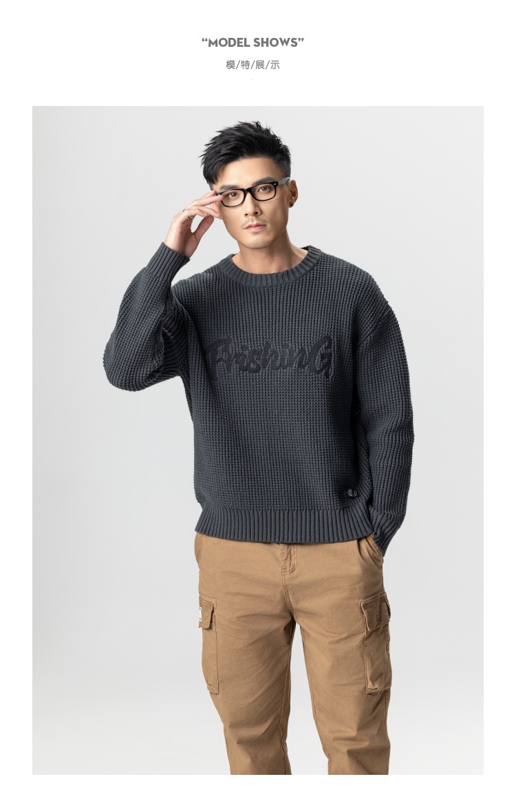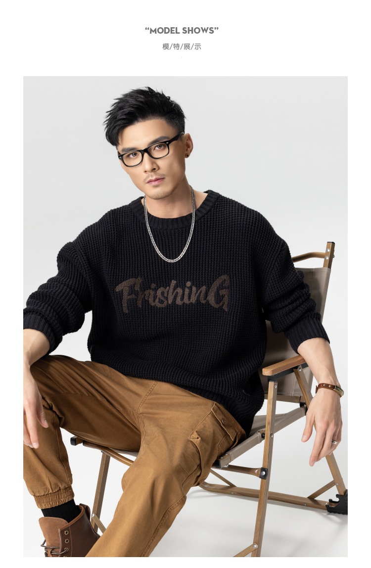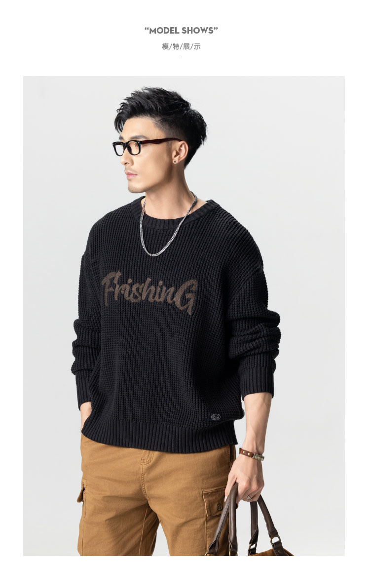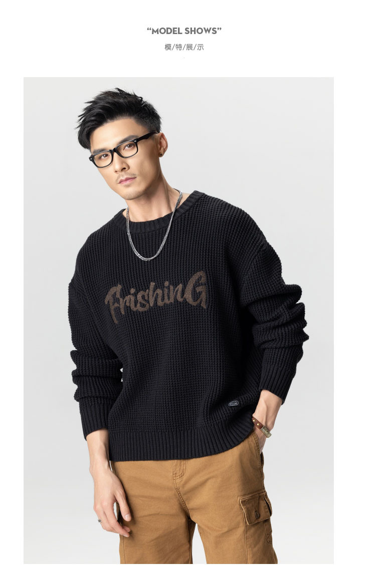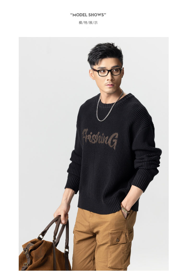 2024秋季男式刺绣针织衫宽松休闲百搭男士毛衣圆领套头大码上衣潮