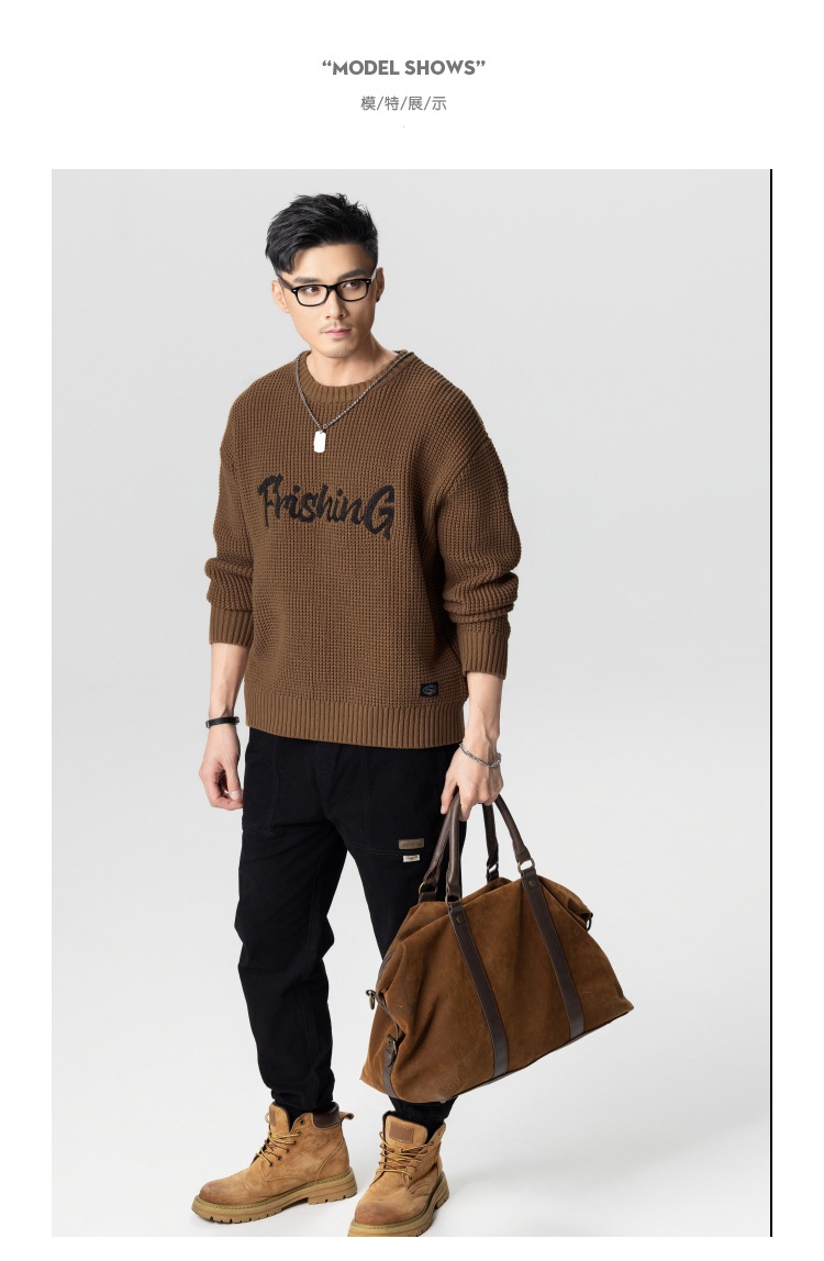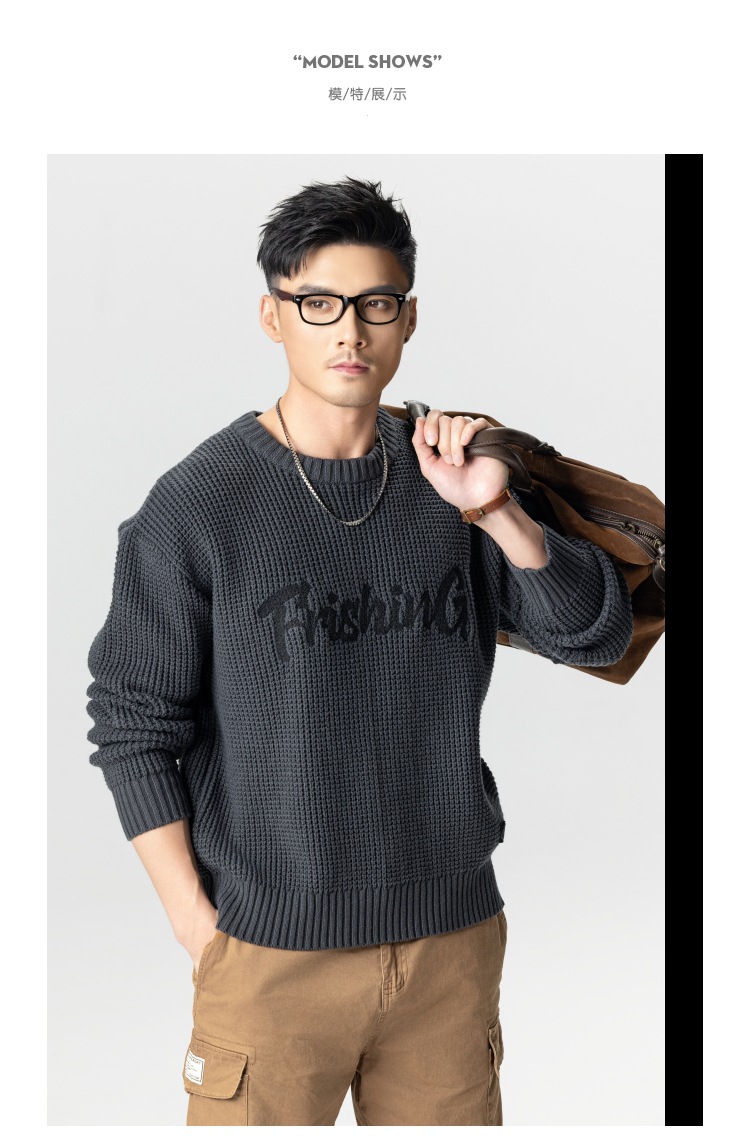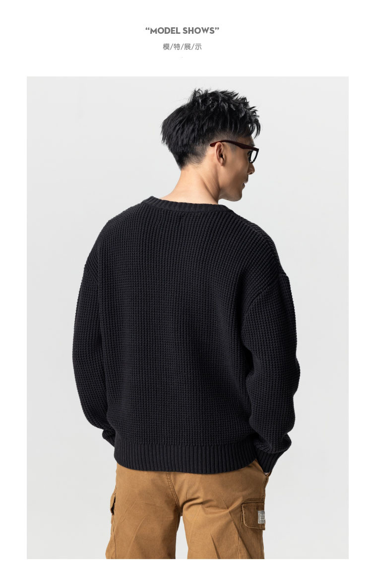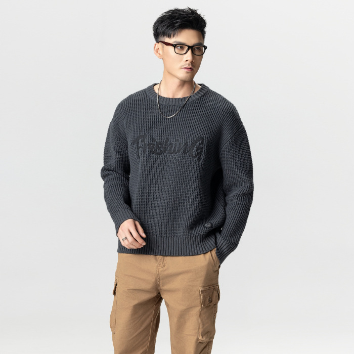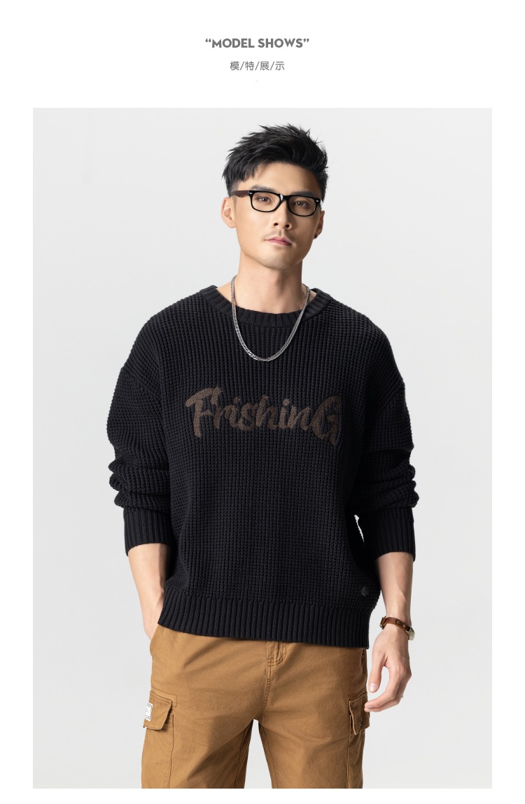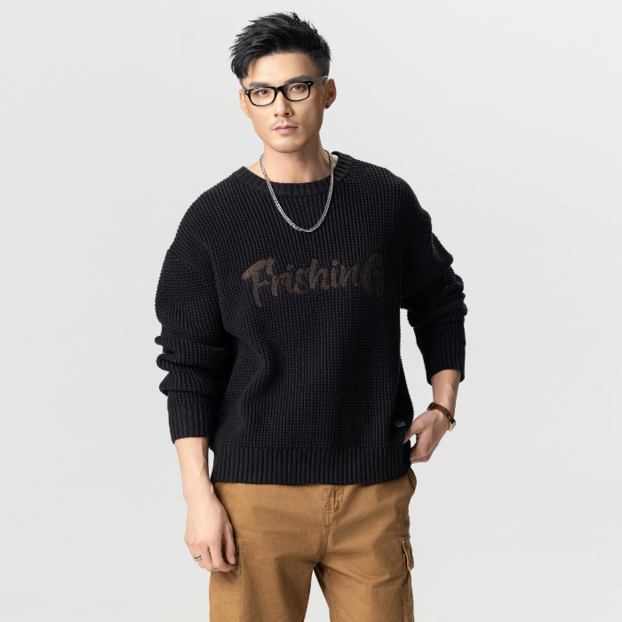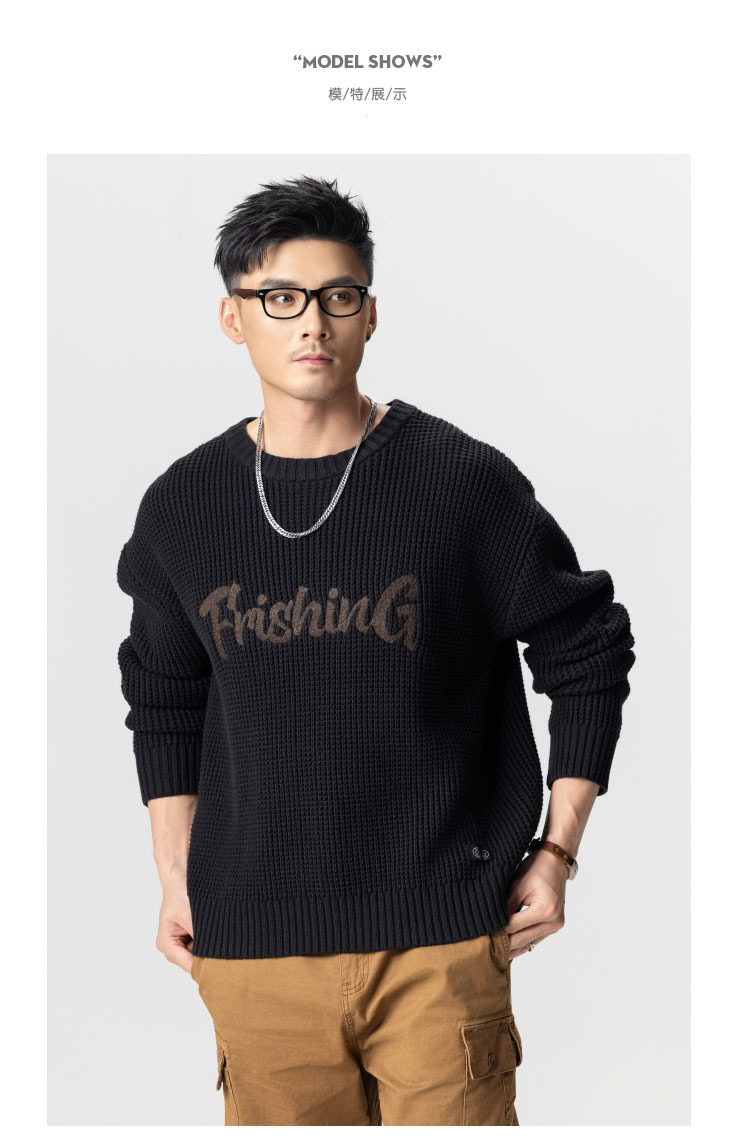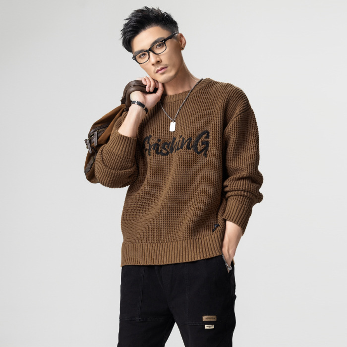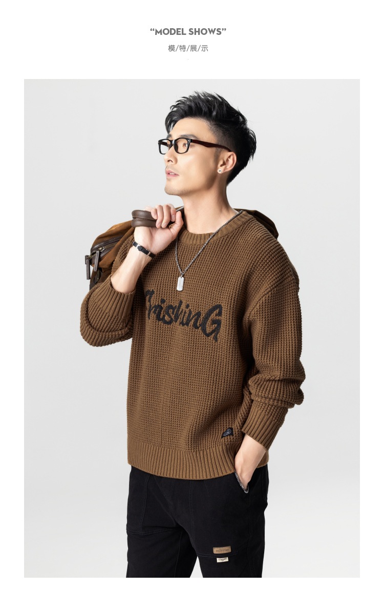2024秋季男式刺绣针织衫宽松休闲百搭男士毛衣圆领套头大码上衣潮