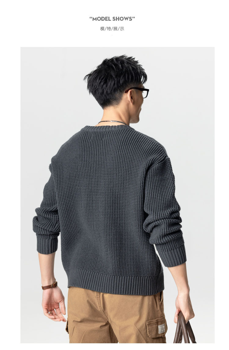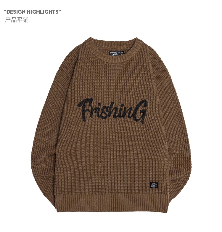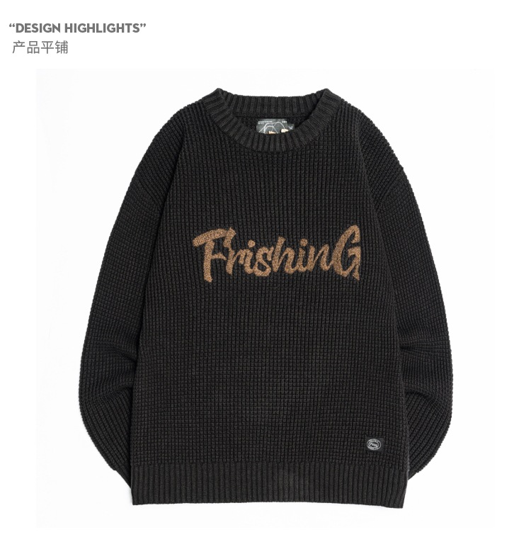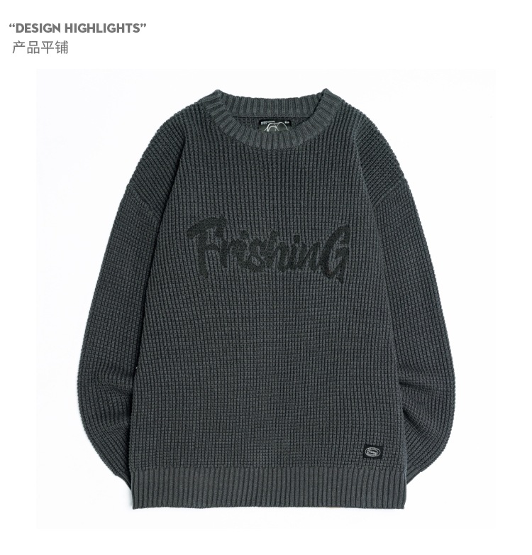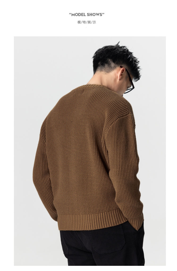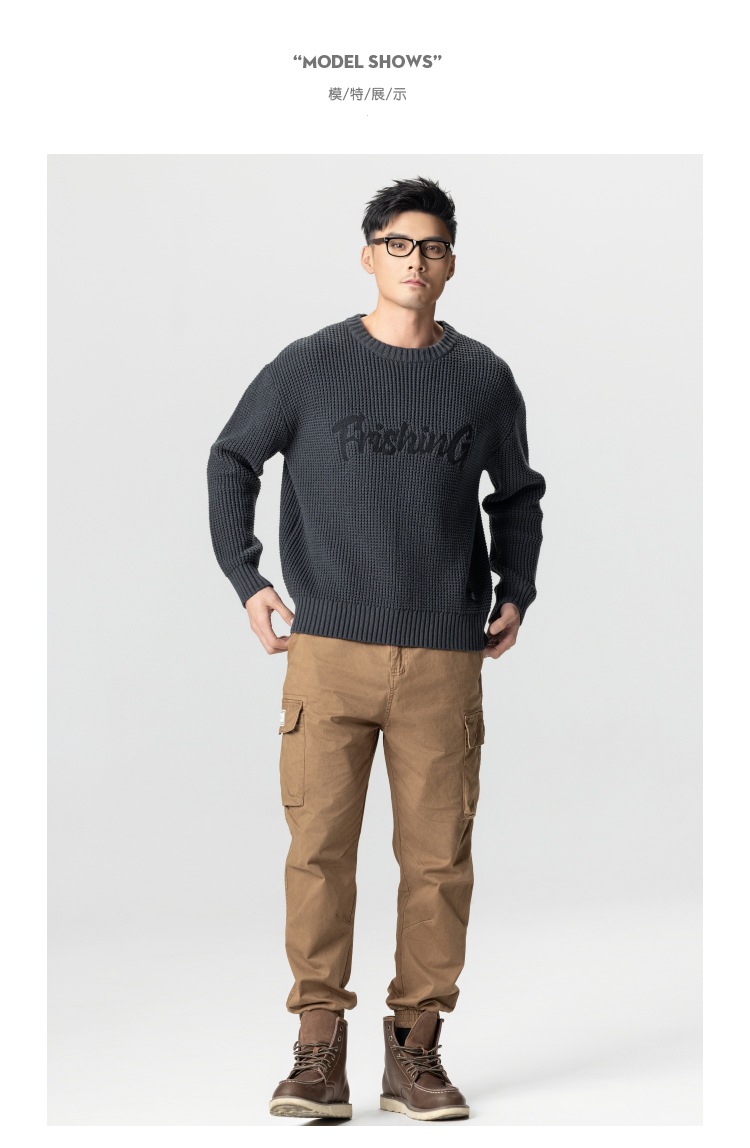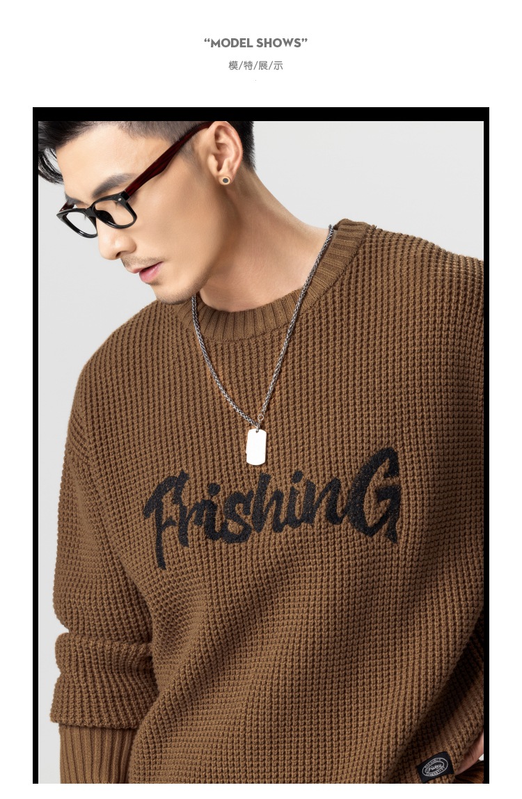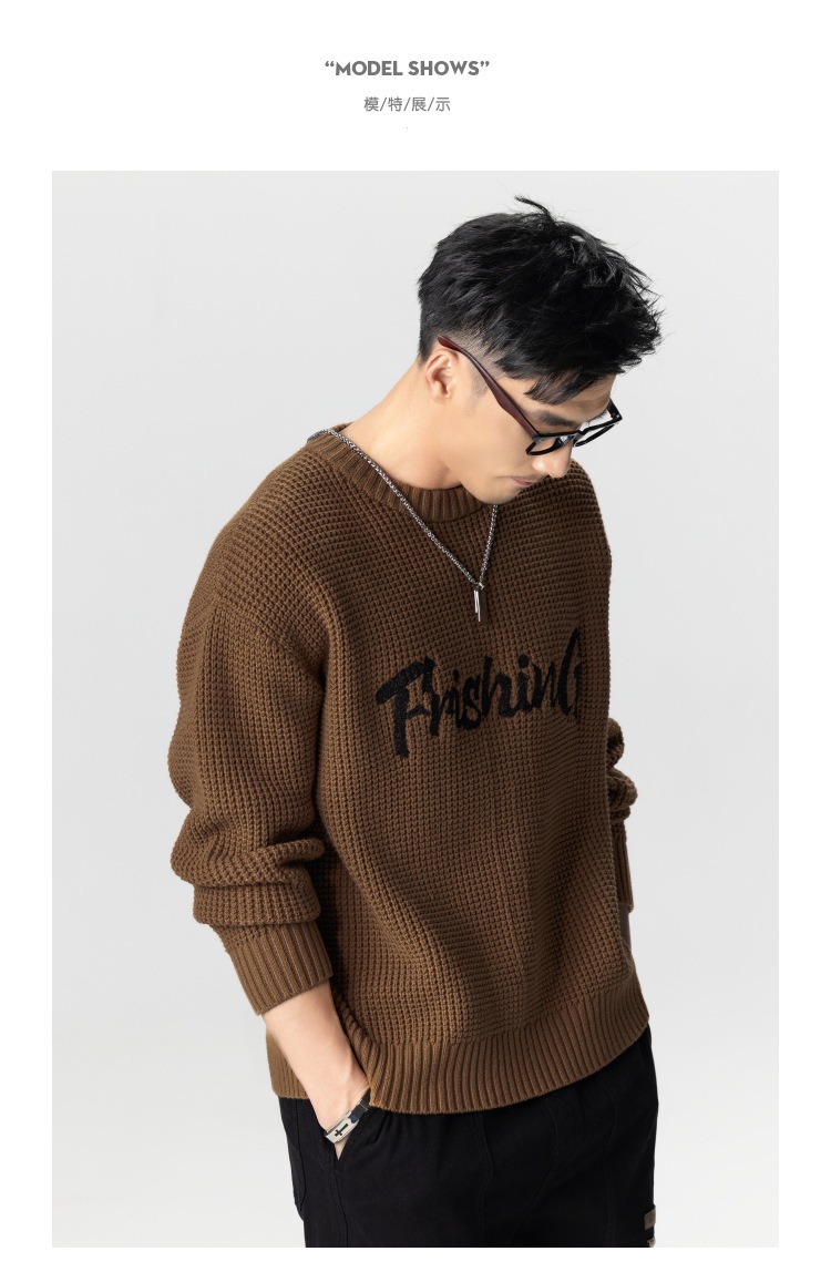 2024秋季男式刺绣针织衫宽松休闲百搭男士毛衣圆领套头大码上衣潮