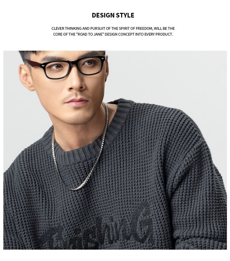 가을 2024 남자 자수 니트웨어 느슨한 캐주얼 올 매치 남자 스웨터 크루 넥 풀오버 플러스 사이즈 탑 트렌디스토어 가기
