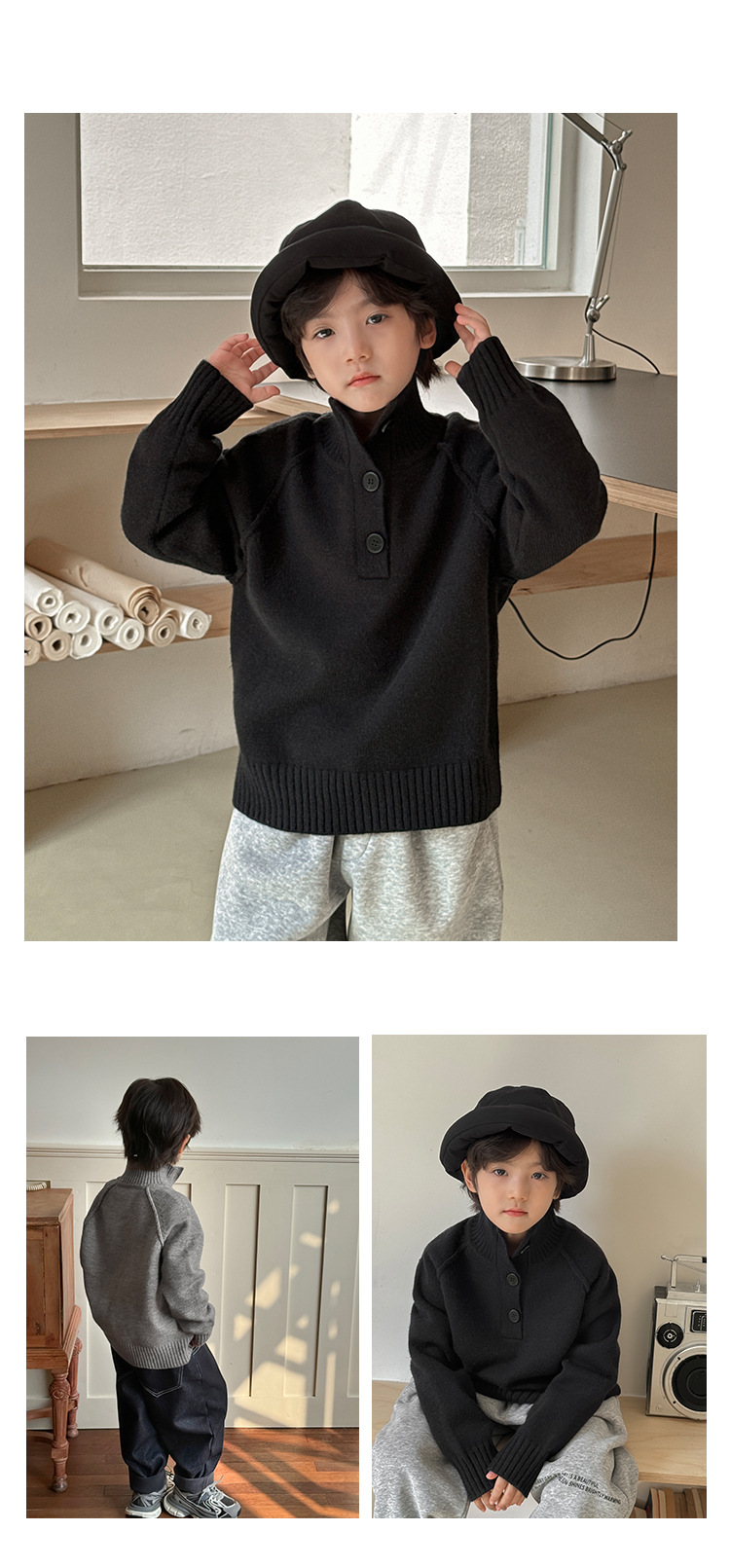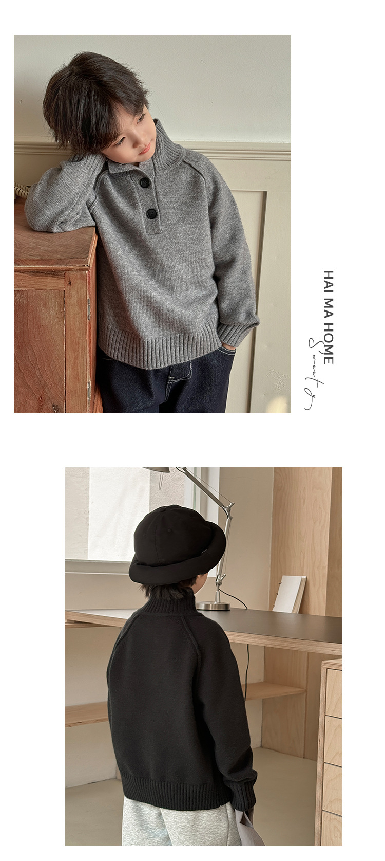 해마가족 아동복 2025 겨울 신상 남아 한국 스타일 하이넥 스웨터 세련된 니트 겨울옷스토어 가기