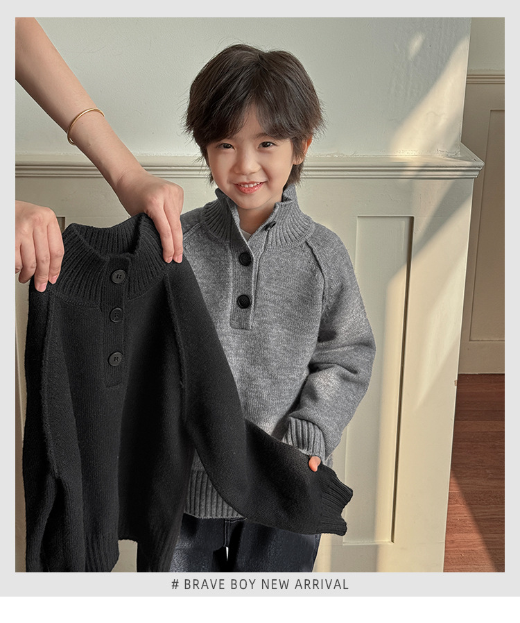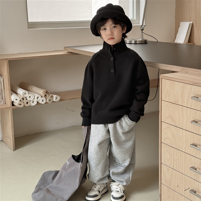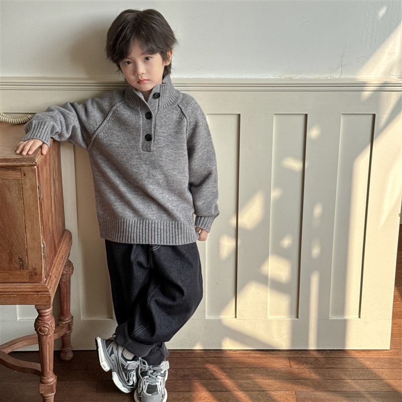 해마가족 아동복 2025 겨울 신상 남아 한국 스타일 하이넥 스웨터 세련된 니트 겨울옷