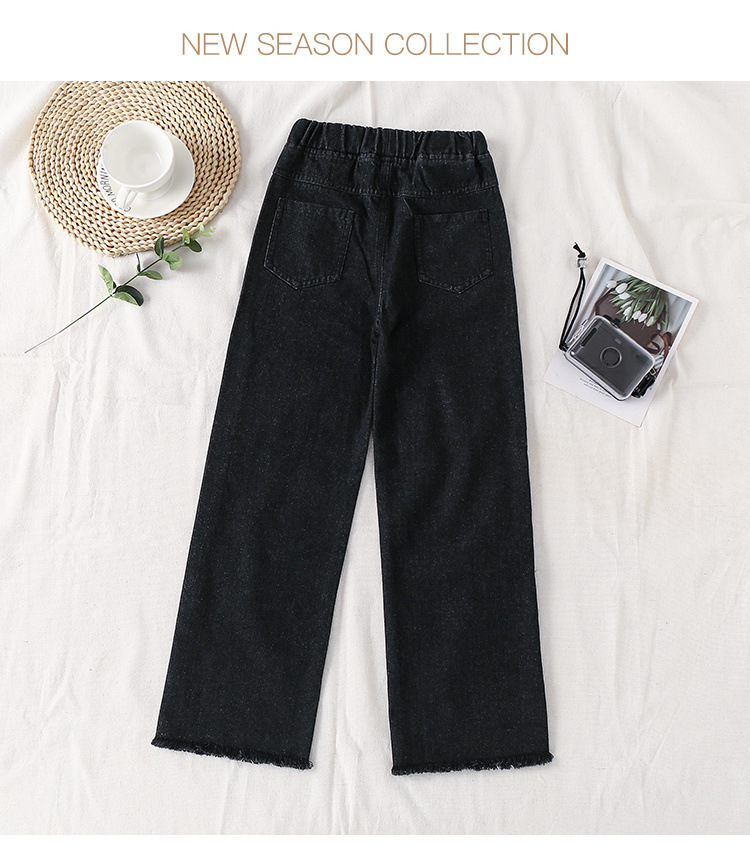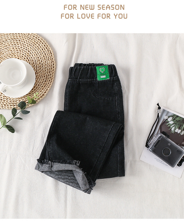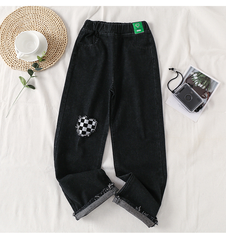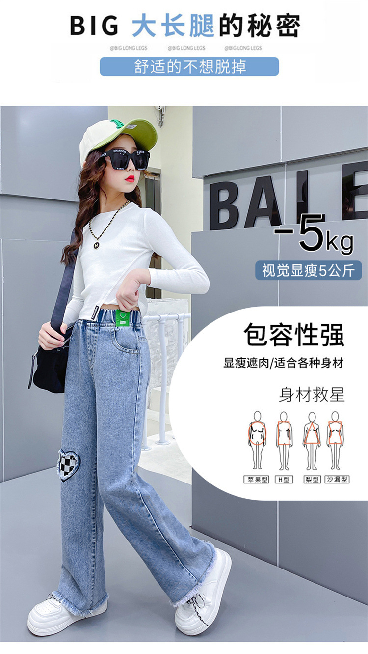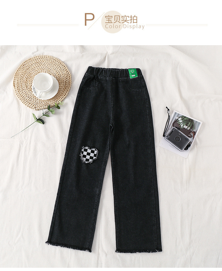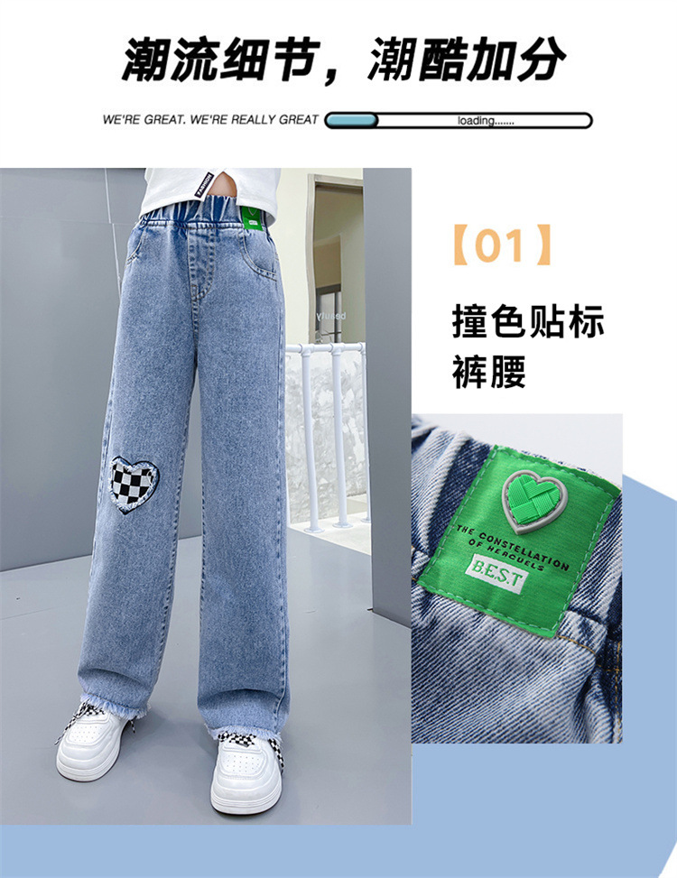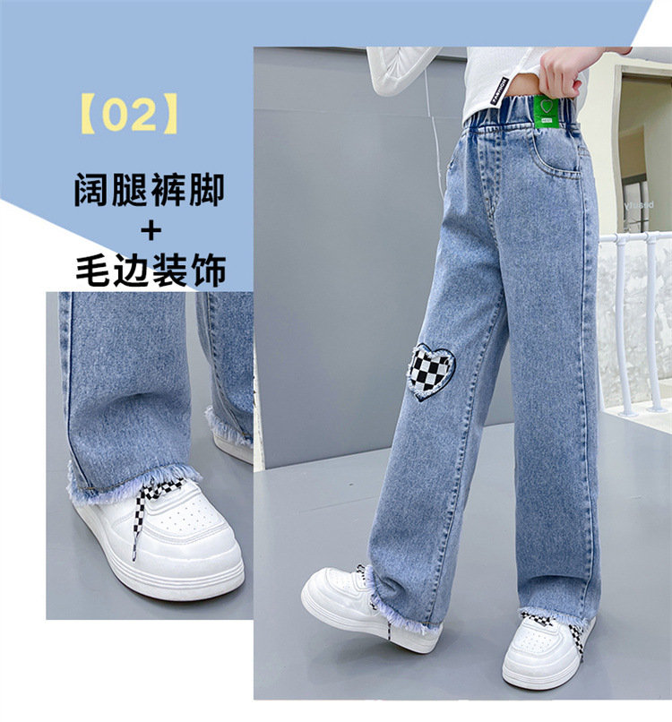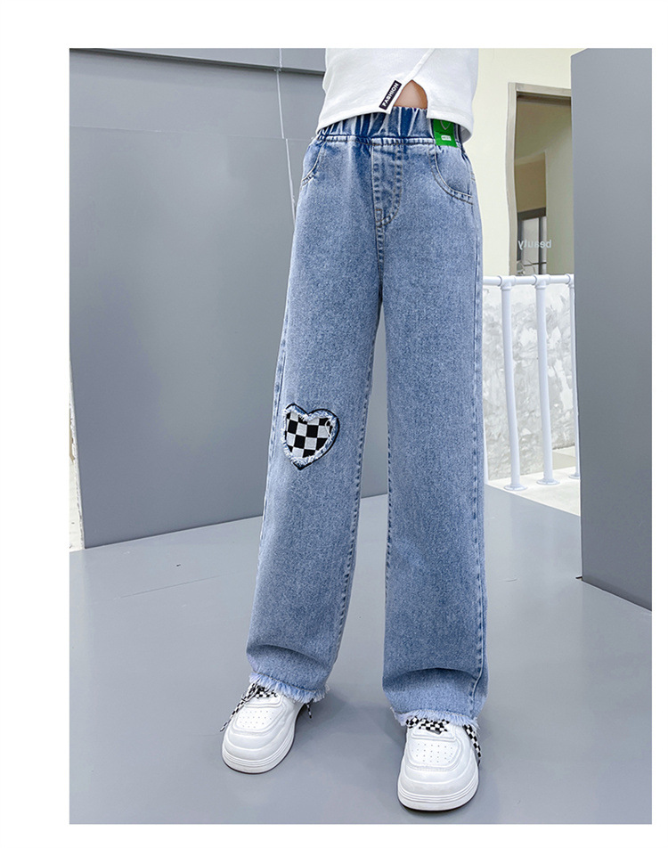 여아용 와이드 데님 팬츠 봄 가을 2025 아동복 도매 인기 트렌드 중대형 아동 바지 스트레이트 팬츠 체크무늬스토어 가기