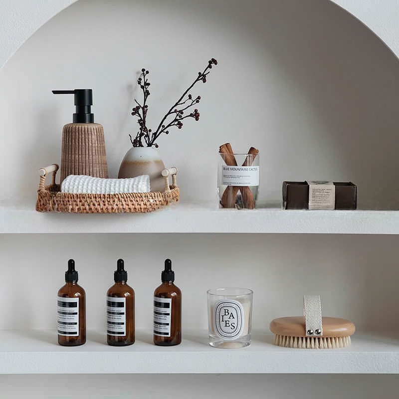 모델 룸 욕실 욕실 캐비닛 발코니 장식품 로그 스타일 간단한 짠 저장 프레임 타월 목욕 브러쉬 아로마 테라피스토어 가기