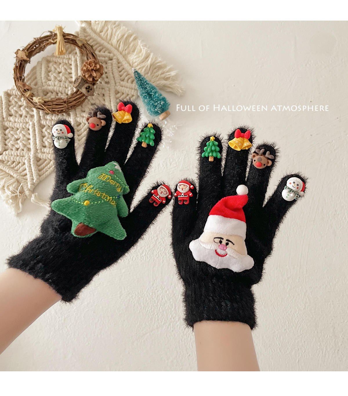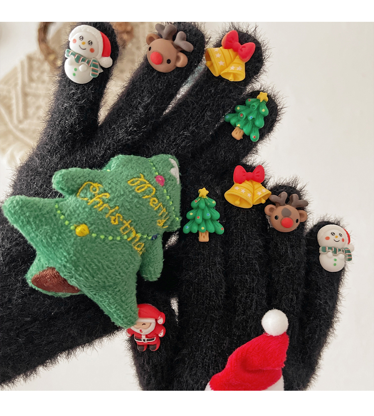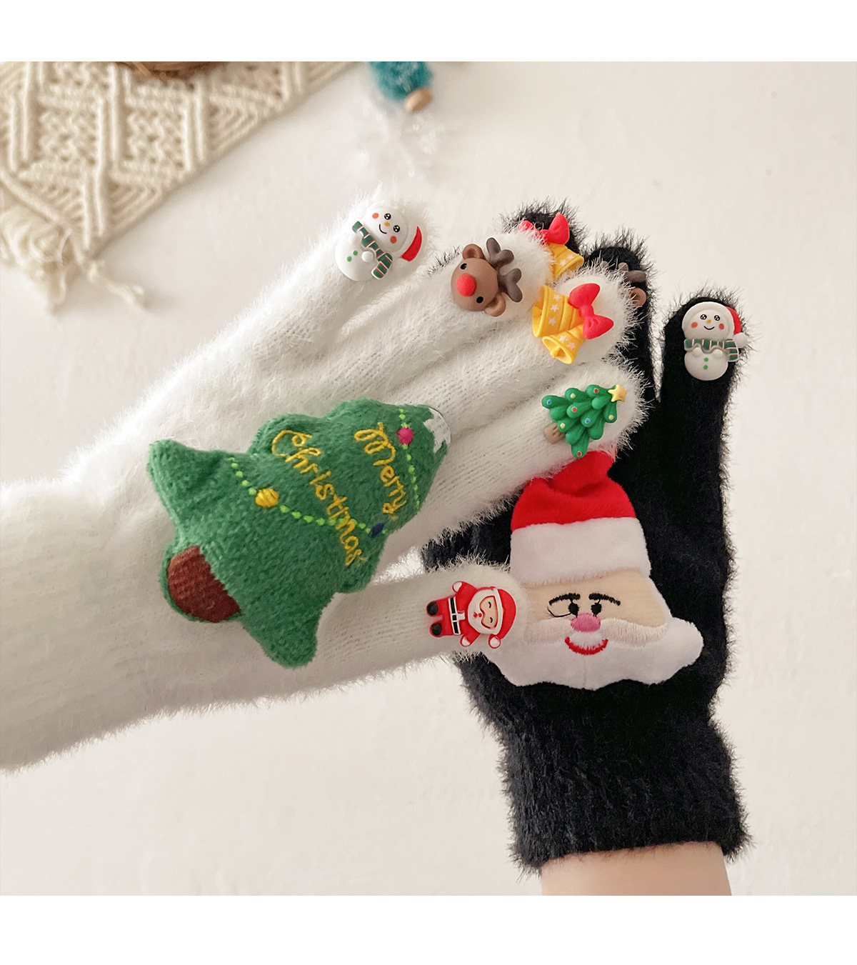 아마존 크리스마스 장갑 남성과 여성의 겨울 국경 인형 플러시 따뜻한 야외 승마 학생 다섯 손가락 장갑