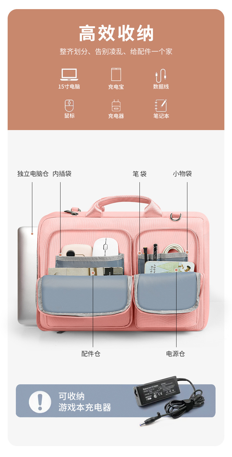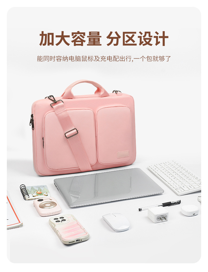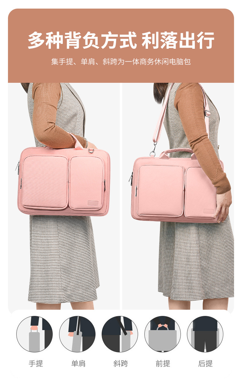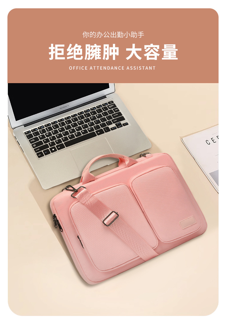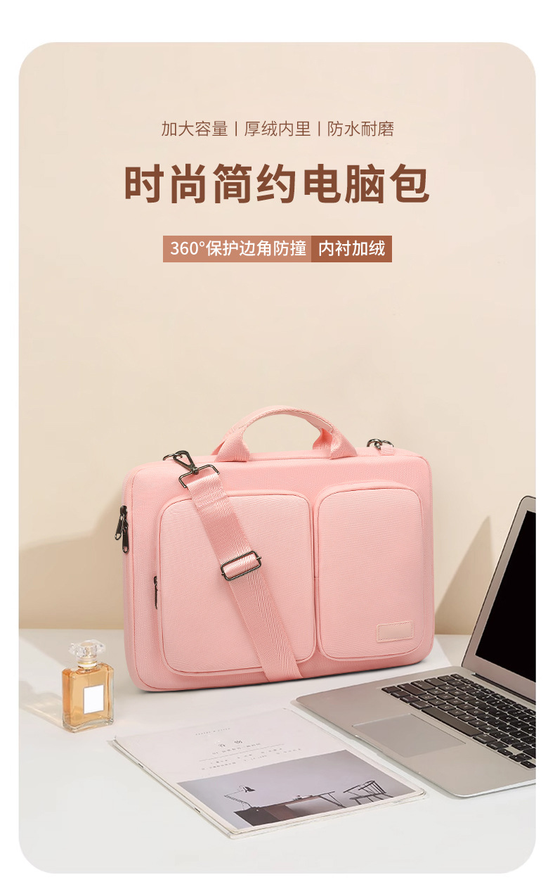 폴리에스터 방수 컴퓨터 가방 14inch 대용량, 한쪽 어깨에 걸치거나 크로스백으로 착용 가능, 벨벳 안감, 낙하 방지, 통근용 노트북 핸드백