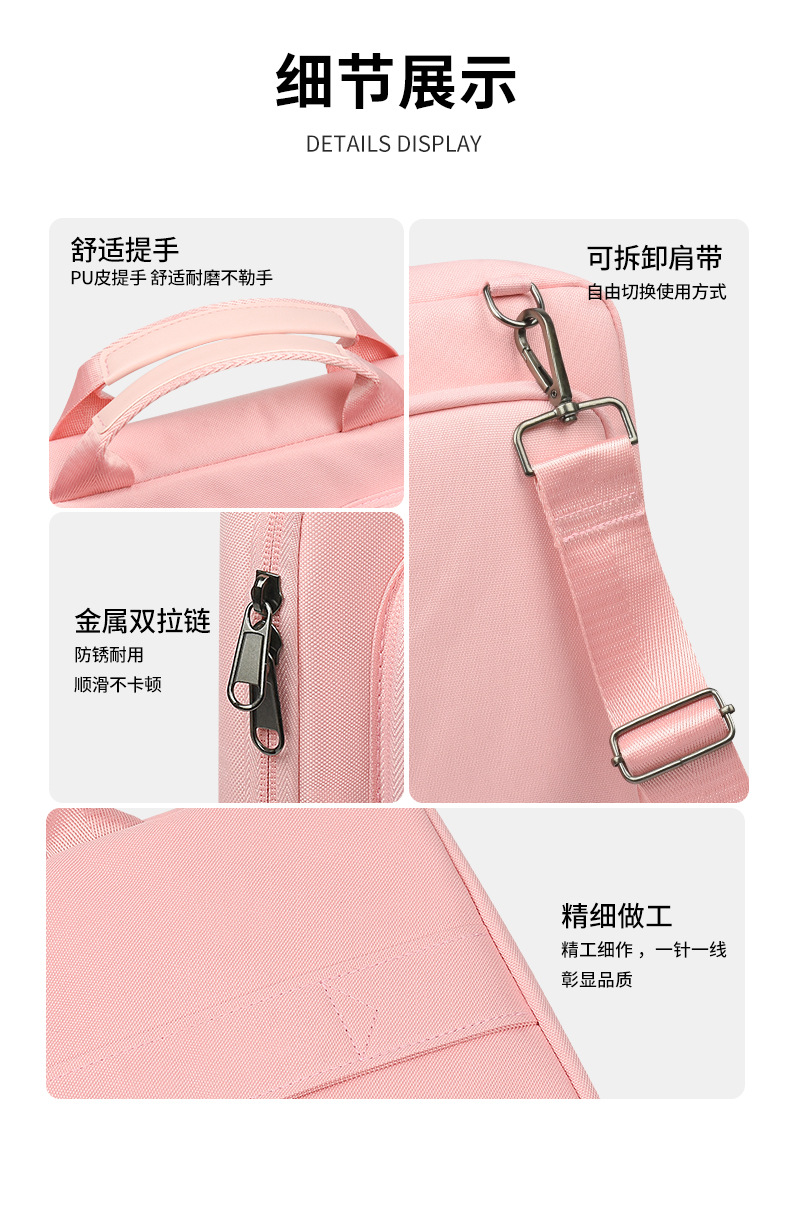 폴리에스터 방수 컴퓨터 가방 14inch 대용량, 한쪽 어깨에 걸치거나 크로스백으로 착용 가능, 벨벳 안감, 낙하 방지, 통근용 노트북 핸드백스토어 가기