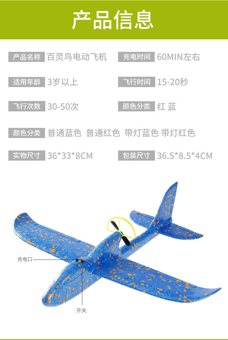 USB 충전식 전기 항공기 손으로 활공 항공기 어린이 장난감 실속 도매 거품 전투기 모델스토어 가기