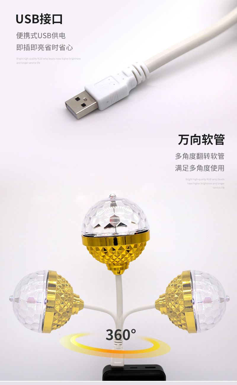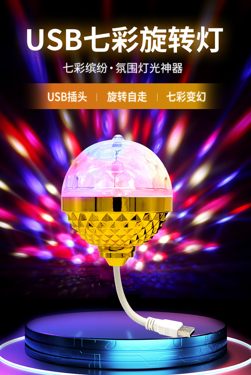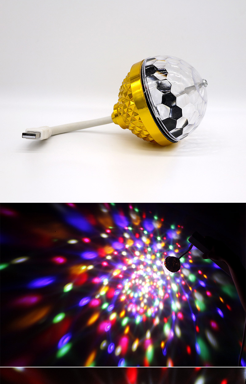 국경 LED 디스코 조명 다채로운 USB 회전 조명 황금 마술 공 자동차 5V 컬러 조명 휴일 분위기 조명