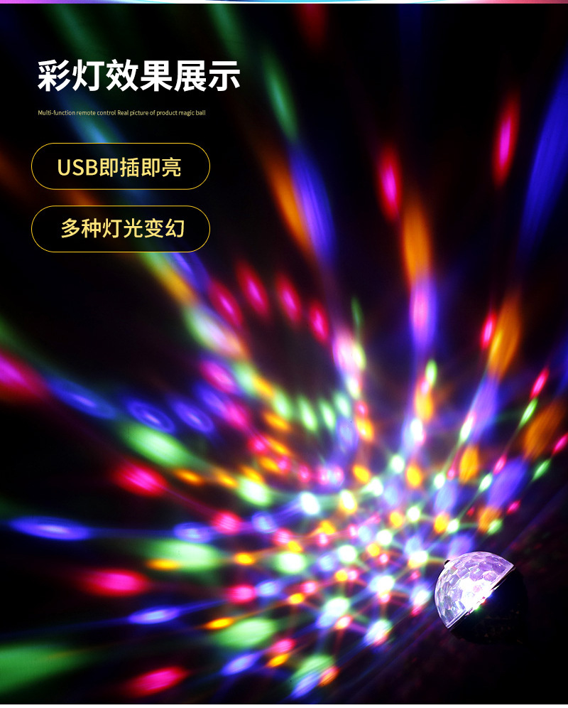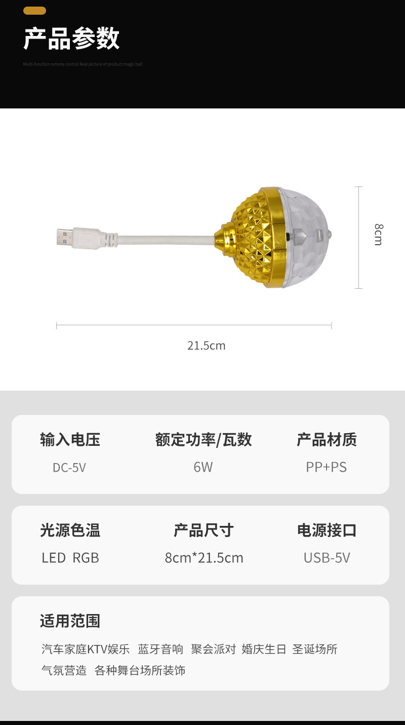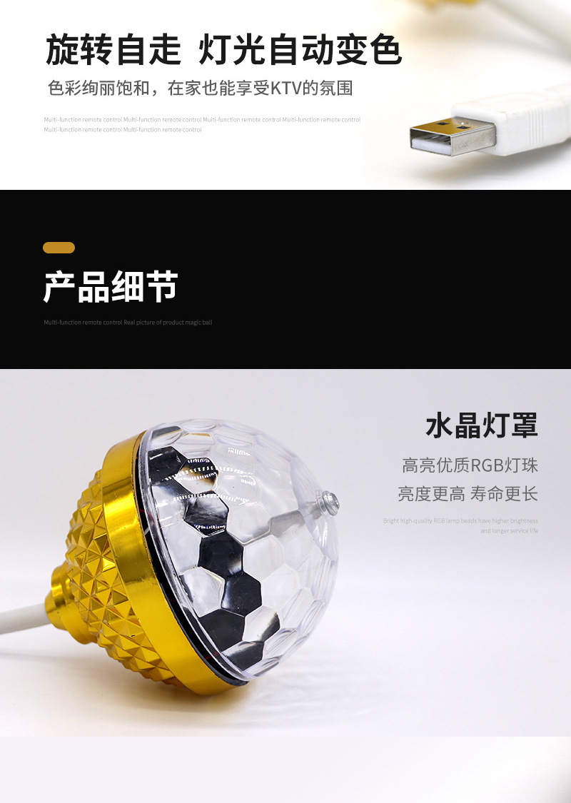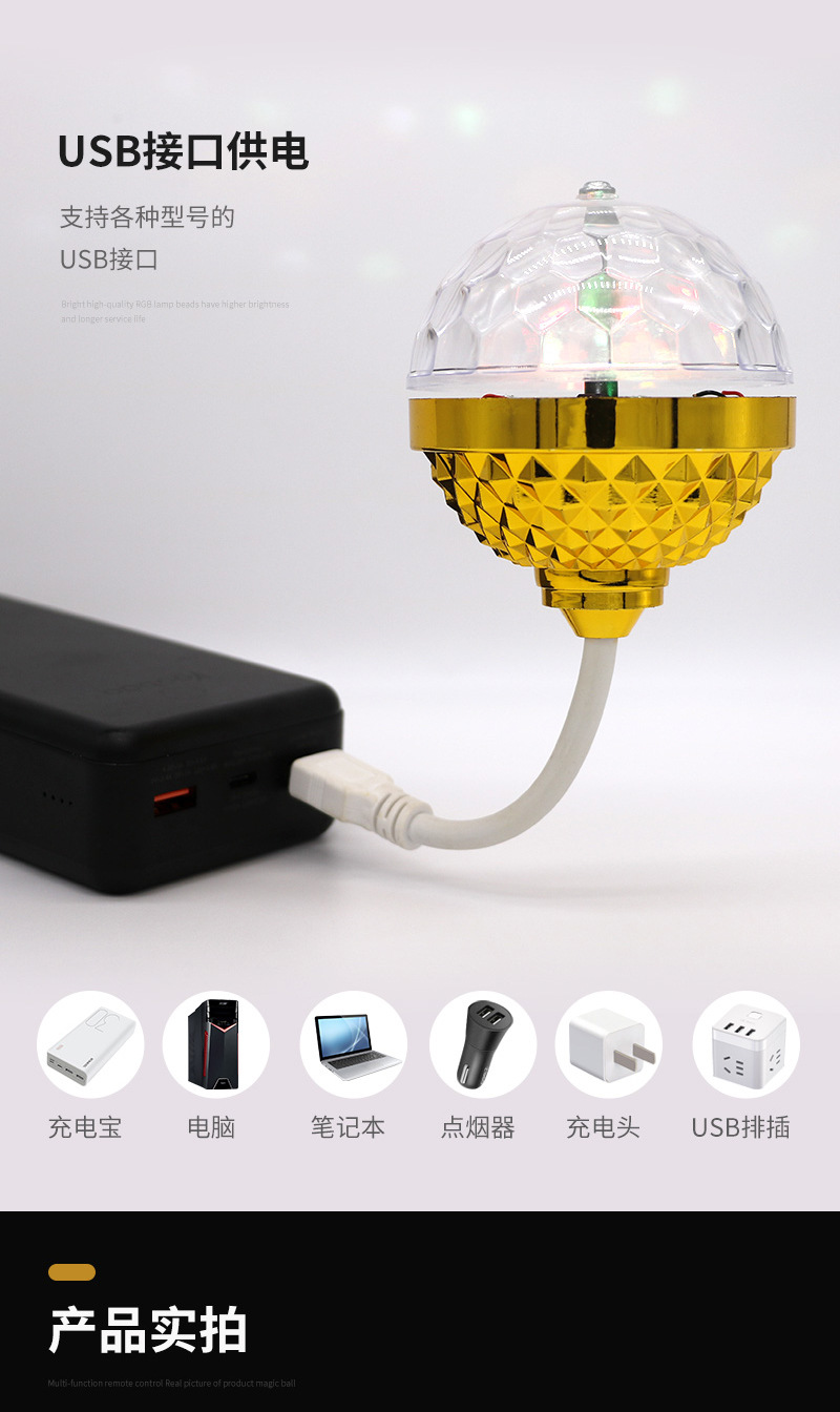 국경 LED 디스코 조명 다채로운 USB 회전 조명 황금 마술 공 자동차 5V 컬러 조명 휴일 분위기 조명