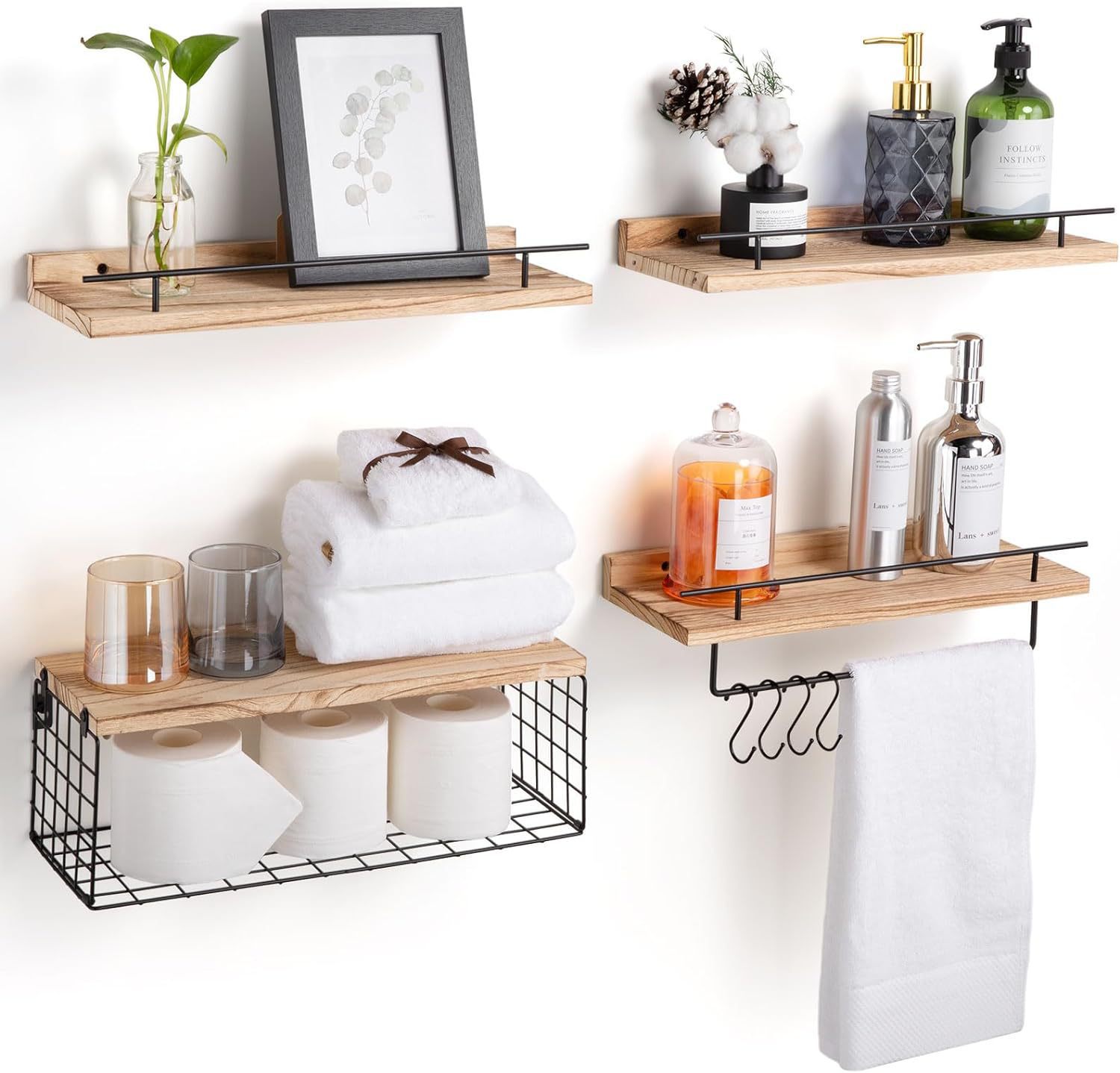 국경 벽 다층 저장 랙 수건 바 벽 장식 보관 랙이있는 욕실 보관 랙
