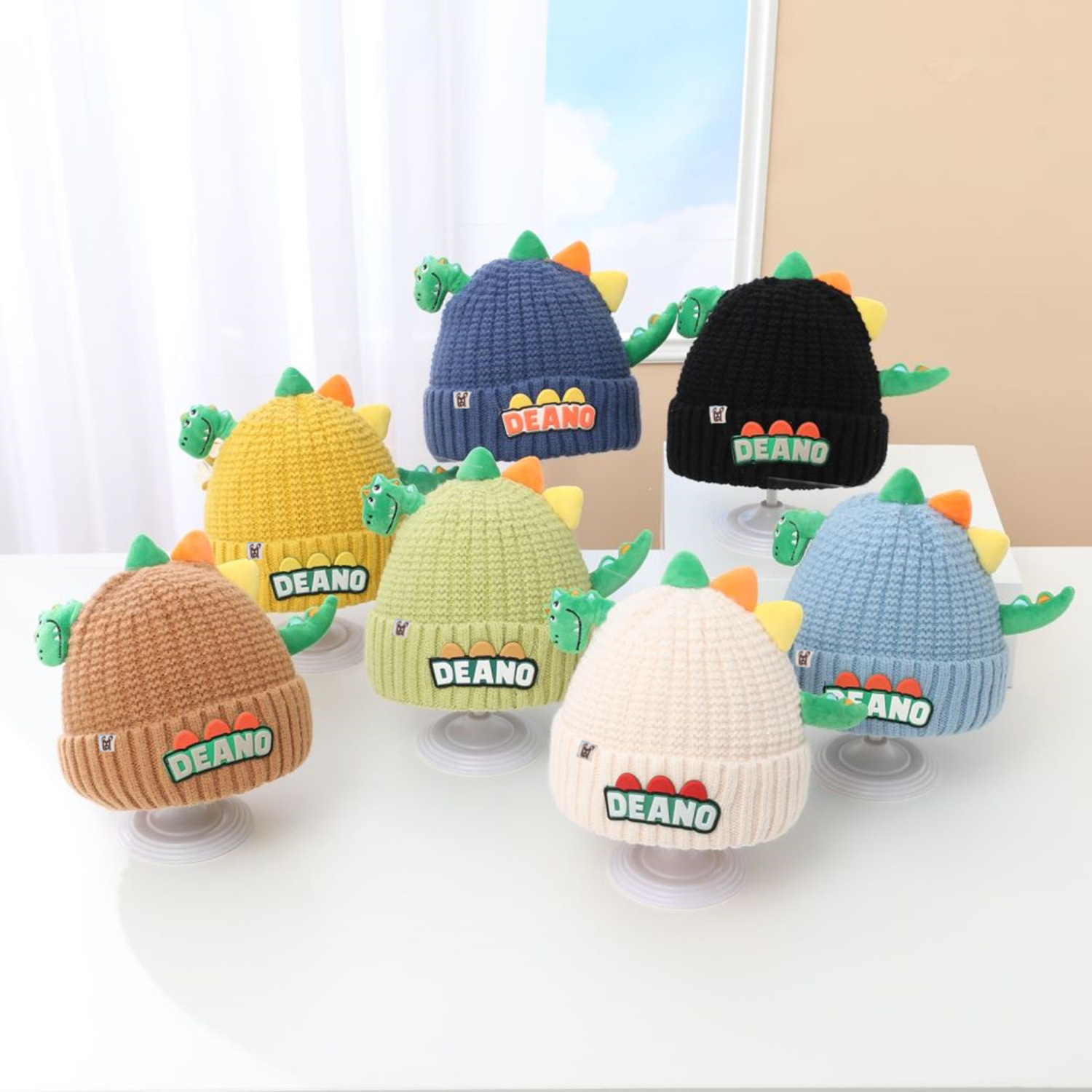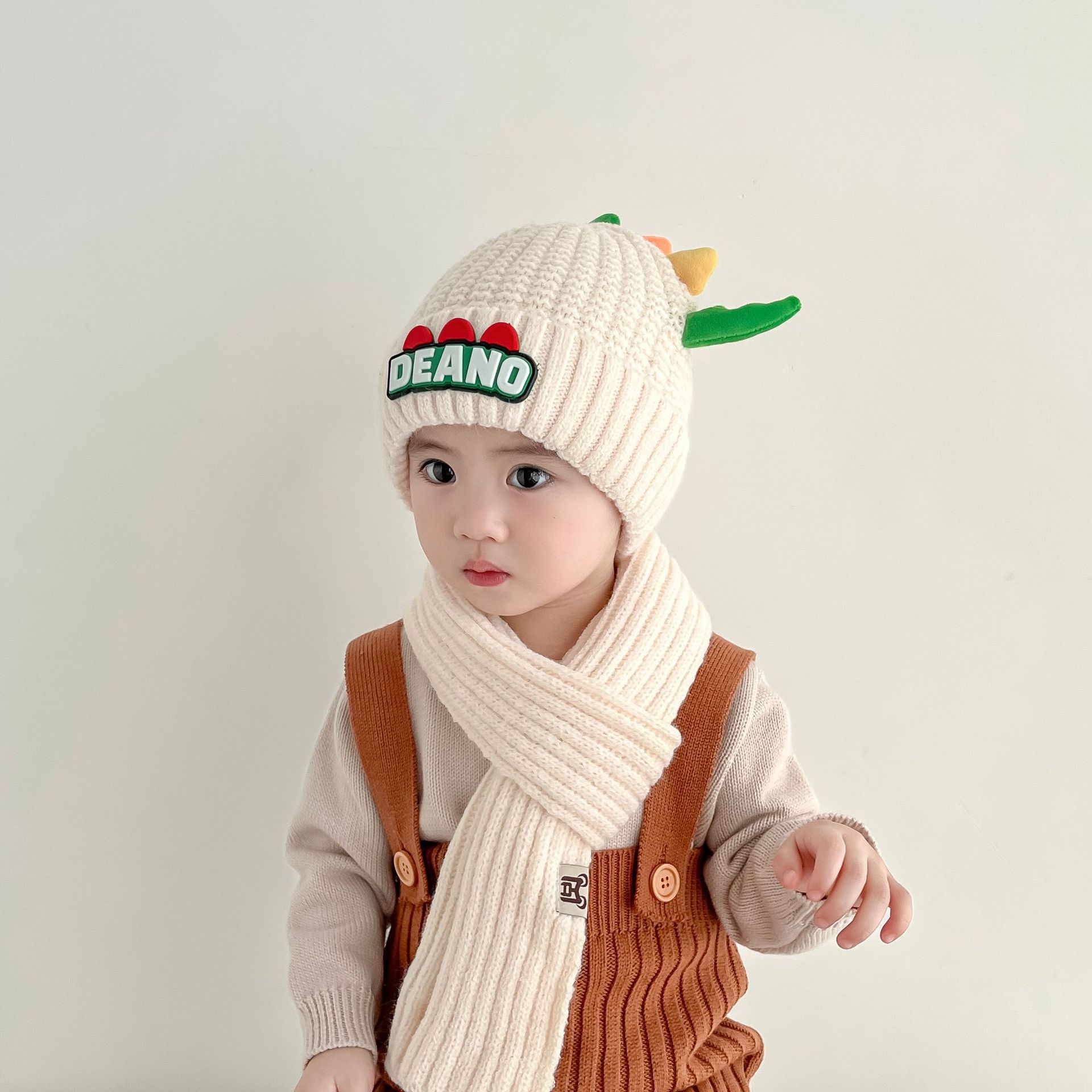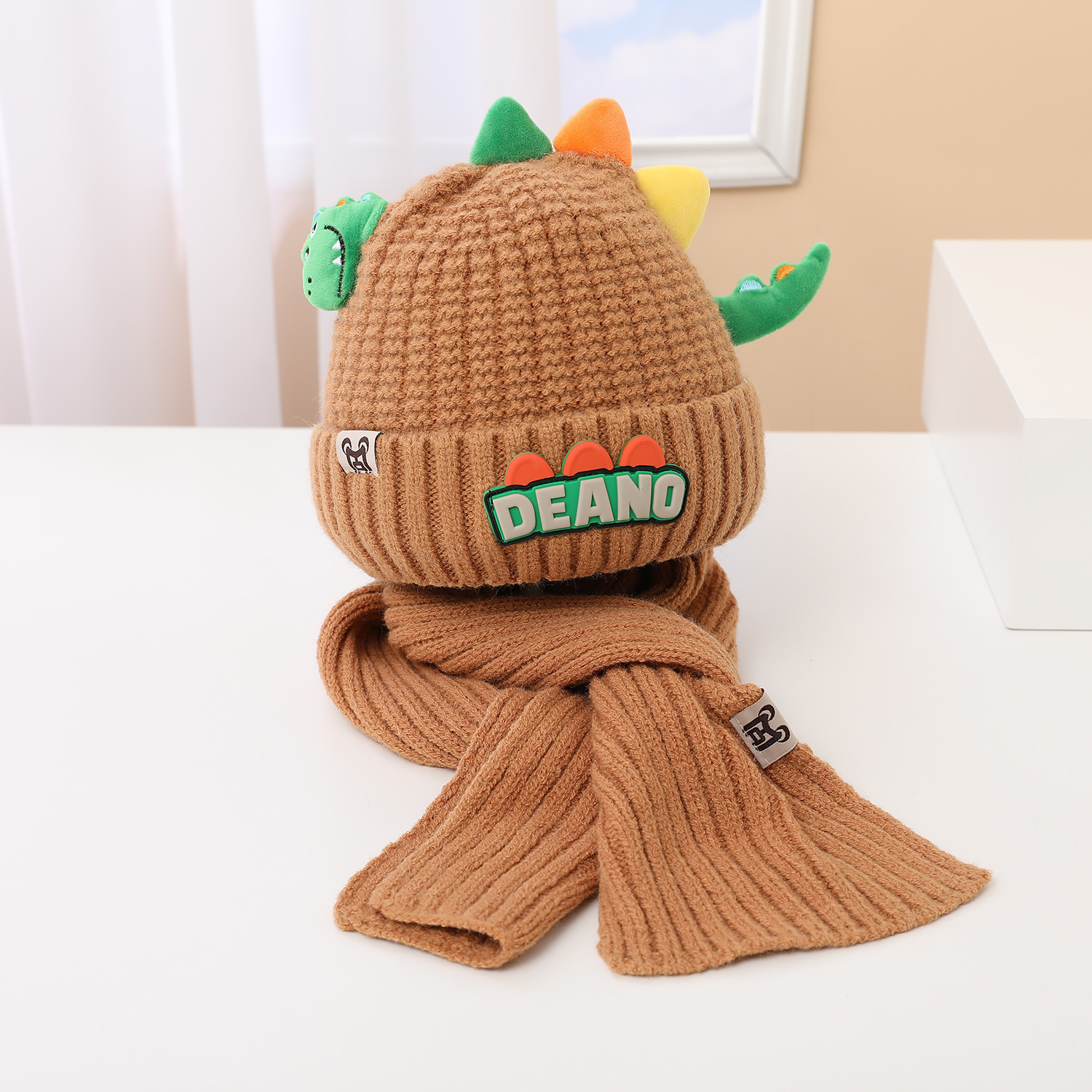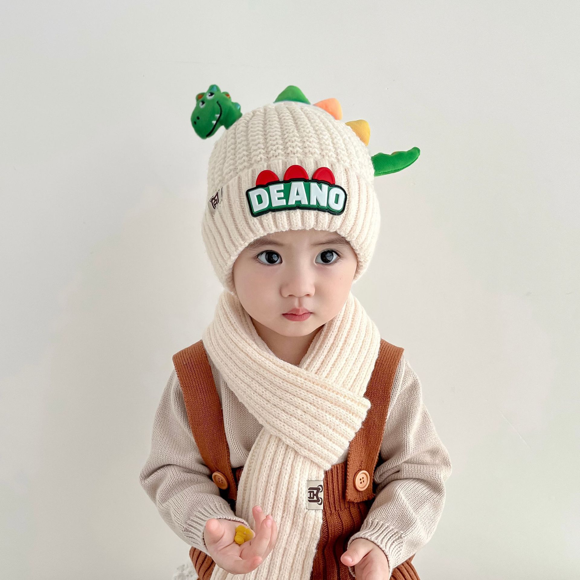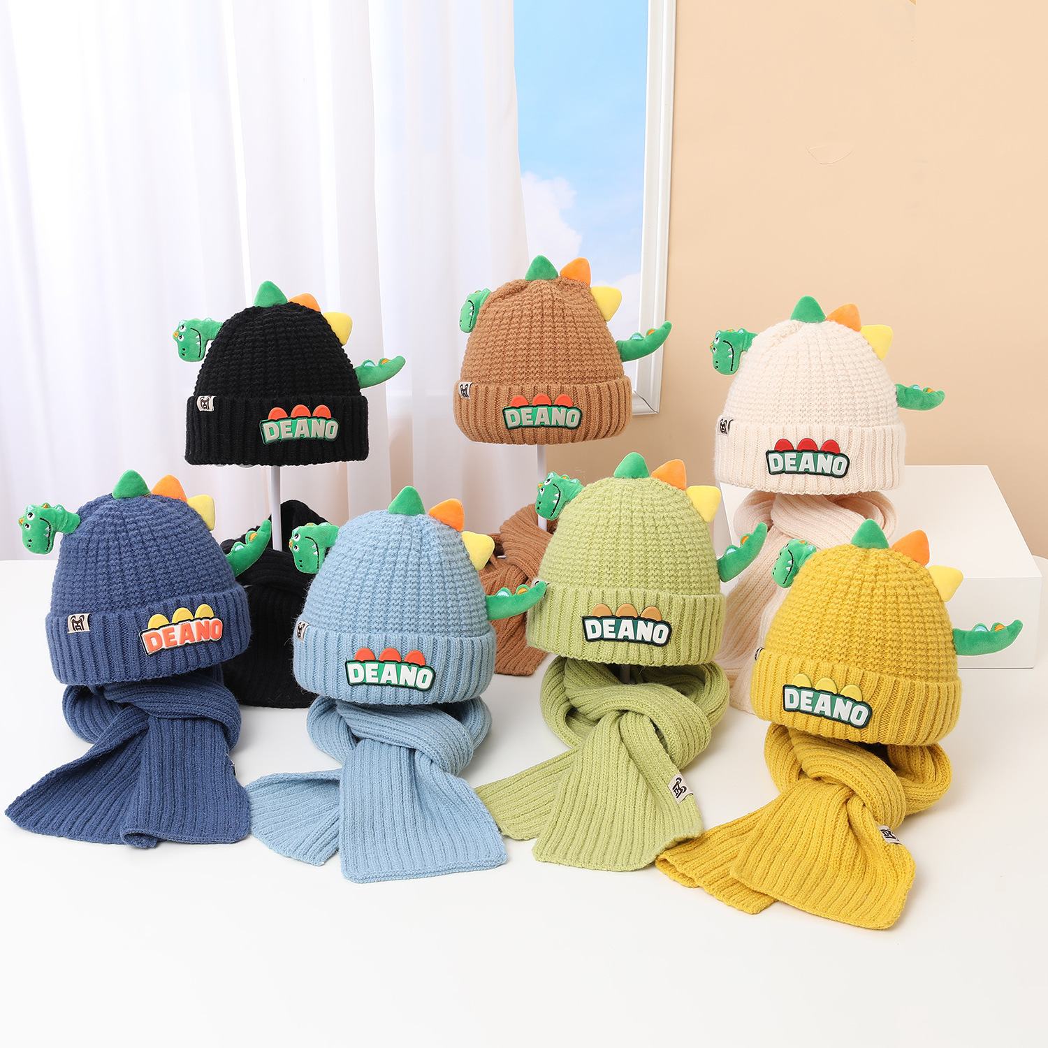 가을과 겨울 귀여운 슈퍼 귀여운 공룡 니트 울 모자 어린이 모자 소년과 소녀 따뜻한 모자 스카프 세트