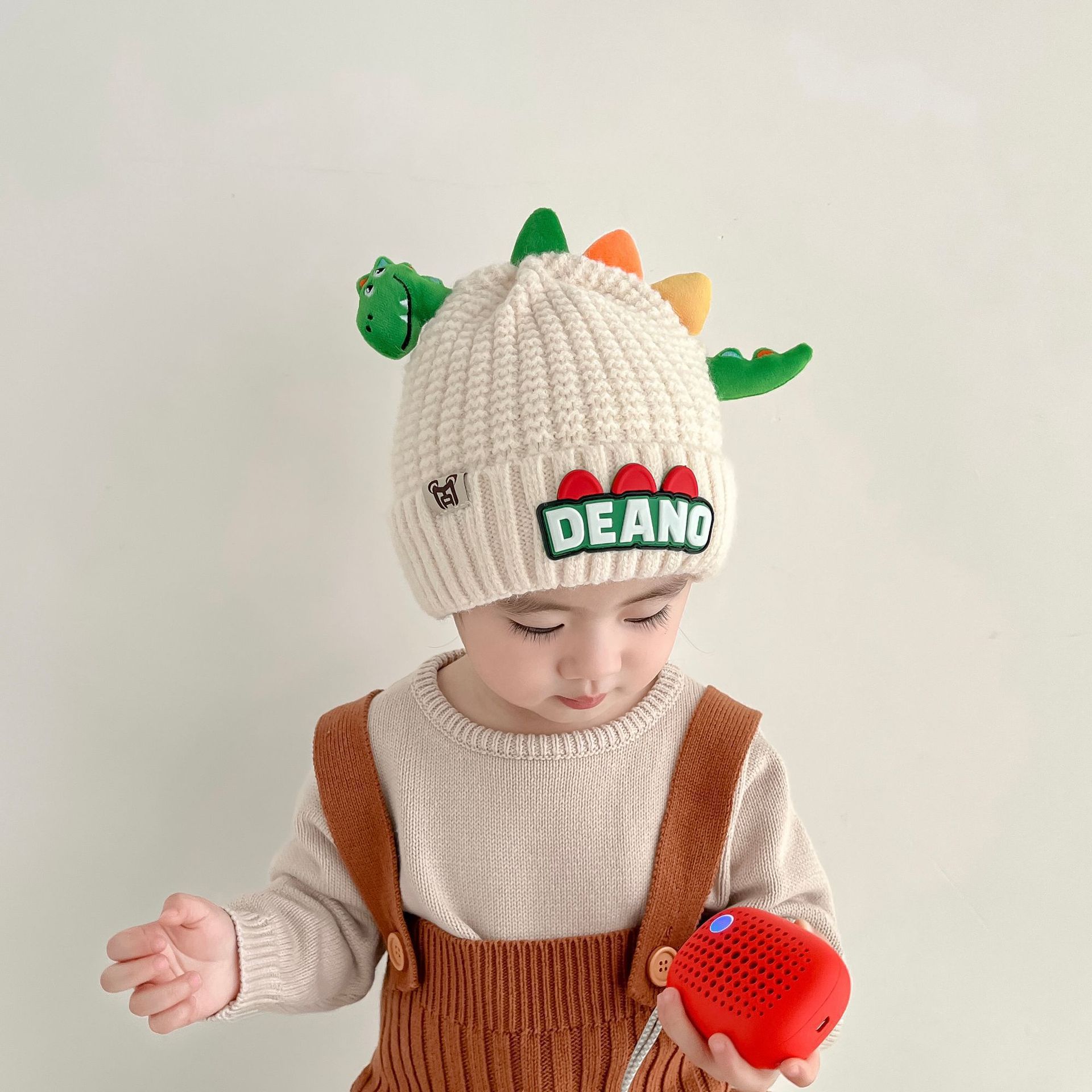 가을과 겨울 귀여운 슈퍼 귀여운 공룡 니트 울 모자 어린이 모자 소년과 소녀 따뜻한 모자 스카프 세트스토어 가기