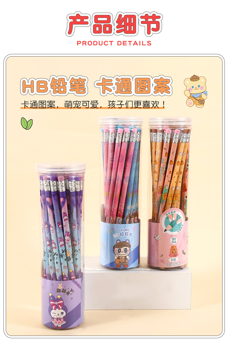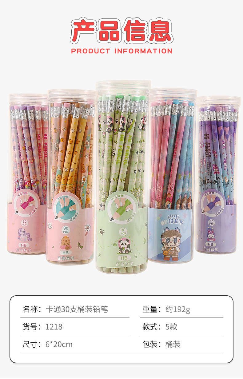 Hb 연필 초등학교 학생 지우개 배럴 30 높은 색 가치 학습 문구 유치원 선물 공장 도매