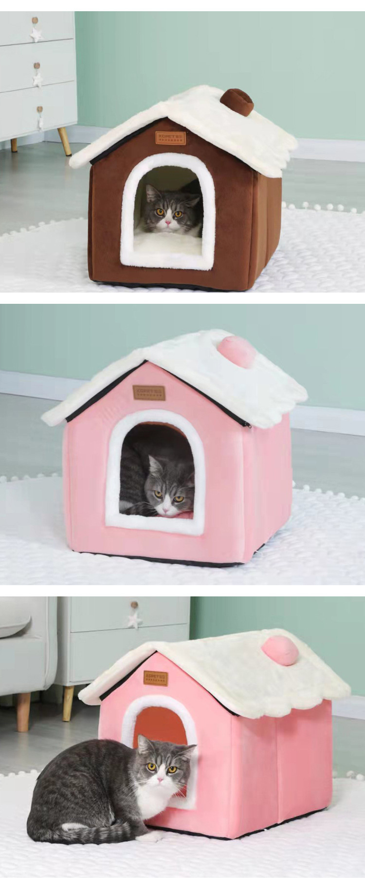창의적인 애완 동물 둥지 이동식 및 세척 가능한 집 고양이 둥지 고양이와 개 둥지 폐쇄 된 집 애완 동물 용품 사계절에 사용 가능