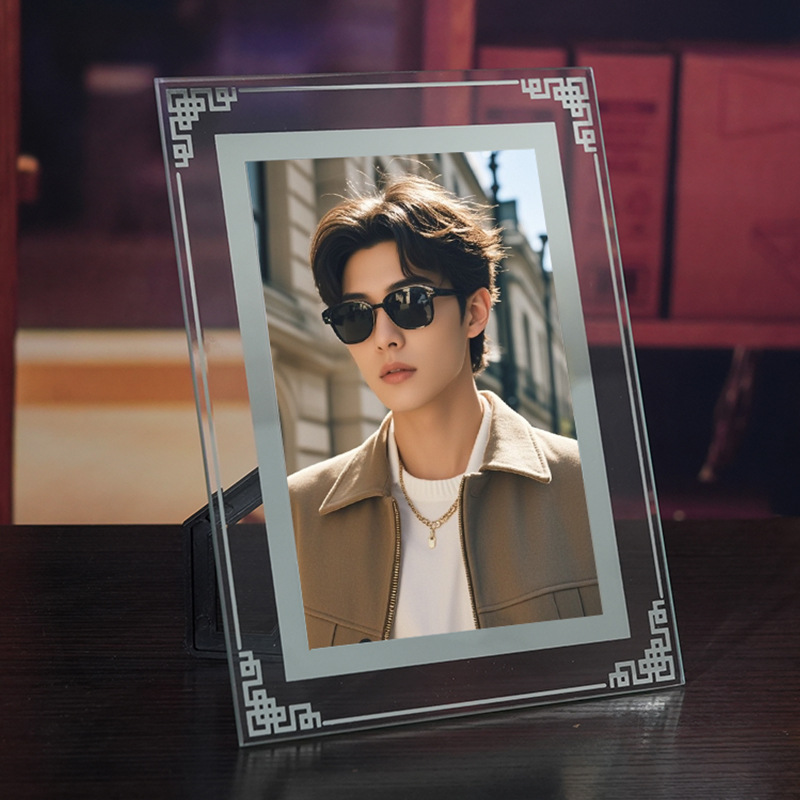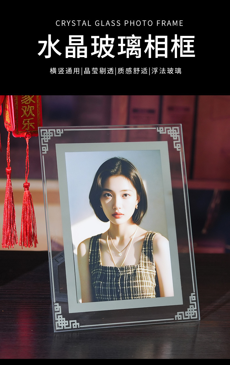 간단한 투명 크리스탈 유리 사진 프레임 6개 6inch 사진 프레임 가로 프레임 탁상 부모-자식 사진 디스플레이 프레임 도매