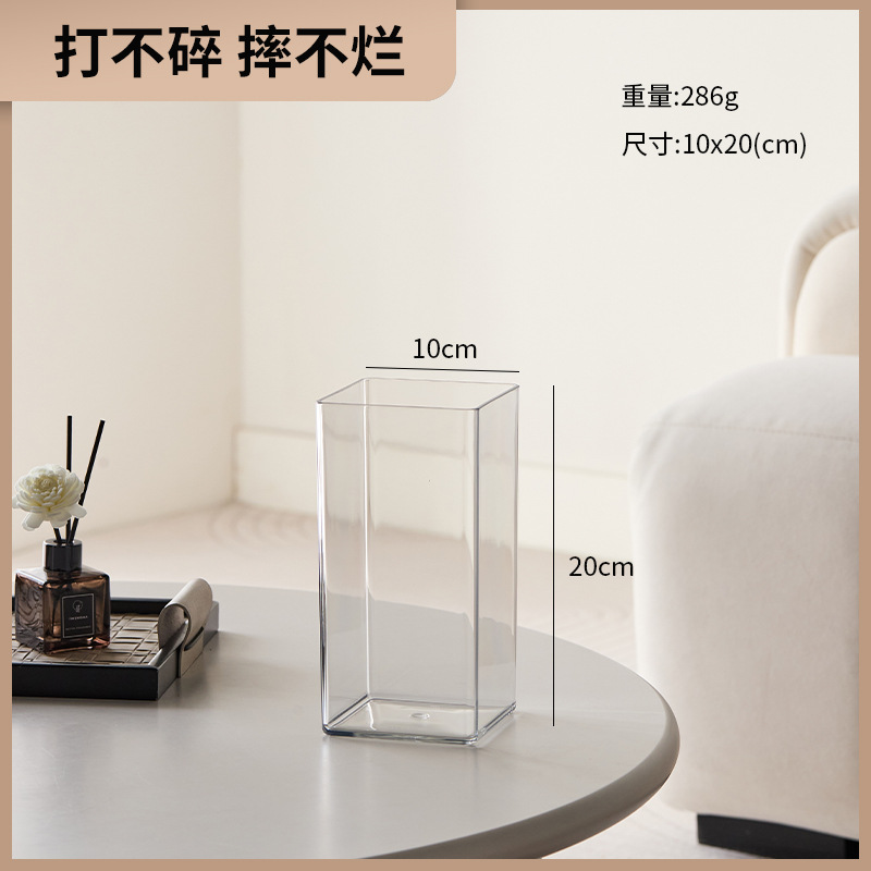 아크릴 가을 꽃병 수경 꽃꽂이 풍부한 대나무 투명 사각형 직선 튜브 꽃 장식 거실 작은스토어 가기