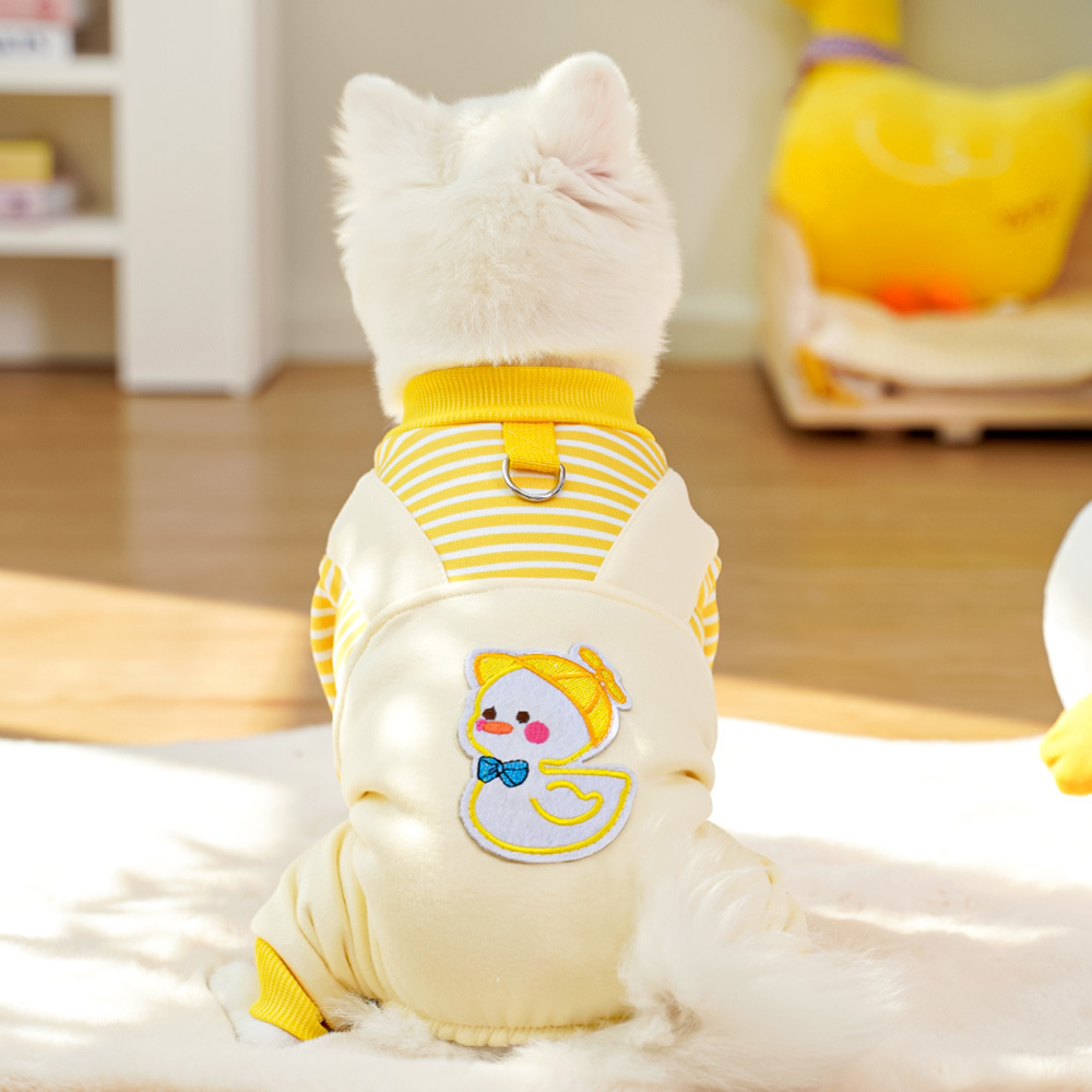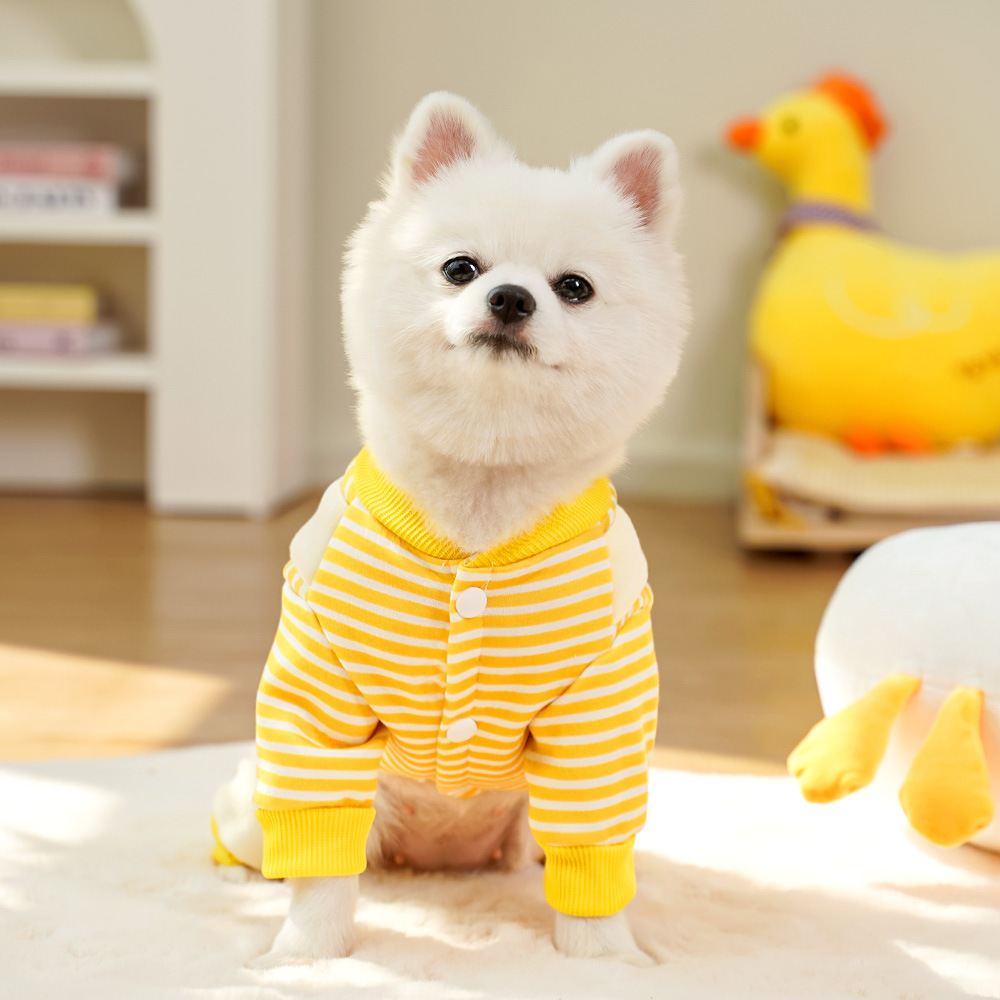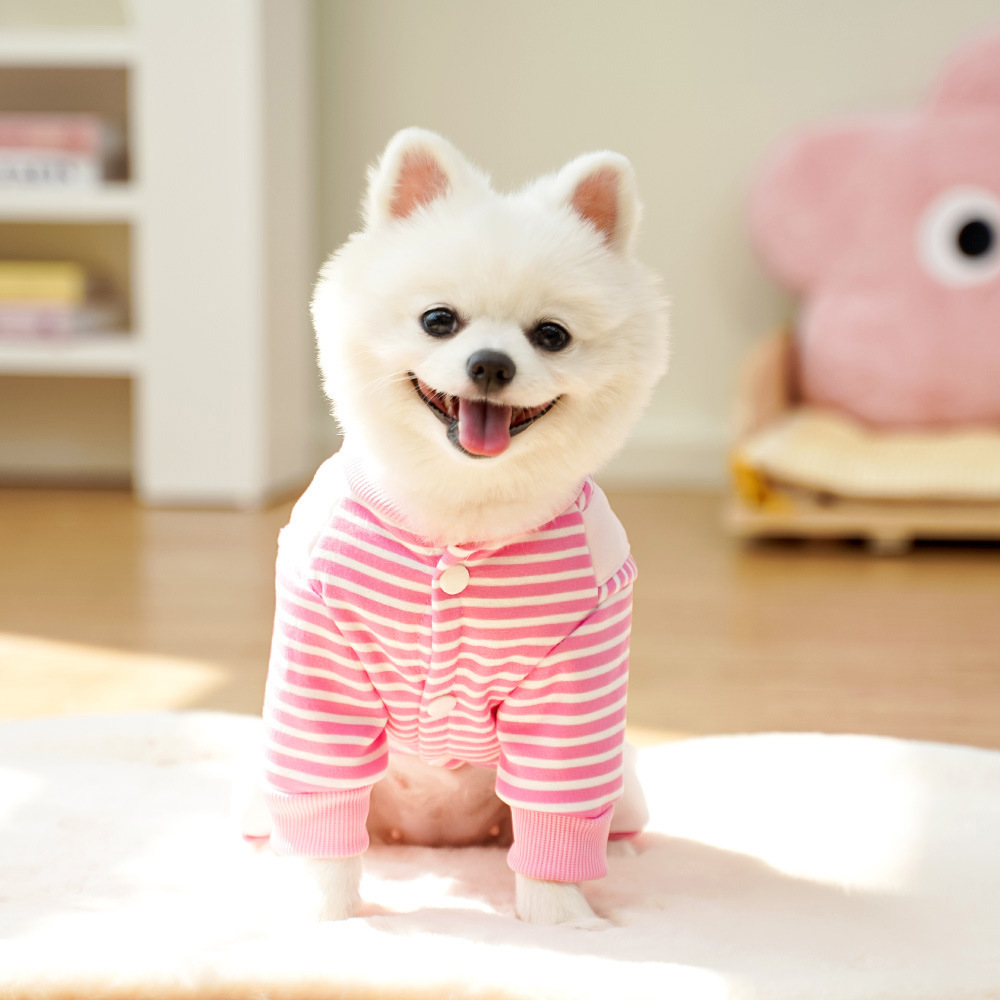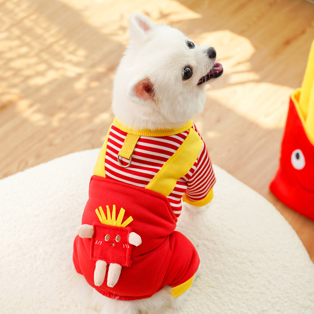애완견 개 옷 고양이 가을과 겨울 기모 땀 용품 줄무늬 프랑스 튀김 중간 개 Corky Fa Dou 비극
