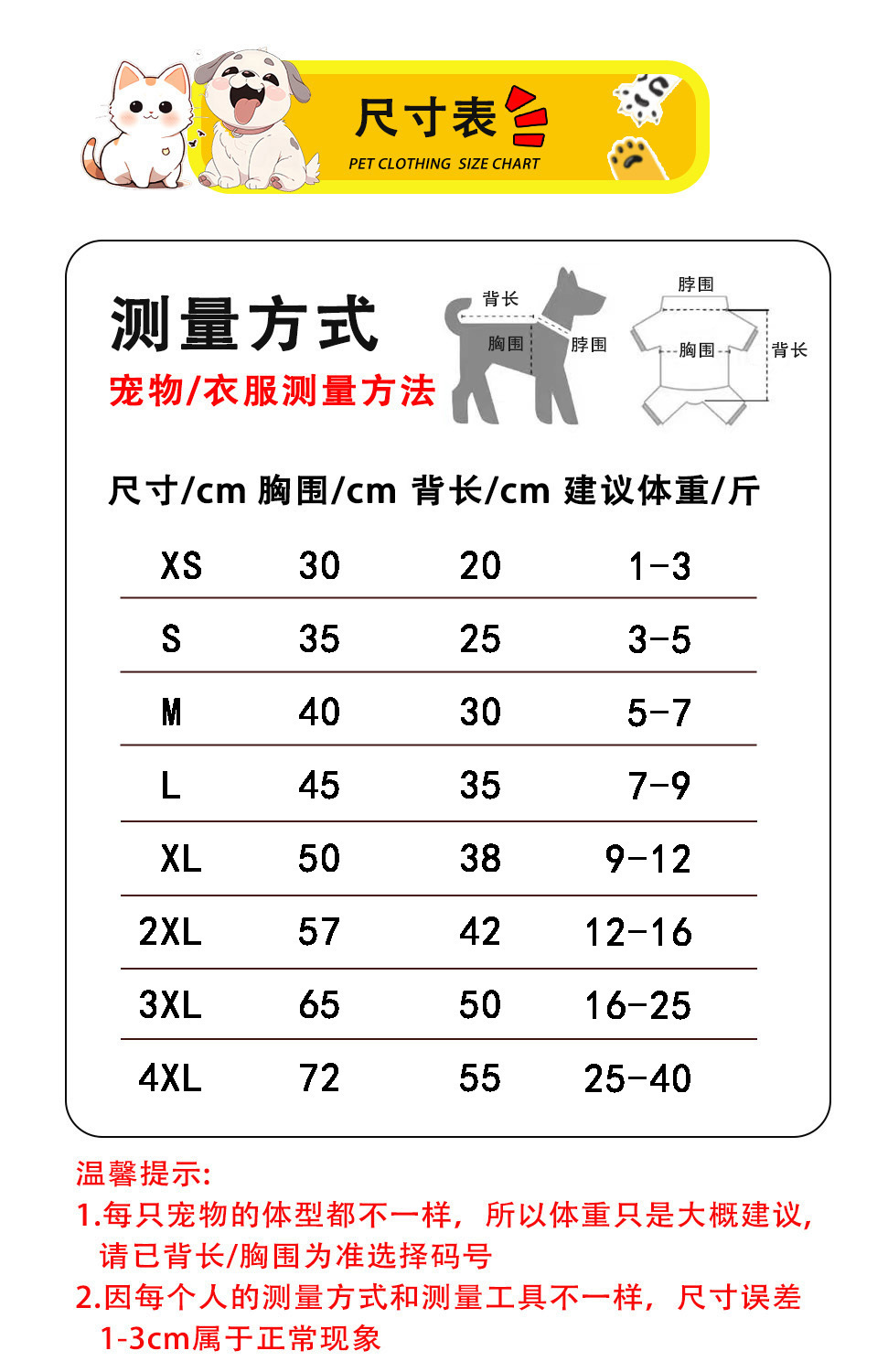 • XS (가슴둘레 30cm 0.5-1.5kg 애완동물)