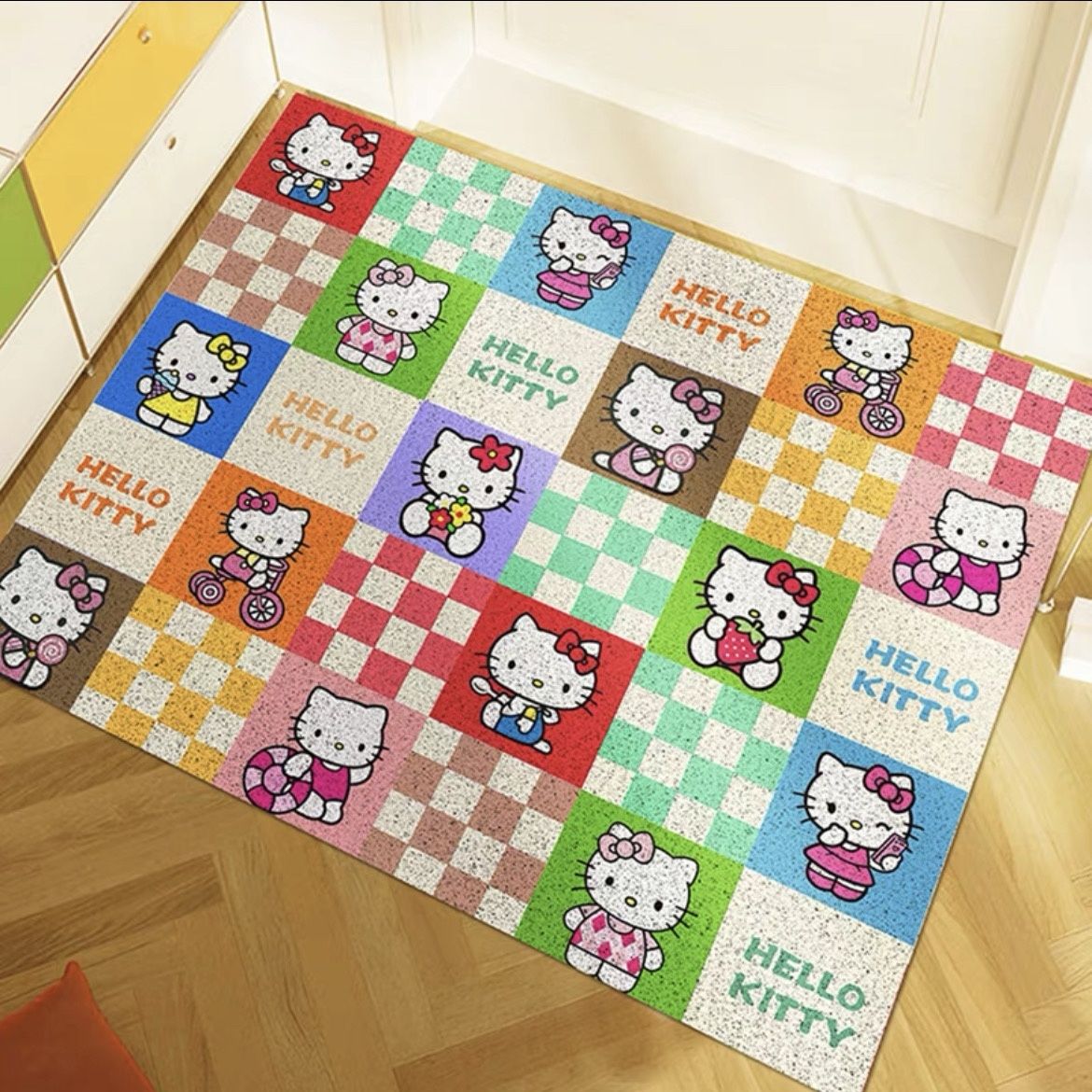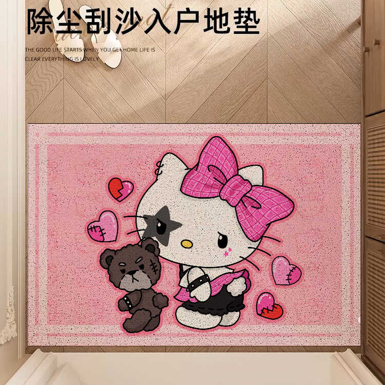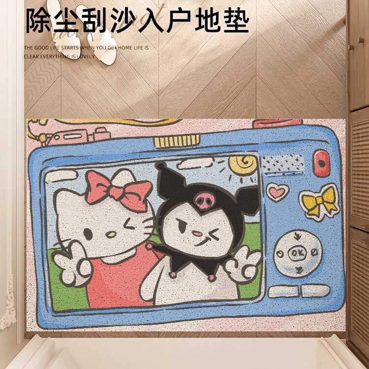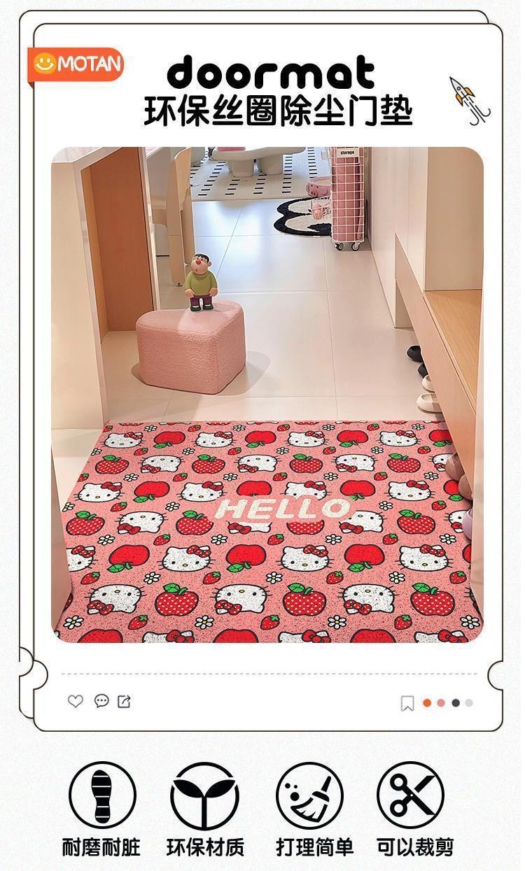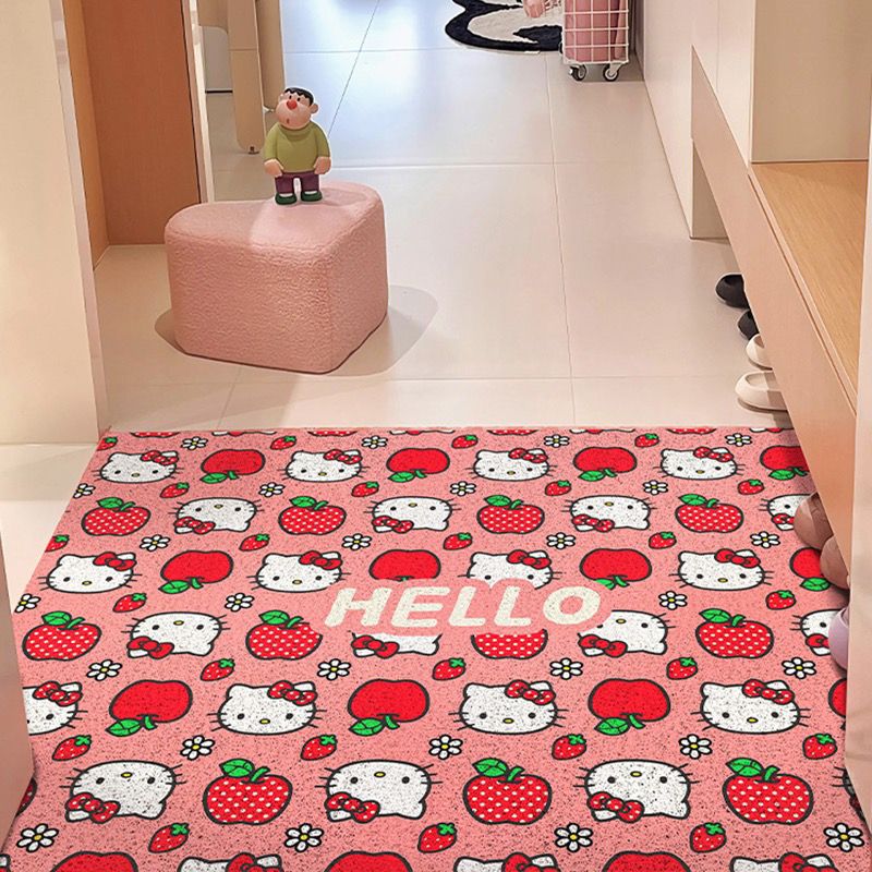 Q버전 헬로키티 먼지 제거용 실링크 도어매트, 가정용 현관 매트, 만화풍 카펫, 절단 가능, 미끄럼 방지스토어 가기