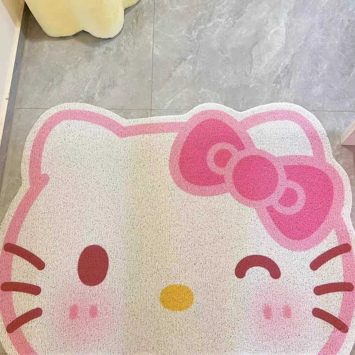 Q버전 헬로키티 먼지 제거용 실링크 도어매트, 가정용 현관 매트, 만화풍 카펫, 절단 가능, 미끄럼 방지