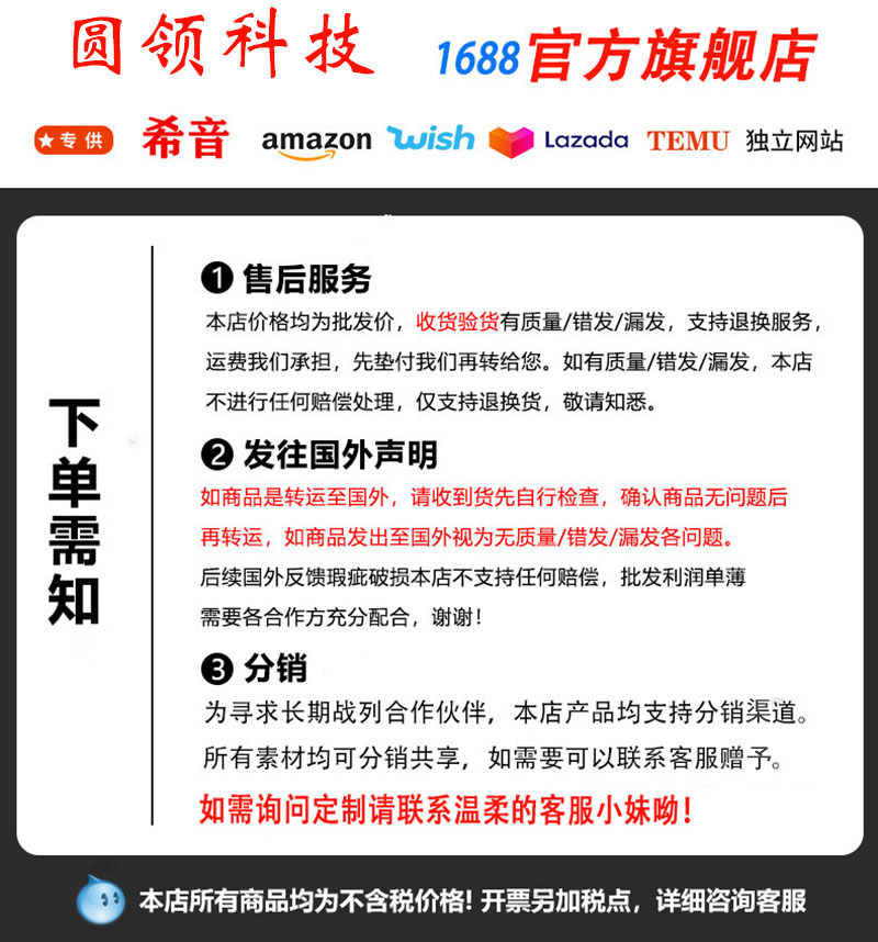 1688온라인 사이트에서 검색된 상품입니다. 알리타플에서는 상품검색/현지구매(구매대행)/국제배송 업무만 제공해드립니다. 해당 상품의 품질 및 상태에 대해서는 확인해 드릴 수 없고 해당 물건이 입고가 된 후에 검수과정을 거쳐야 확인이 가능합니다.