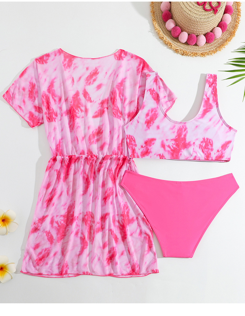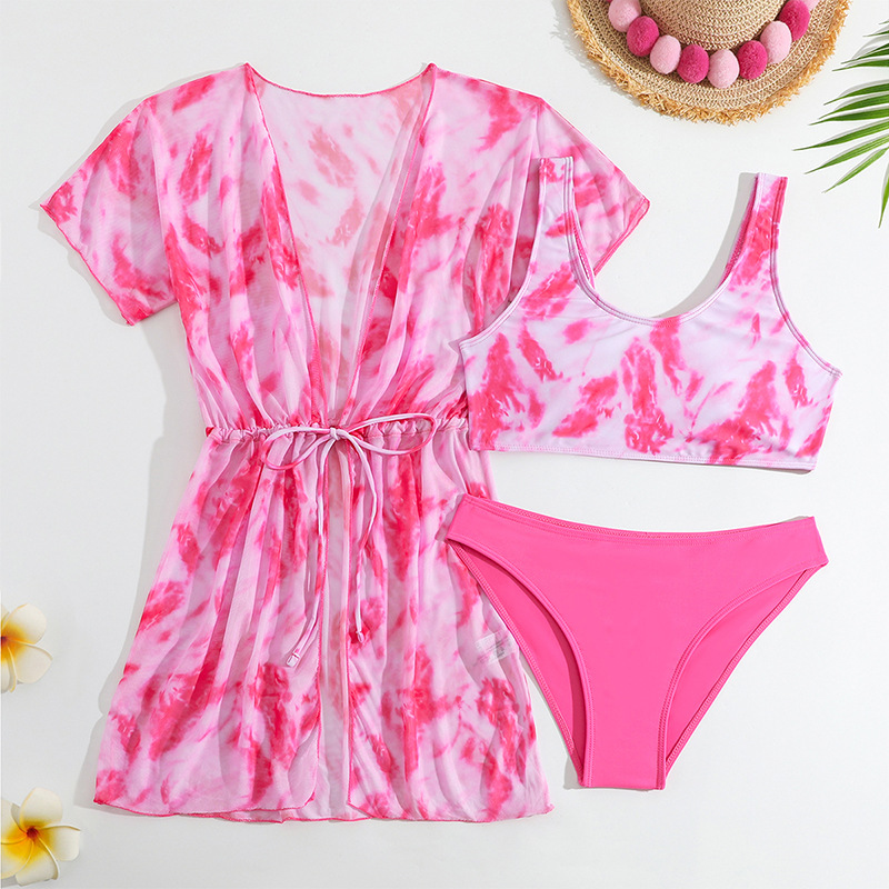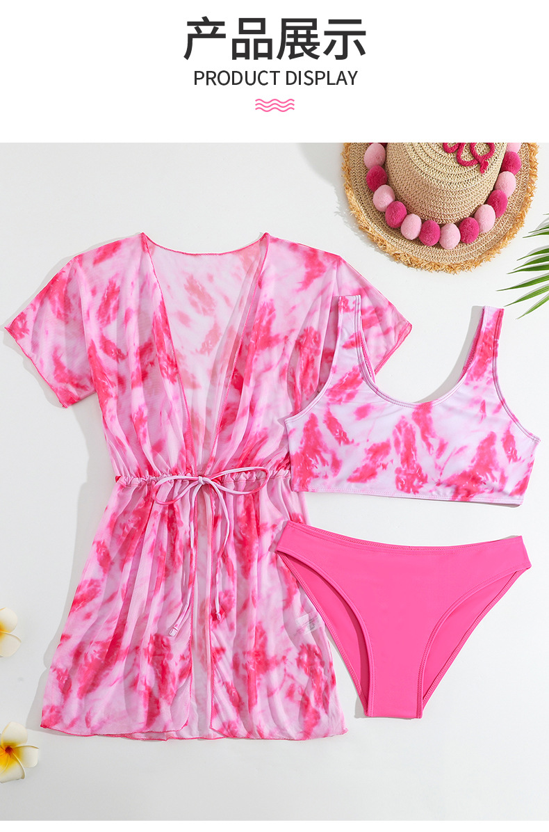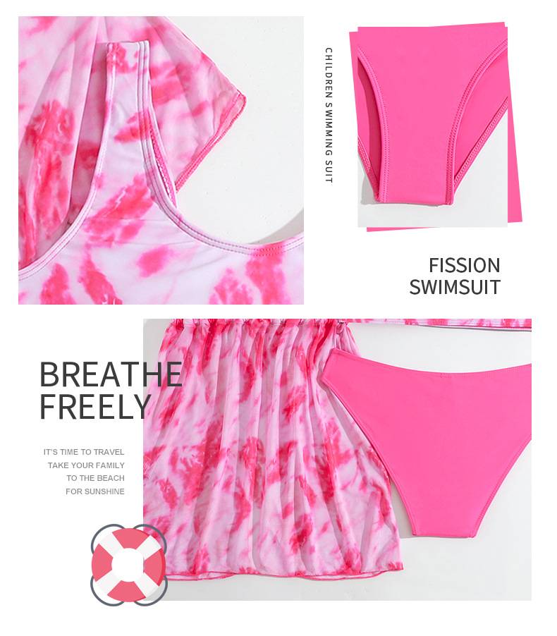 2026년 신상 아동 수영복 3종 세트 여아용 꽃무늬 분리형 수영복 중소형 아동용 크로스보더 여아 수영복