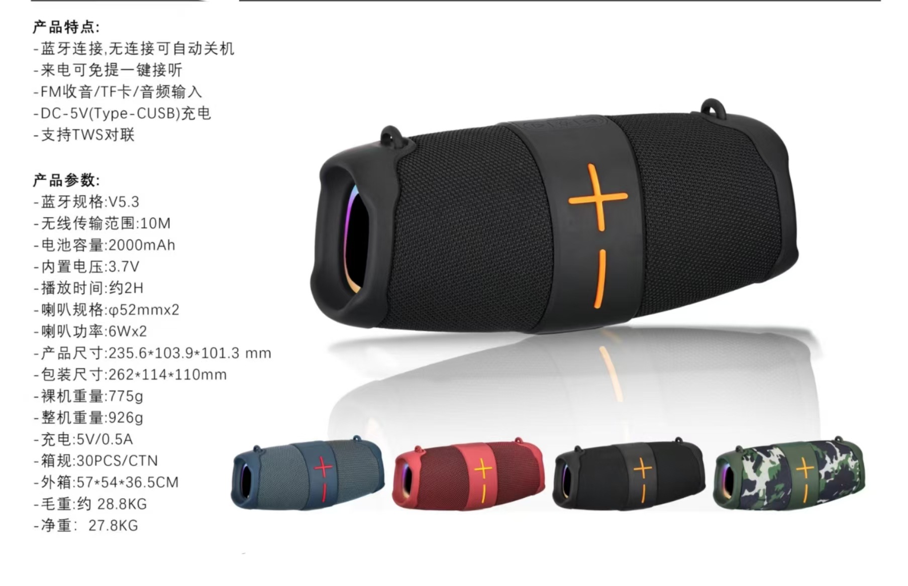 P192新款布艺防水战神蓝牙音响,RGB氛围灯桌面草坪低音炮
