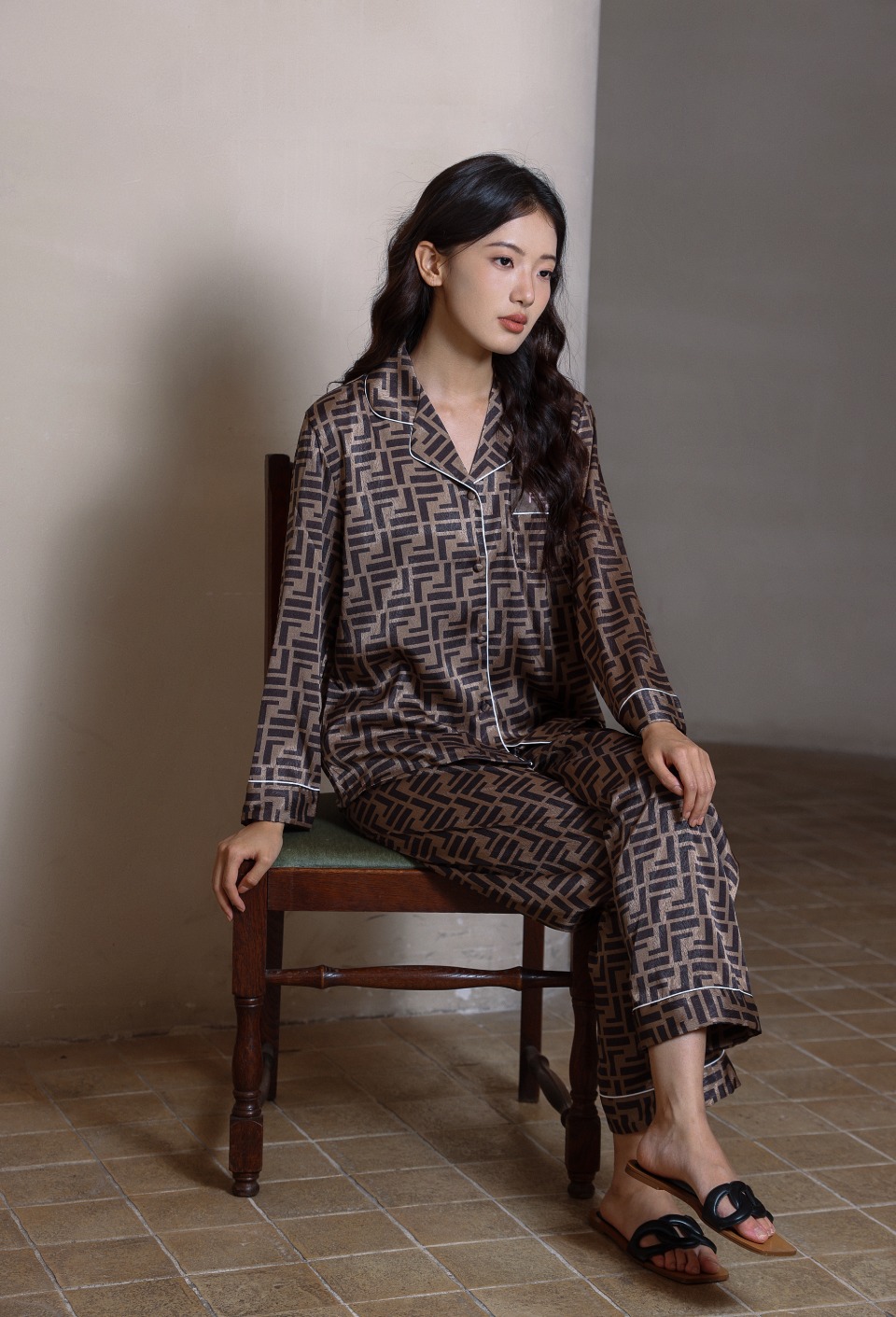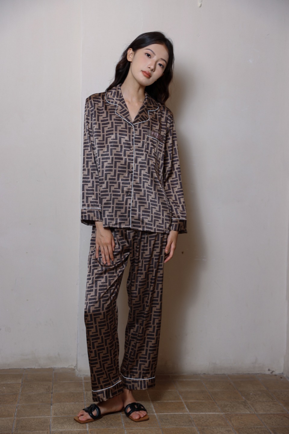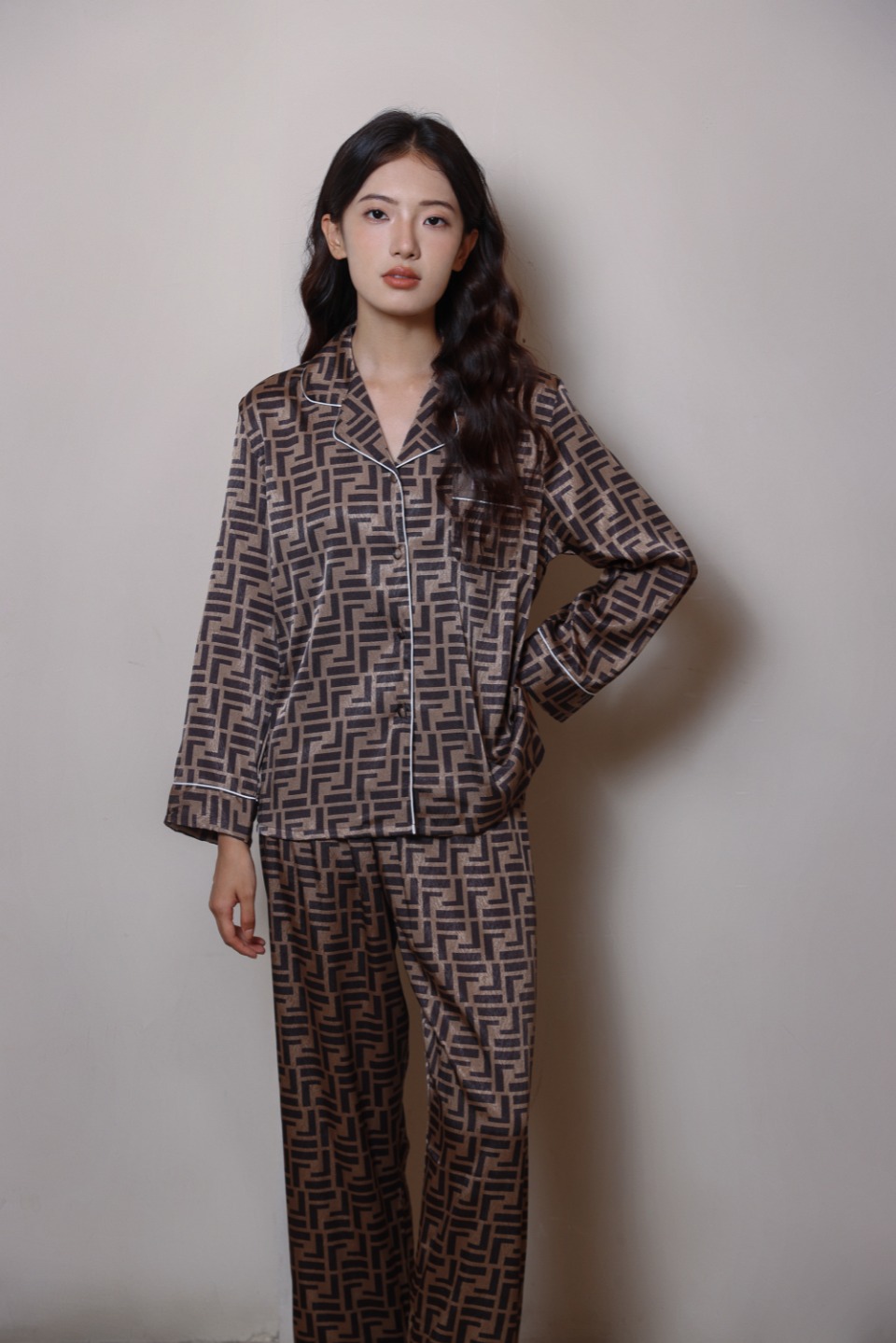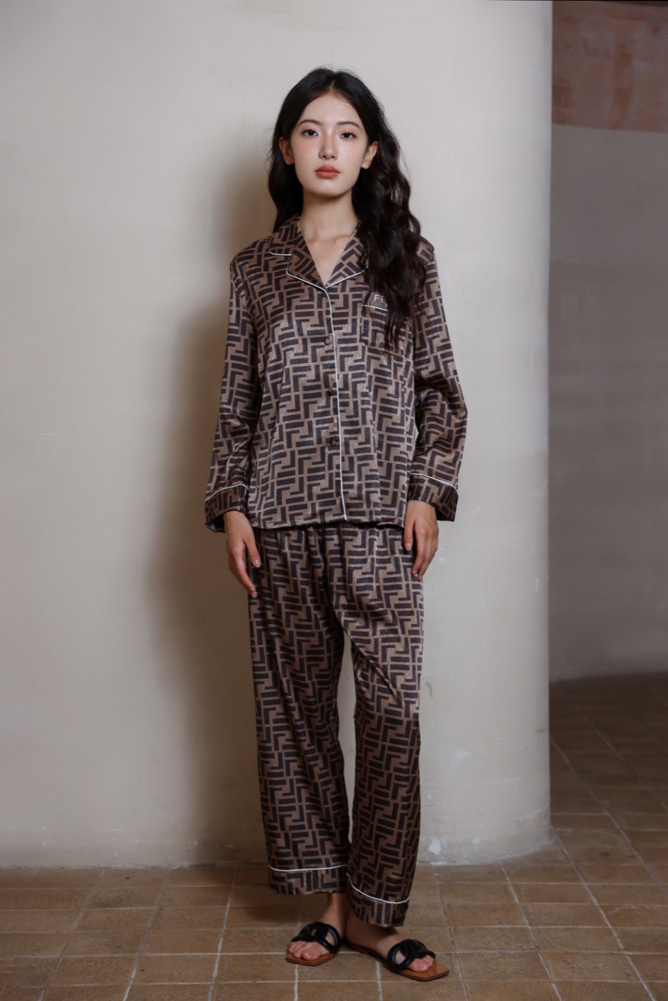 하이 엔드 라이트 럭셔리 잠옷 여성의 봄과 가을 긴 소매 세트 실크 2024 새로운 스타일 홈 의류 한국 인쇄 얇은 스타일스토어 가기