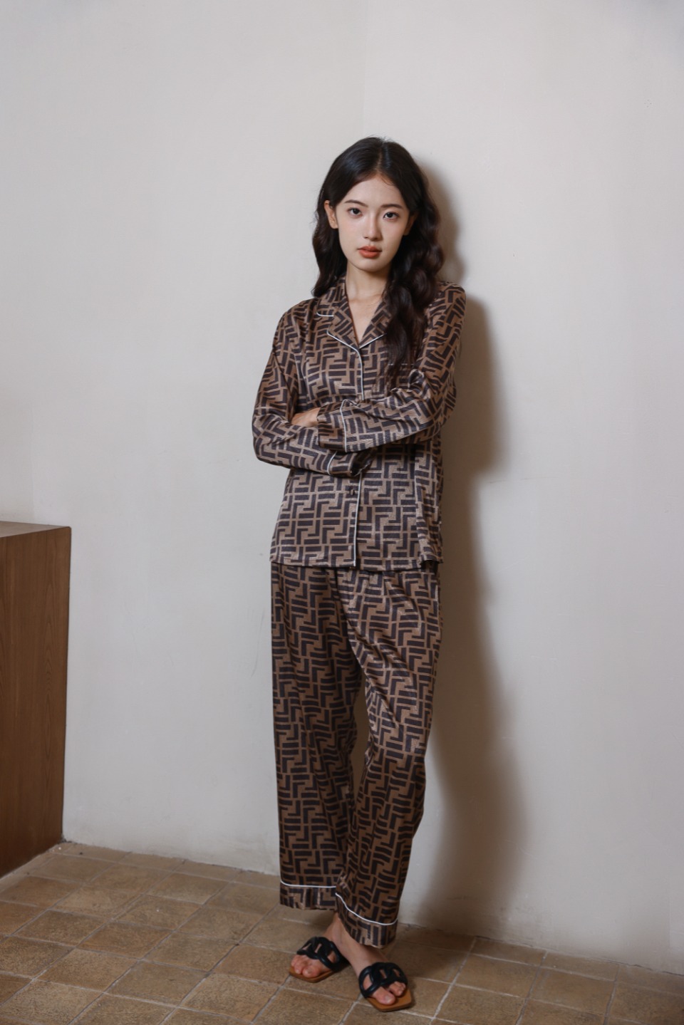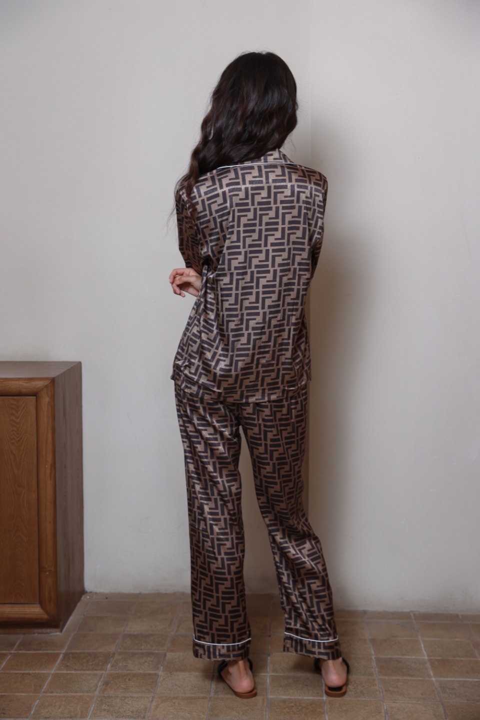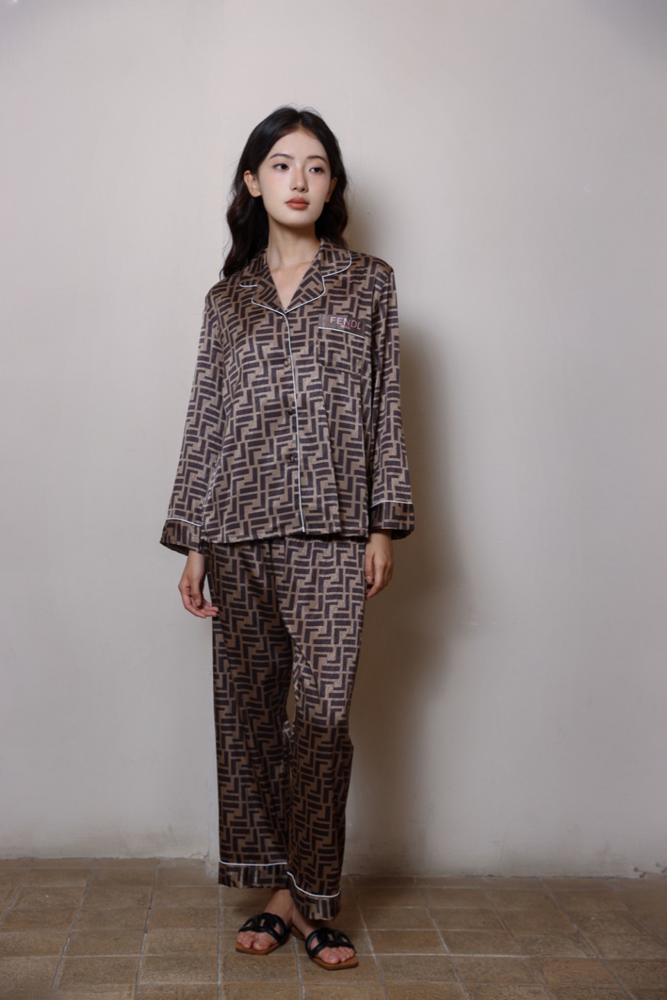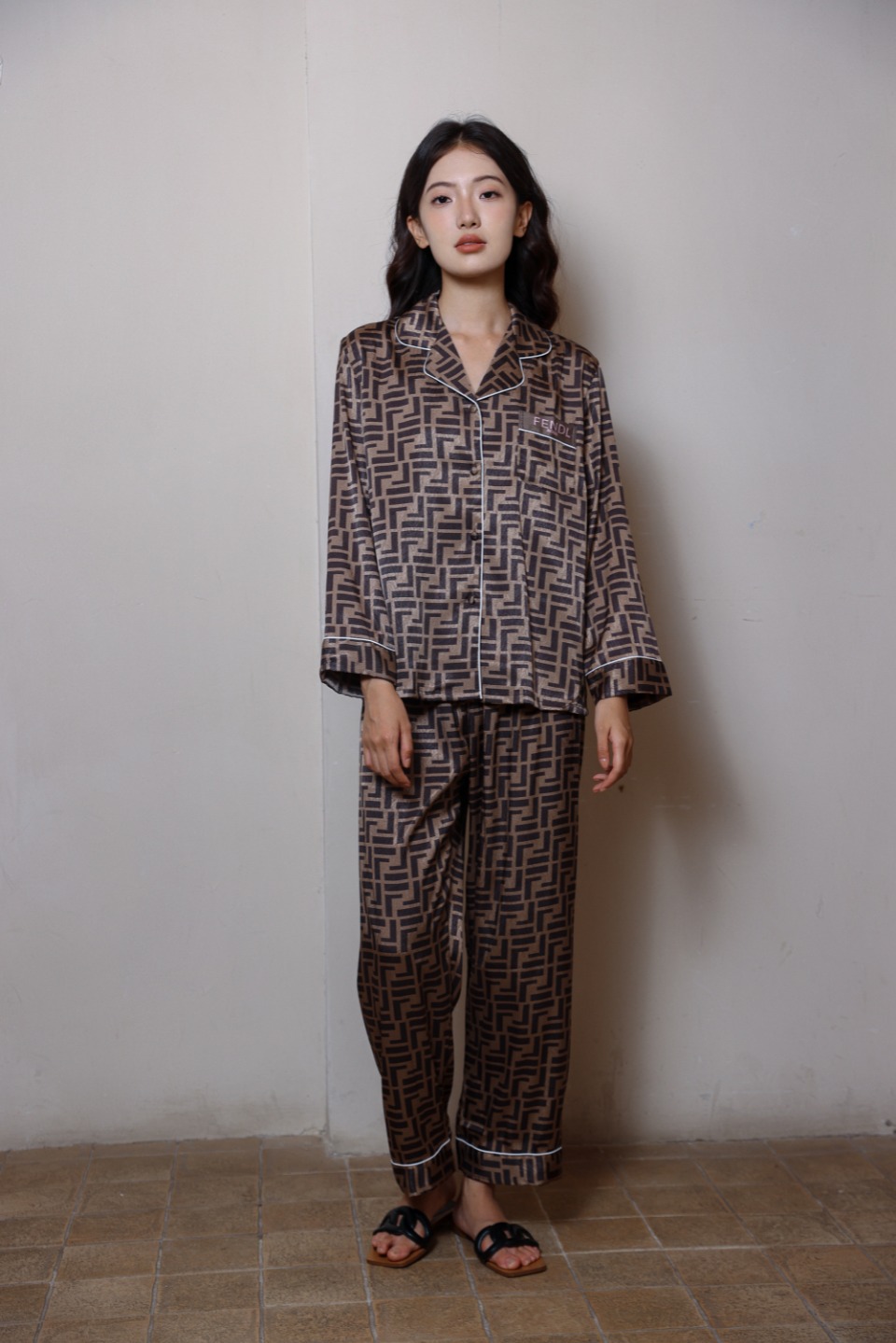 하이 엔드 라이트 럭셔리 잠옷 여성의 봄과 가을 긴 소매 세트 실크 2024 새로운 스타일 홈 의류 한국 인쇄 얇은 스타일스토어 가기
