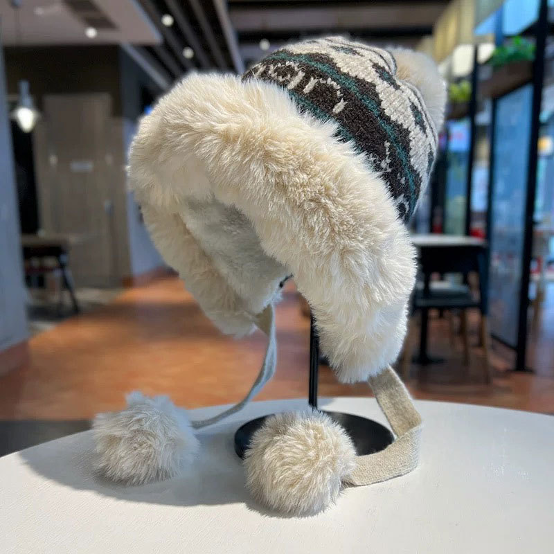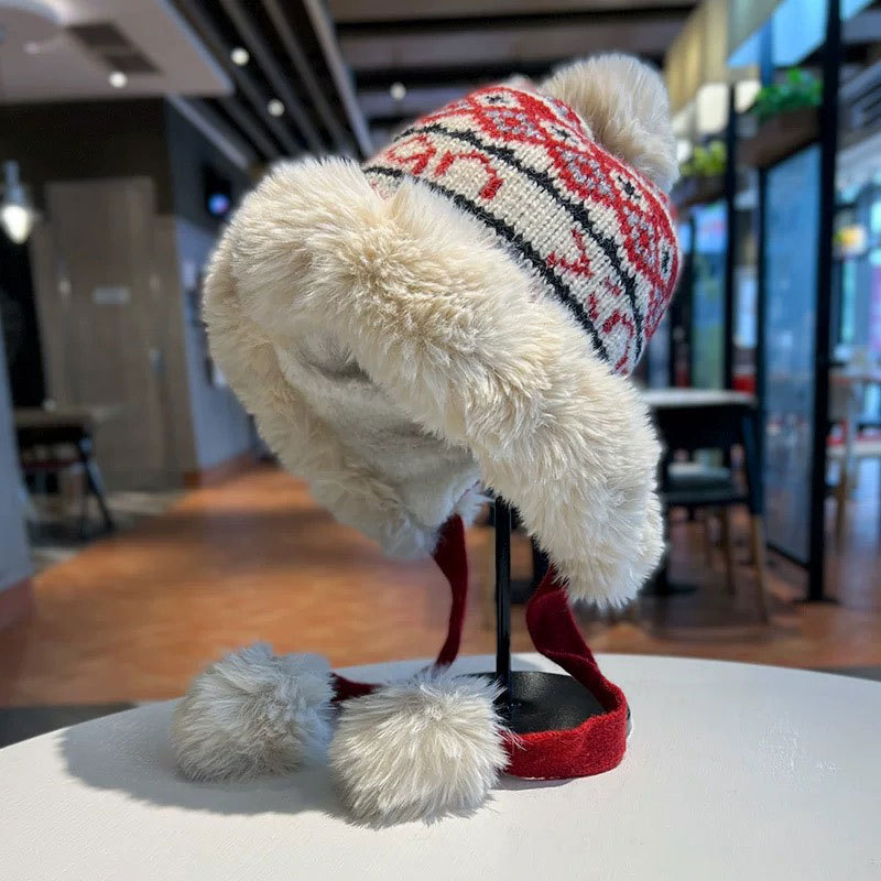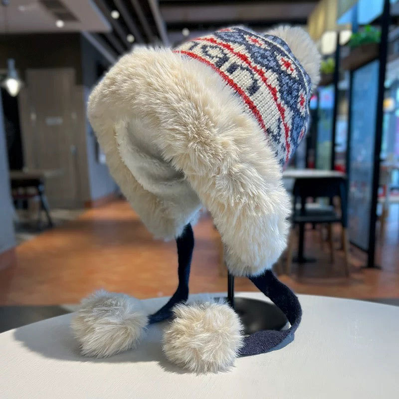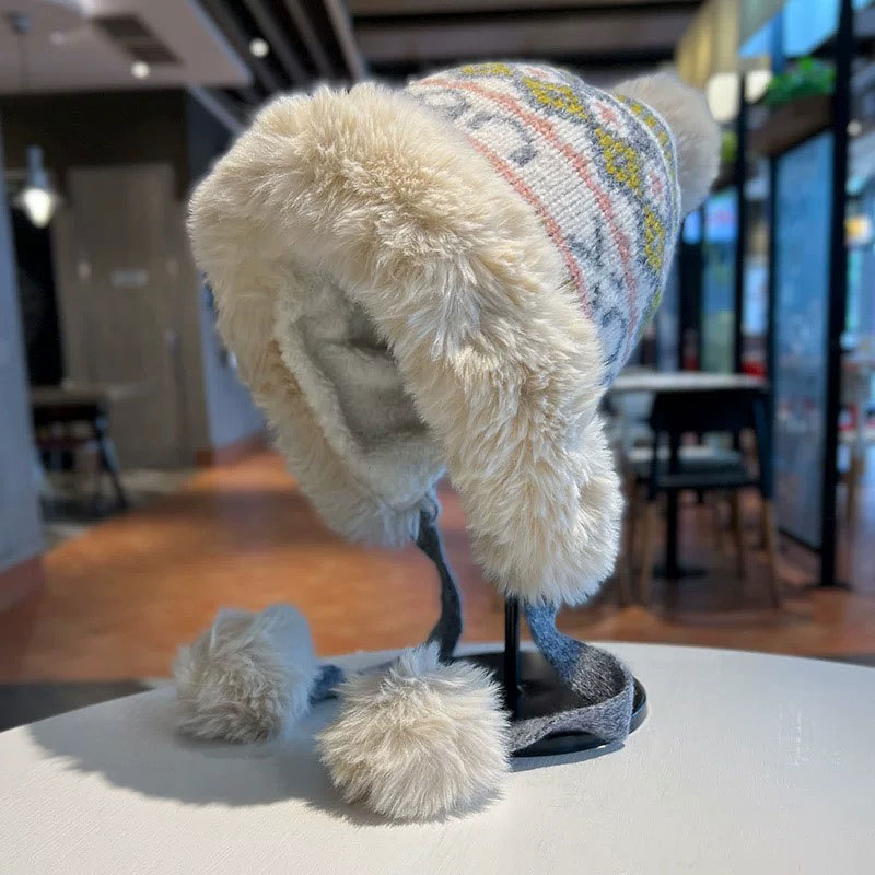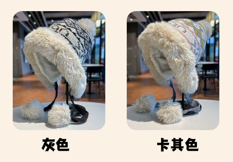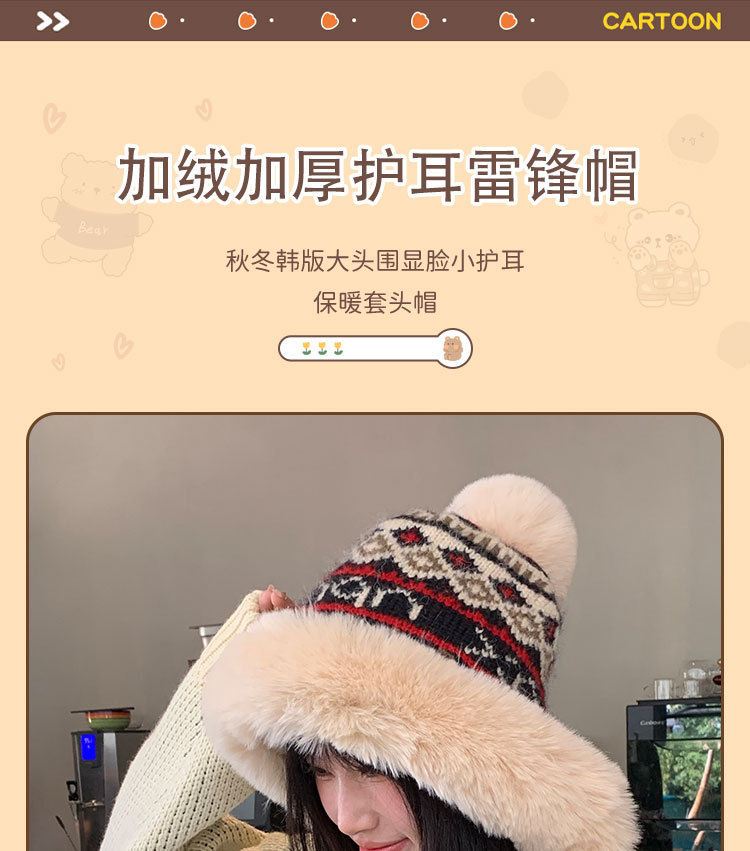 새로운 양모 모자 가을과 겨울 여성의 두꺼운 귀 보호 니트 모자 따뜻한 모든 경기 얼굴-작은 승마 방한 레이 펑 모자스토어 가기