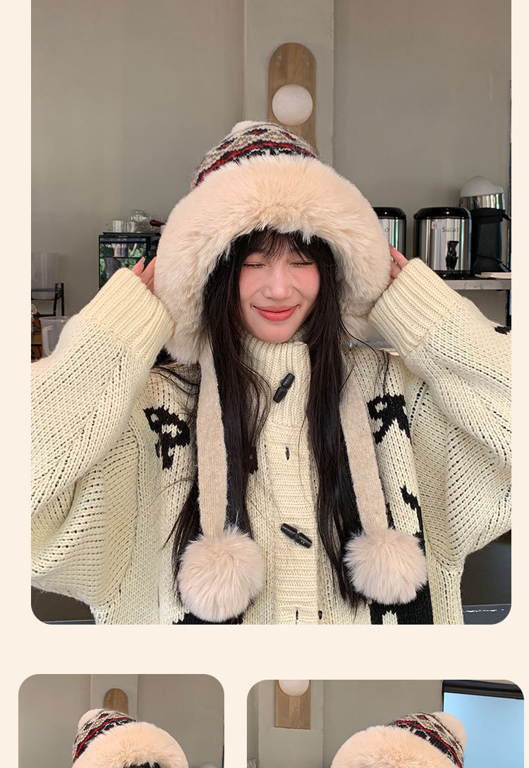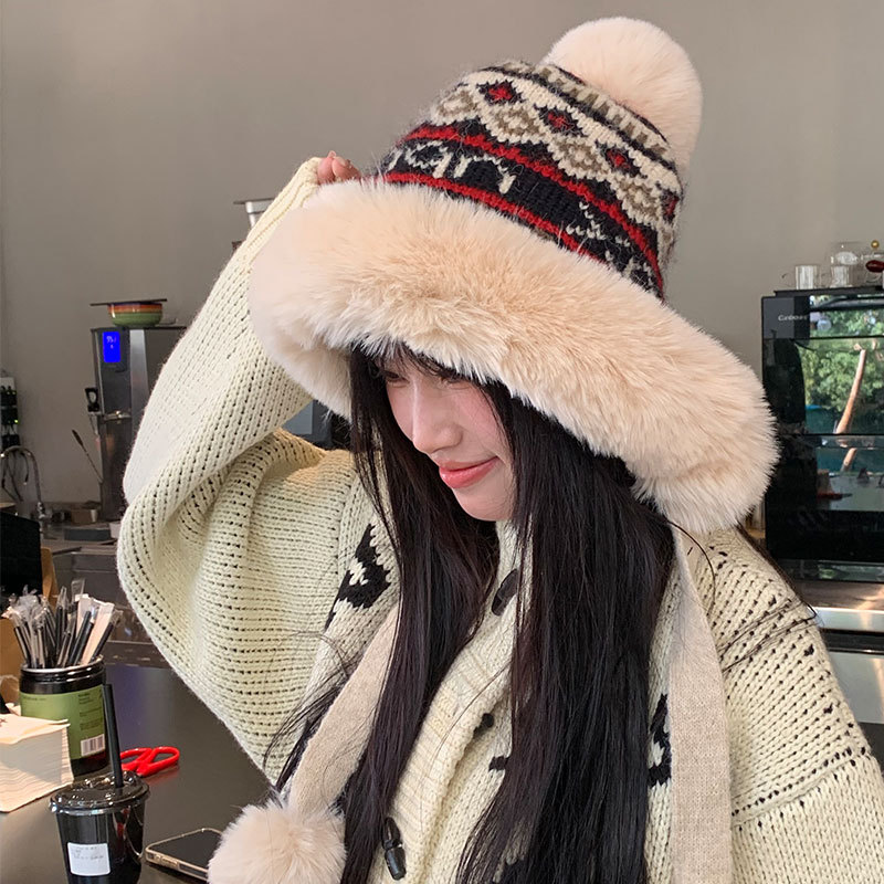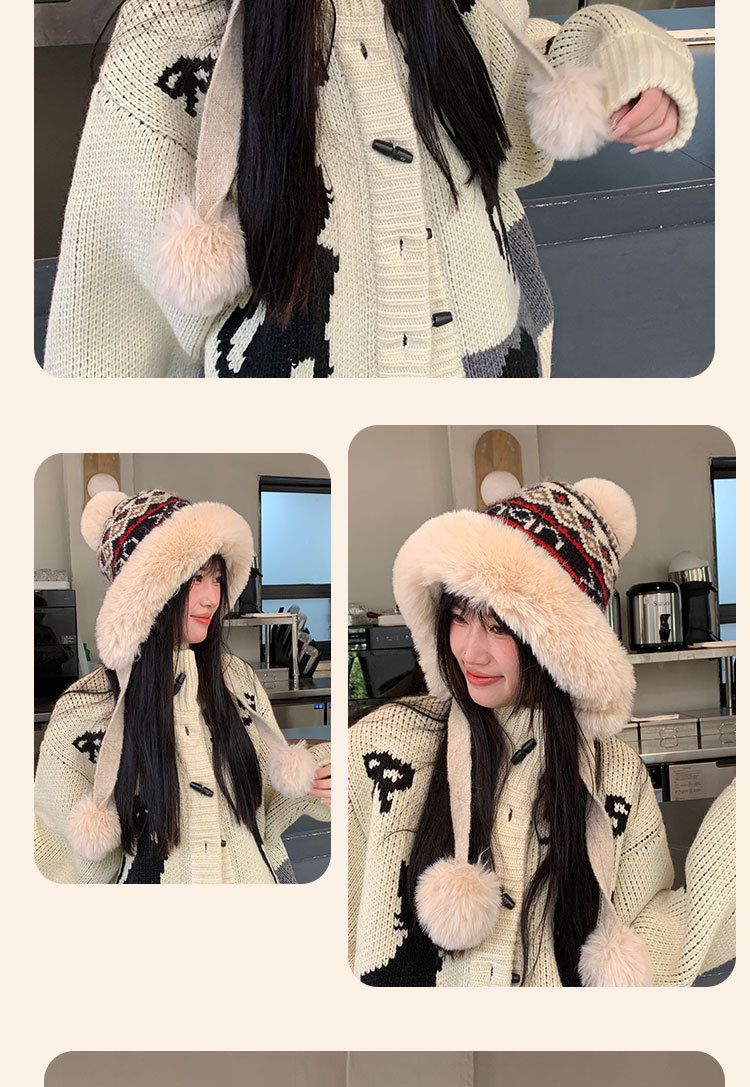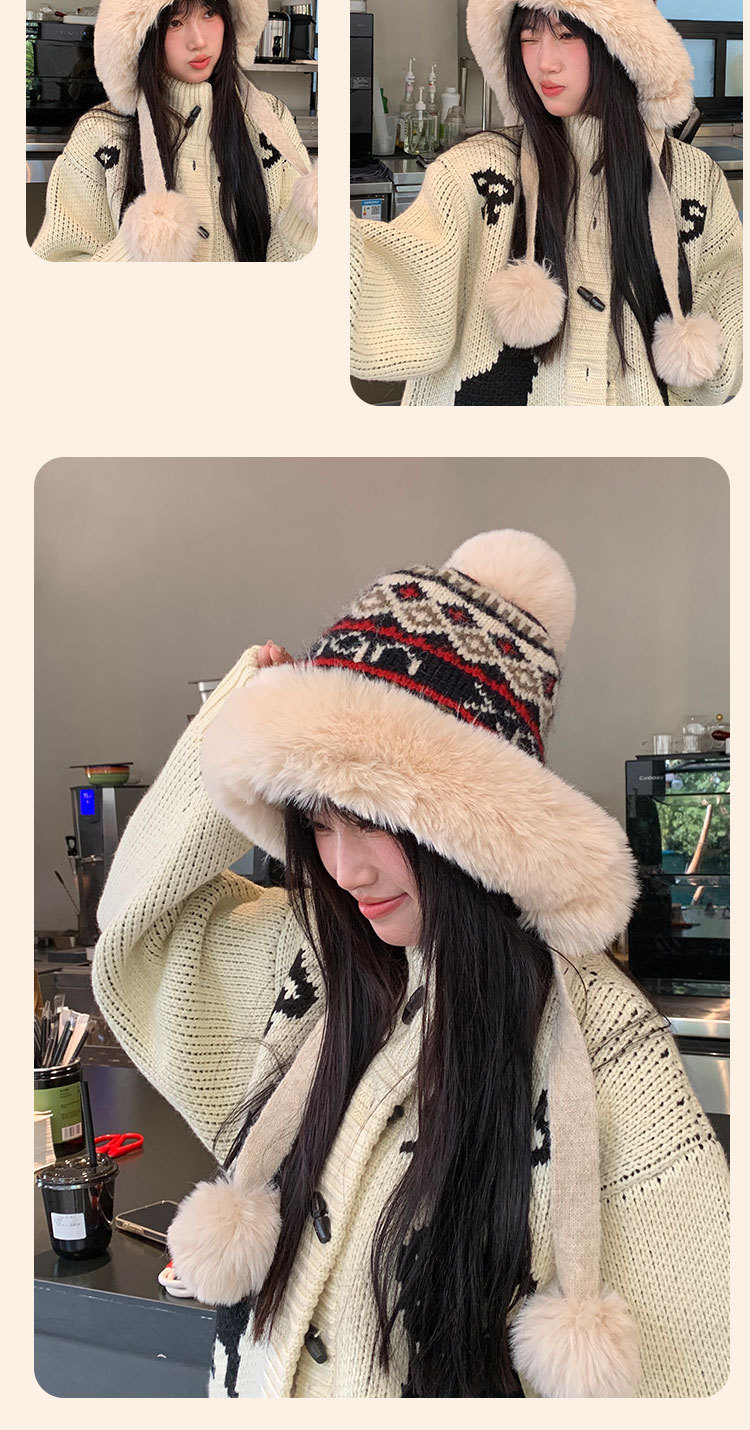 새로운 양모 모자 가을과 겨울 여성의 두꺼운 귀 보호 니트 모자 따뜻한 모든 경기 얼굴-작은 승마 방한 레이 펑 모자스토어 가기