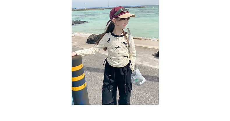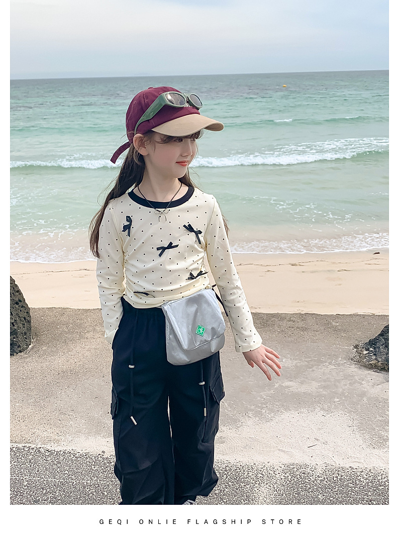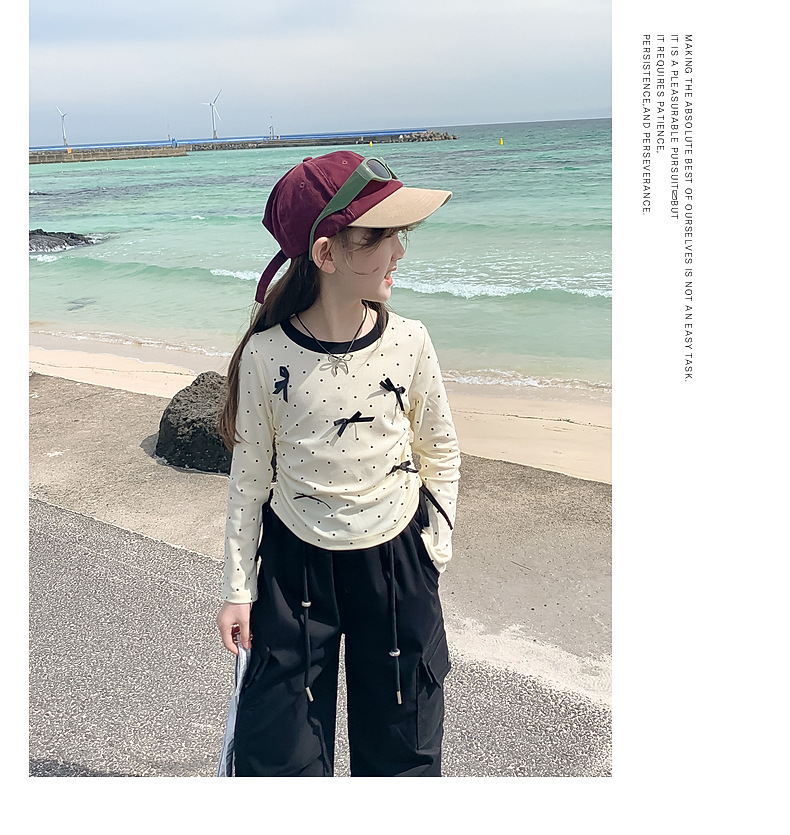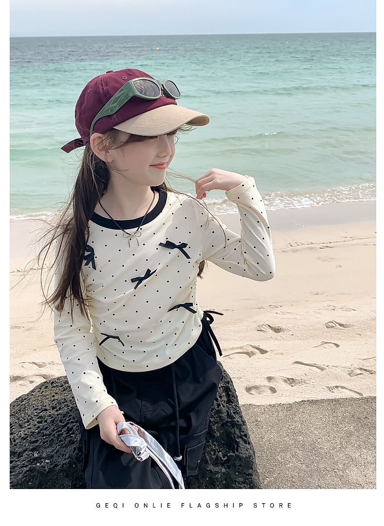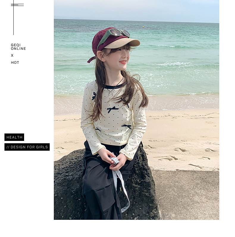 초가을 소녀 티셔츠 새로운 스타일 어린이 봄과 가을 긴 소매 소녀의 가을 웨이브 도트베이스 셔츠 최고 트렌디