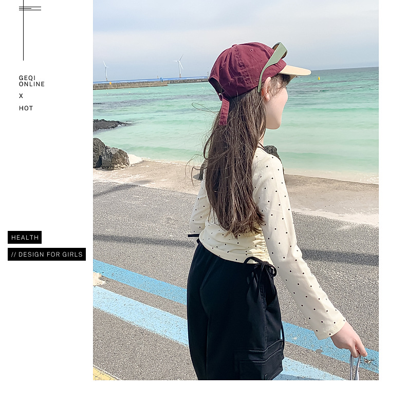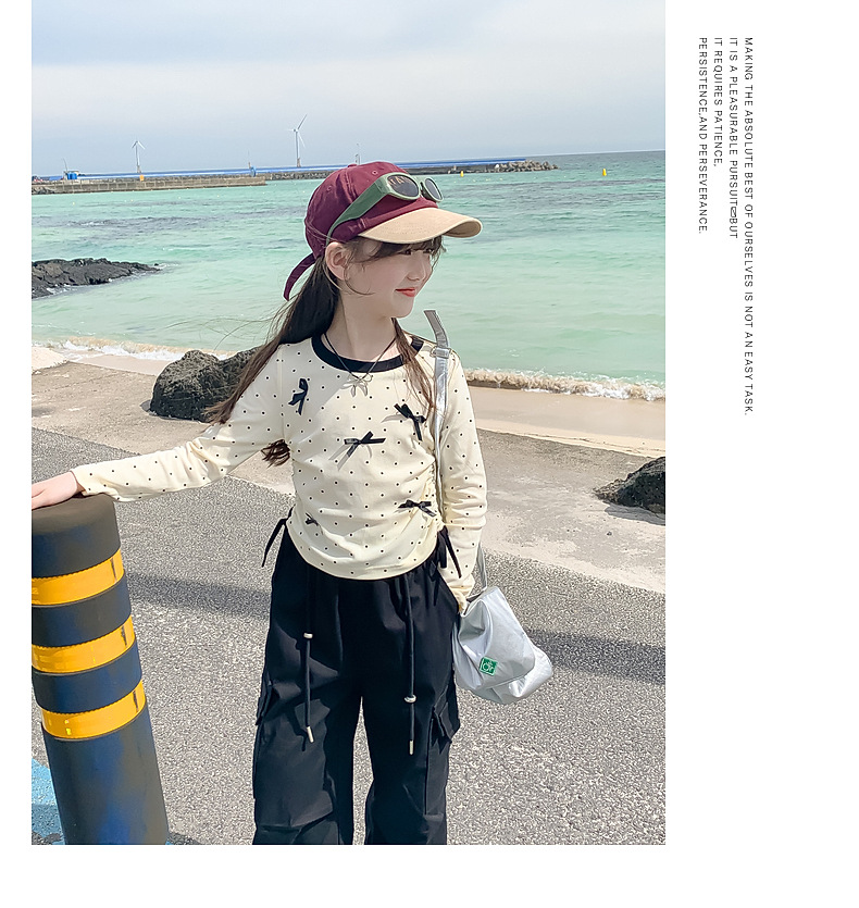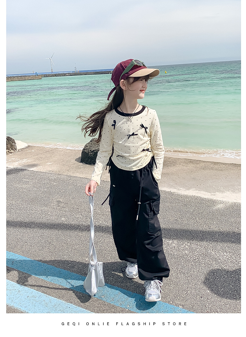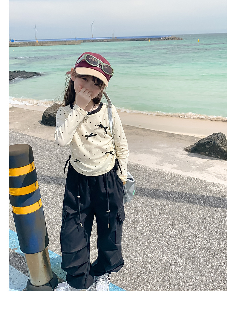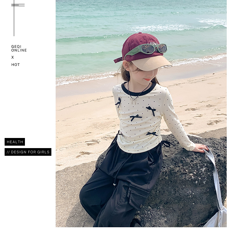 초가을 소녀 티셔츠 새로운 스타일 어린이 봄과 가을 긴 소매 소녀의 가을 웨이브 도트베이스 셔츠 최고 트렌디