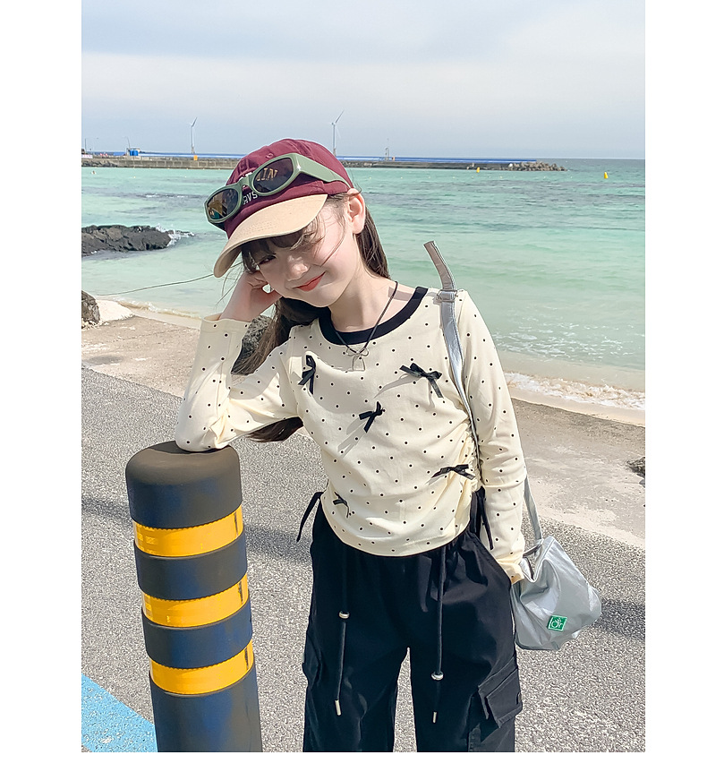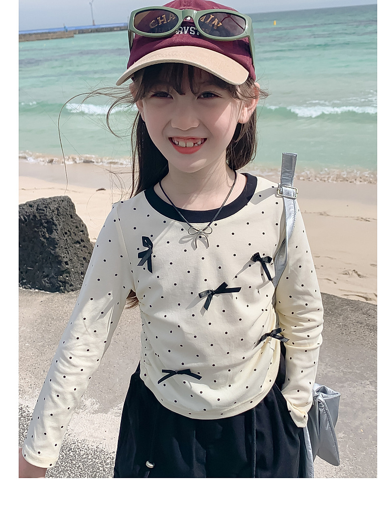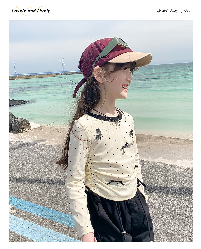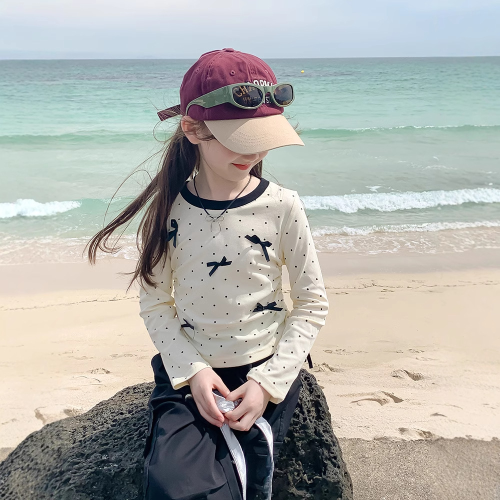 초가을 소녀 티셔츠 새로운 스타일 어린이 봄과 가을 긴 소매 소녀의 가을 웨이브 도트베이스 셔츠 최고 트렌디스토어 가기
