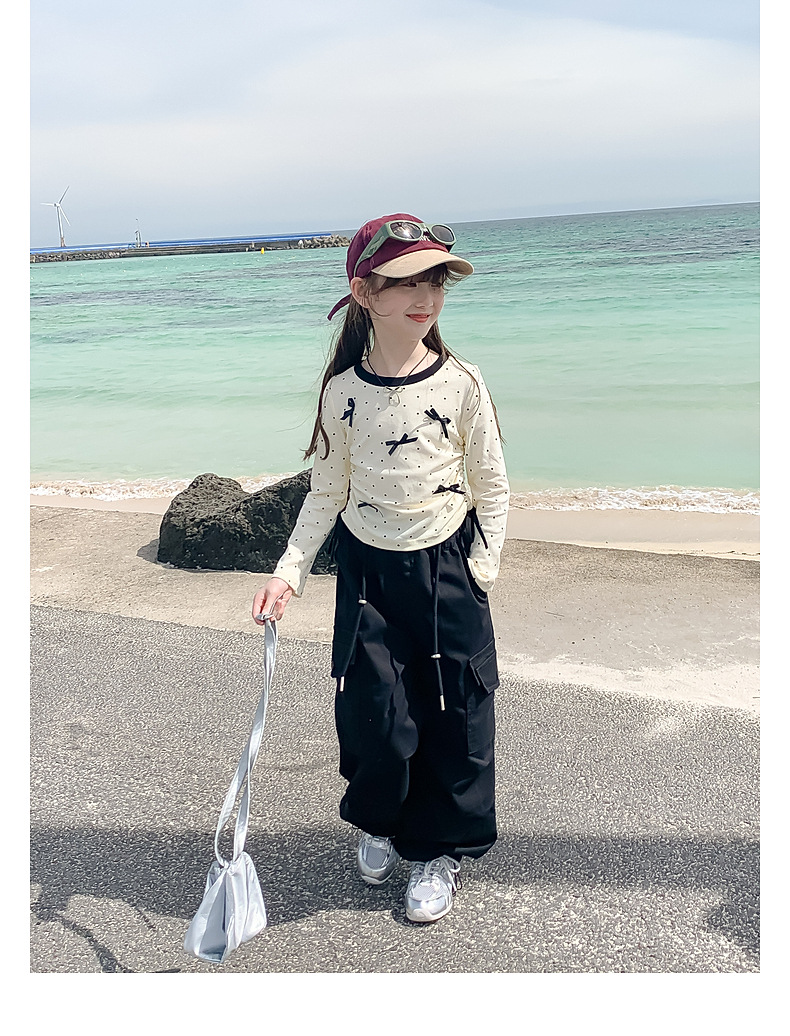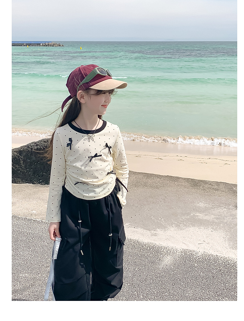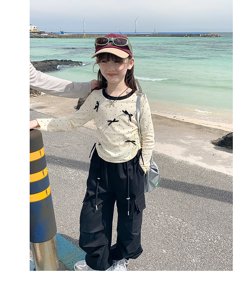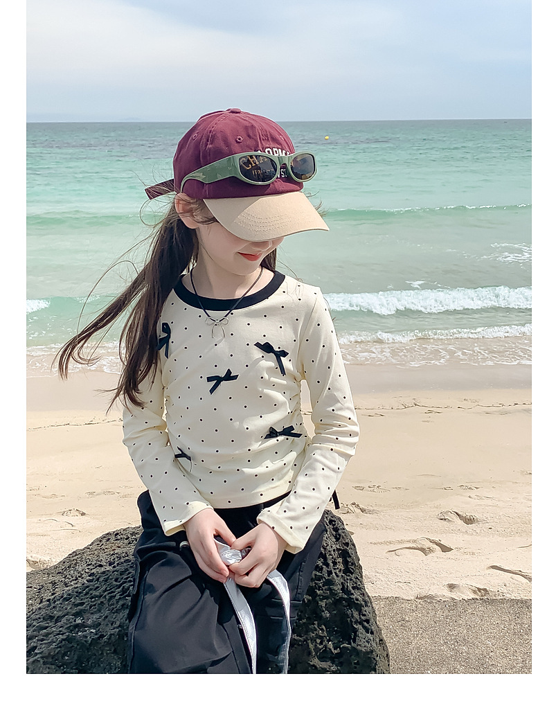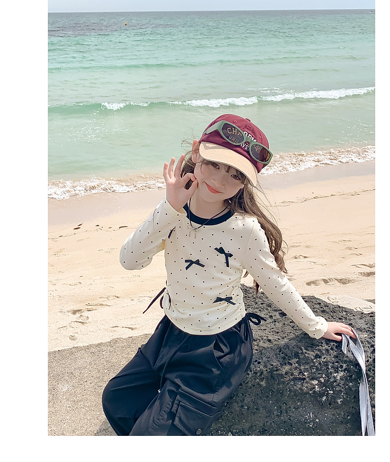 초가을 소녀 티셔츠 새로운 스타일 어린이 봄과 가을 긴 소매 소녀의 가을 웨이브 도트베이스 셔츠 최고 트렌디스토어 가기