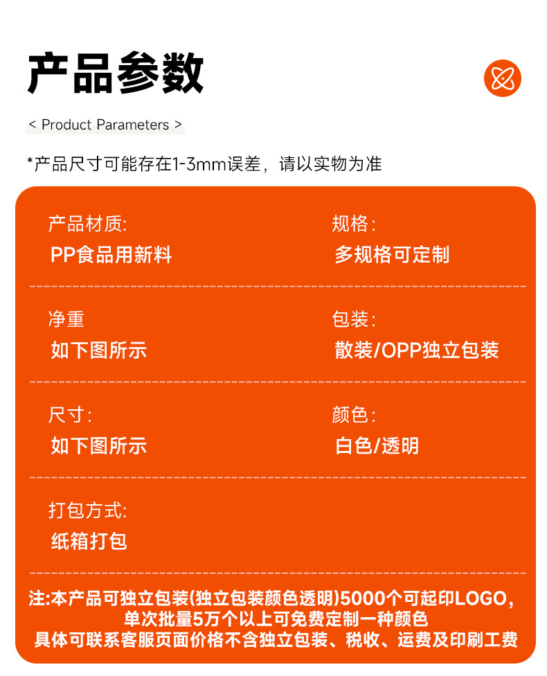 3.用料材质:全新PP