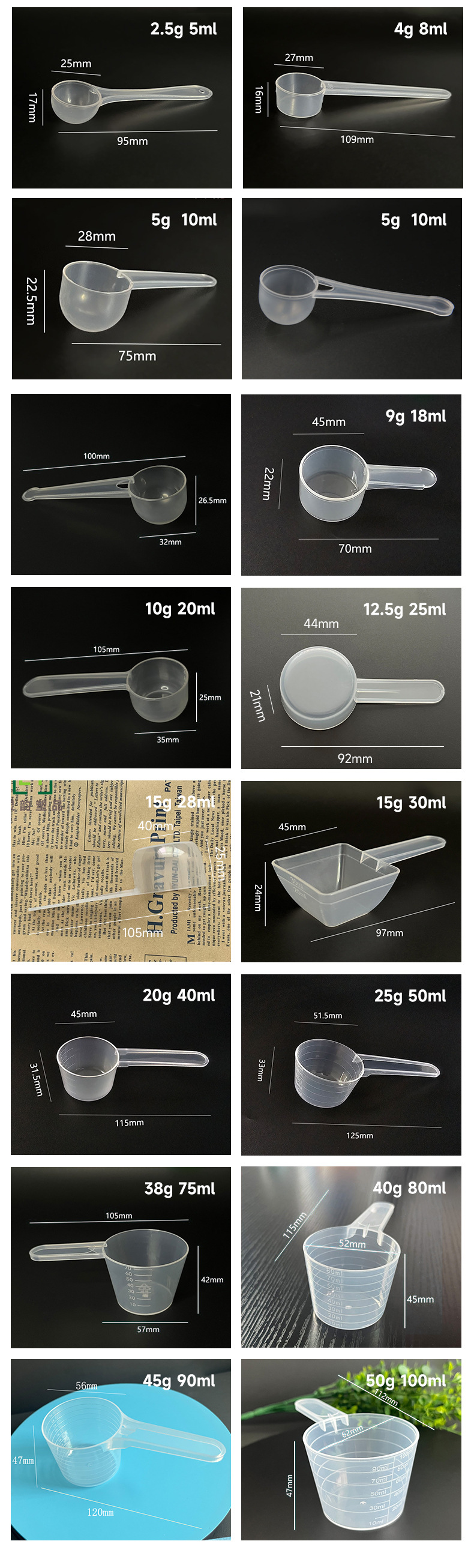 플라스틱 파우더 PP 정량 스푼 38g 75ml 투명 파우더 플랫 스푼 폭발성 소금 스푼 측정 스푼