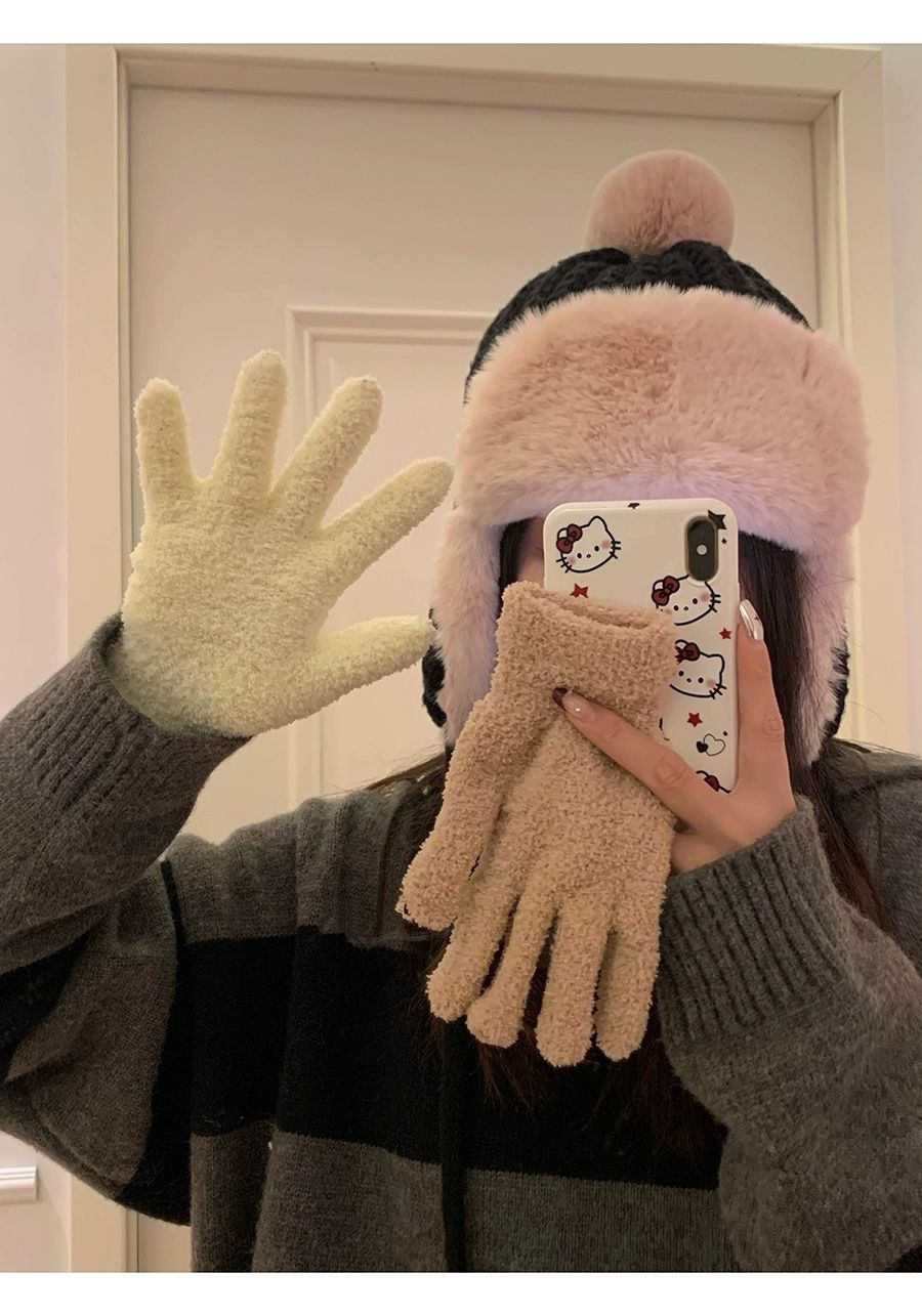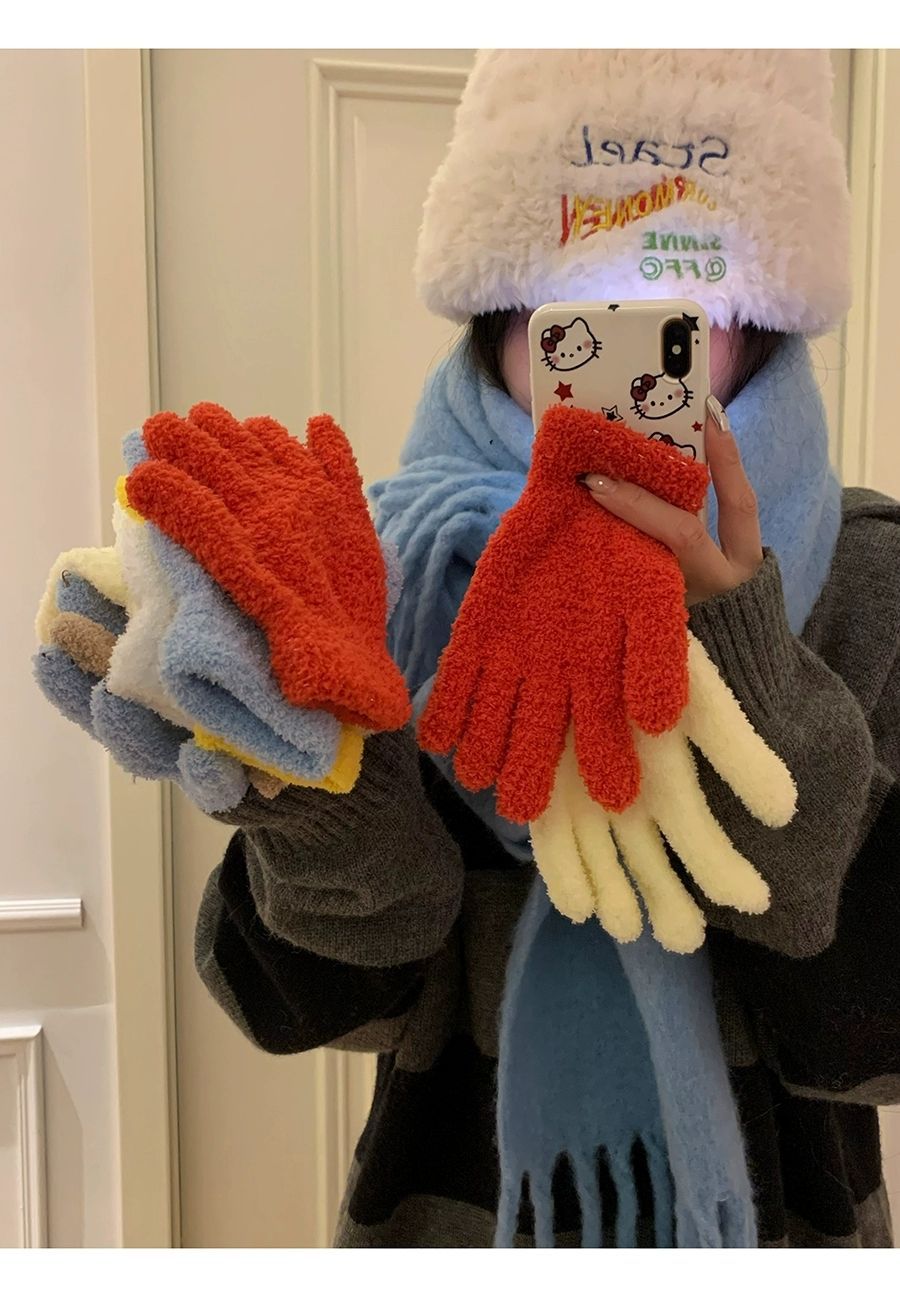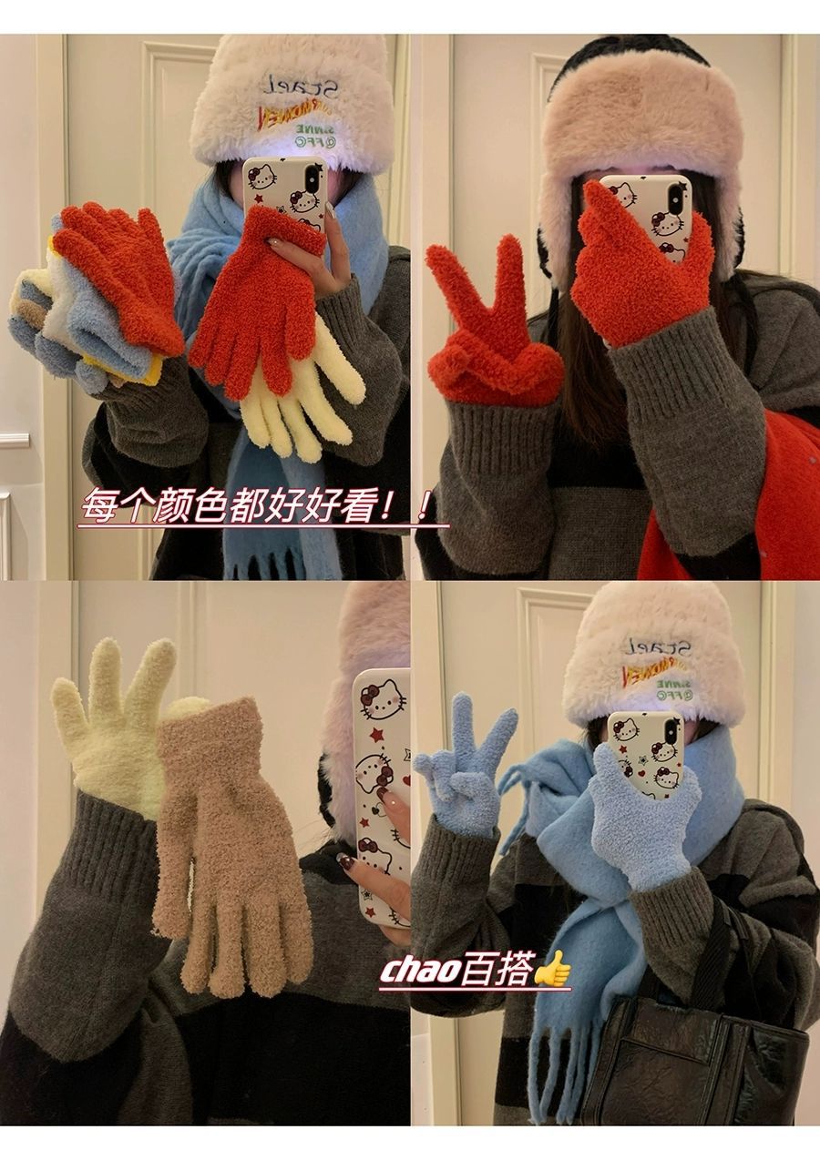 공장 도매 겨울 봉제 장갑 여성 한국어 버전의 산호 양털 손가락 장갑 캔디 컬러 사이클링 따뜻한 감기